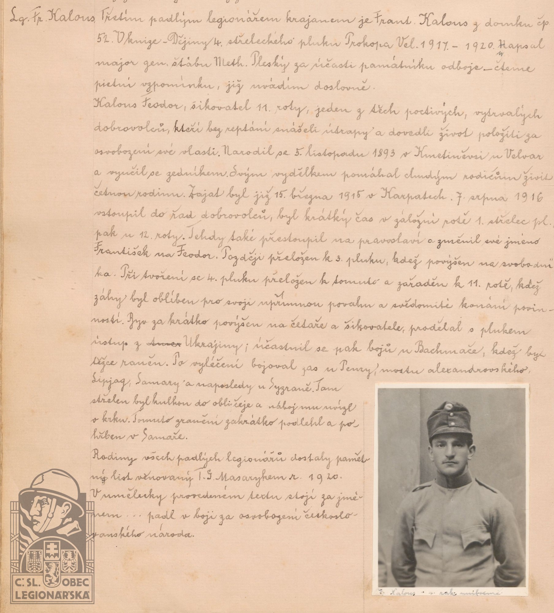 Zdroj informací: legionářský poslužný spis ČÍŽEK, Petr, HUDÁK, Lukáš, CHARFREITAG, Jiří, et al. Památník padlých legionářů 4. čs. střeleckého pluku v Hradci Králové: obnova památníku a historie pluku. Praha: ČsOL, 2018.