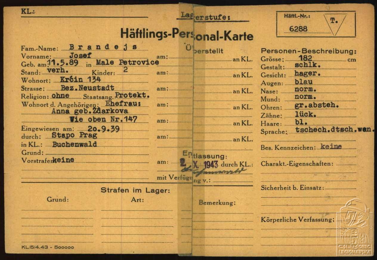 Vězněn za nacistické okupace:193í-1943 KT - Buchenwald