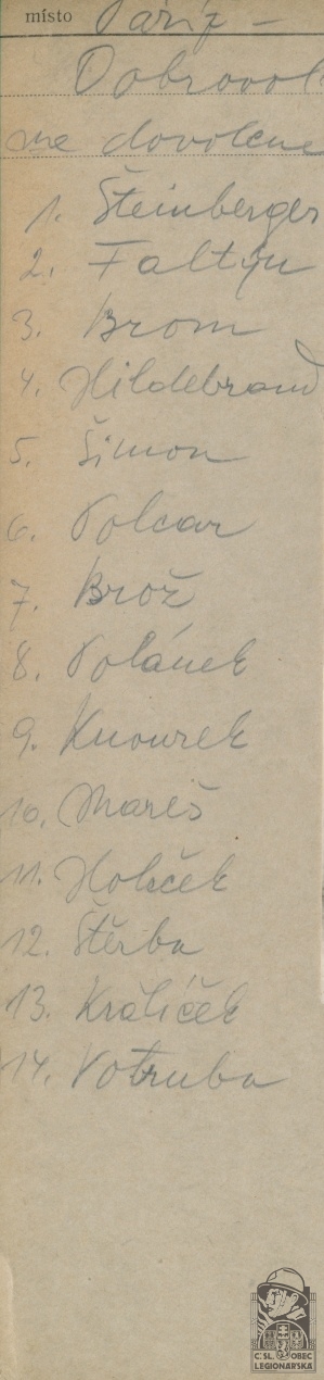 Zdroj informací: legionářský poslužný spis osobní karta legionáře