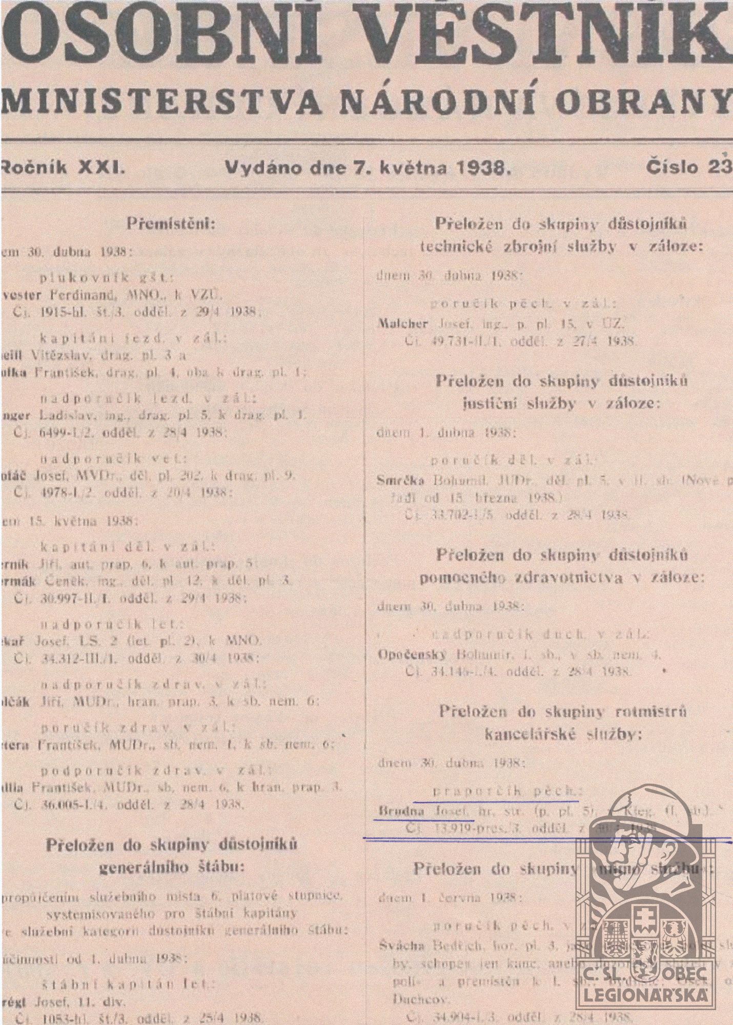 Zdroj informací: legionářský poslužný spis osobní karta legionáře