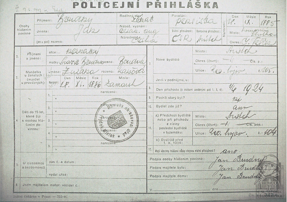 Zdroj informací: legionářský poslužný spis osobní karta legionáře
