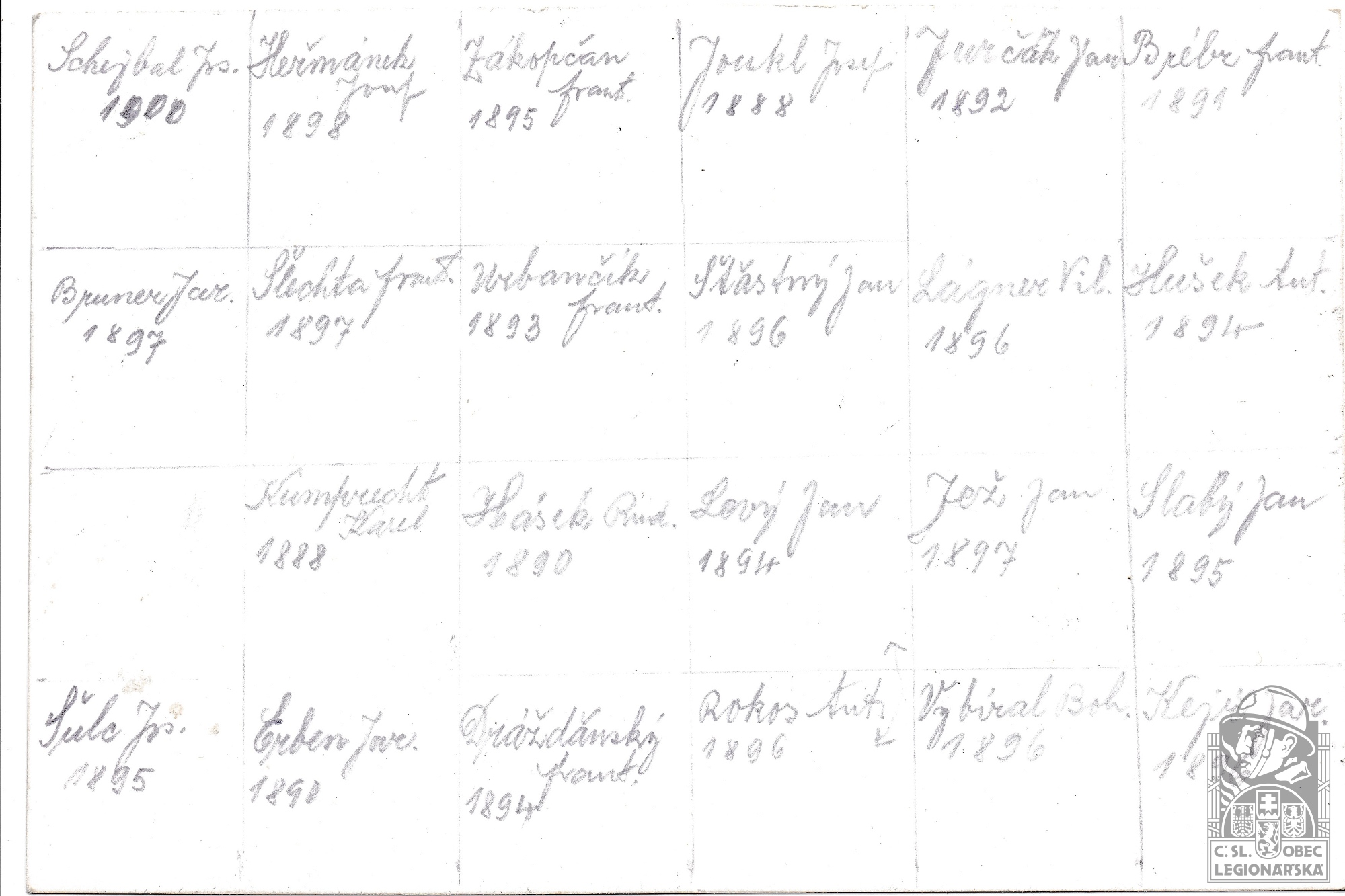 Zdroj informací: legionářský poslužný spis osobní karta legionáře