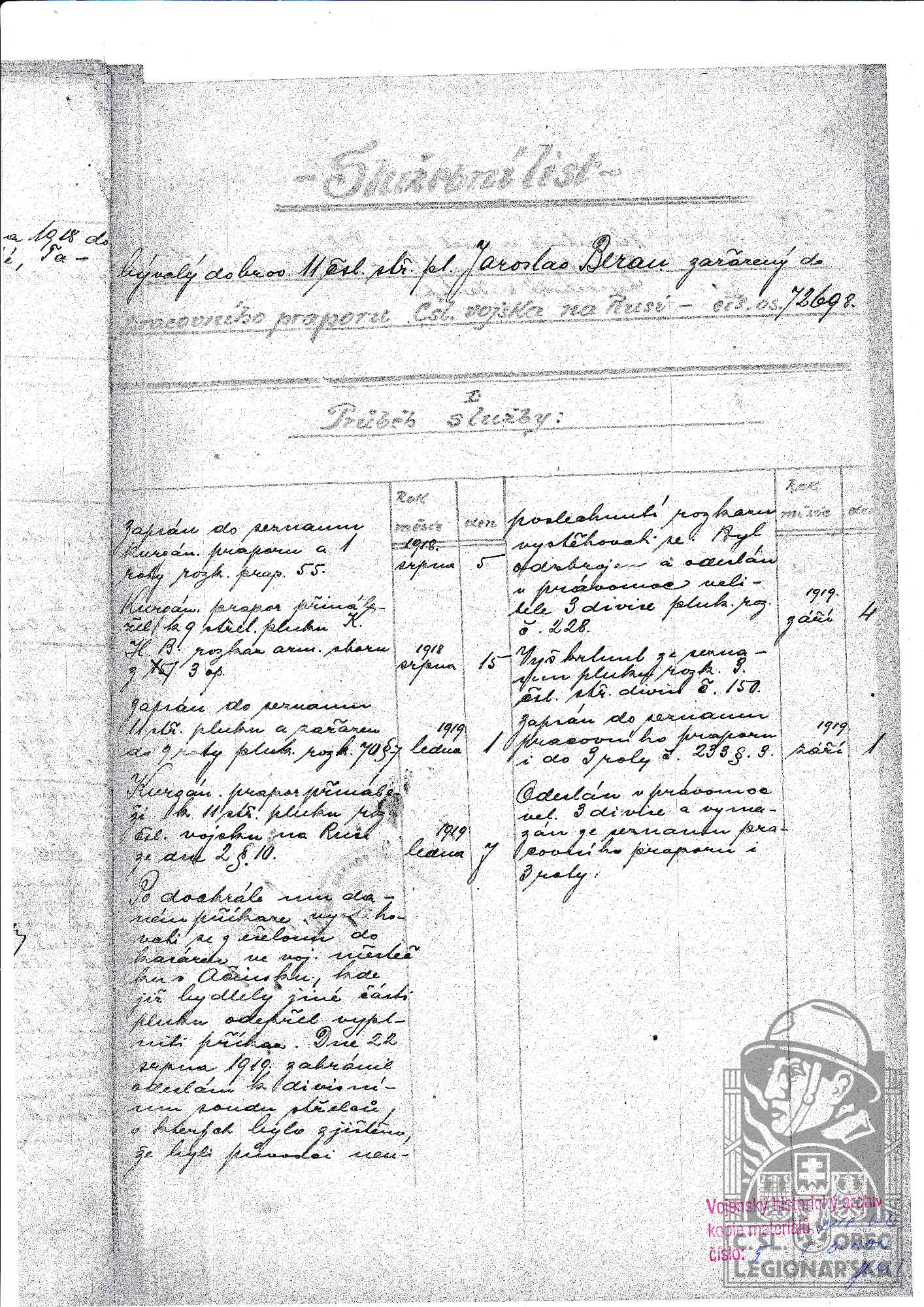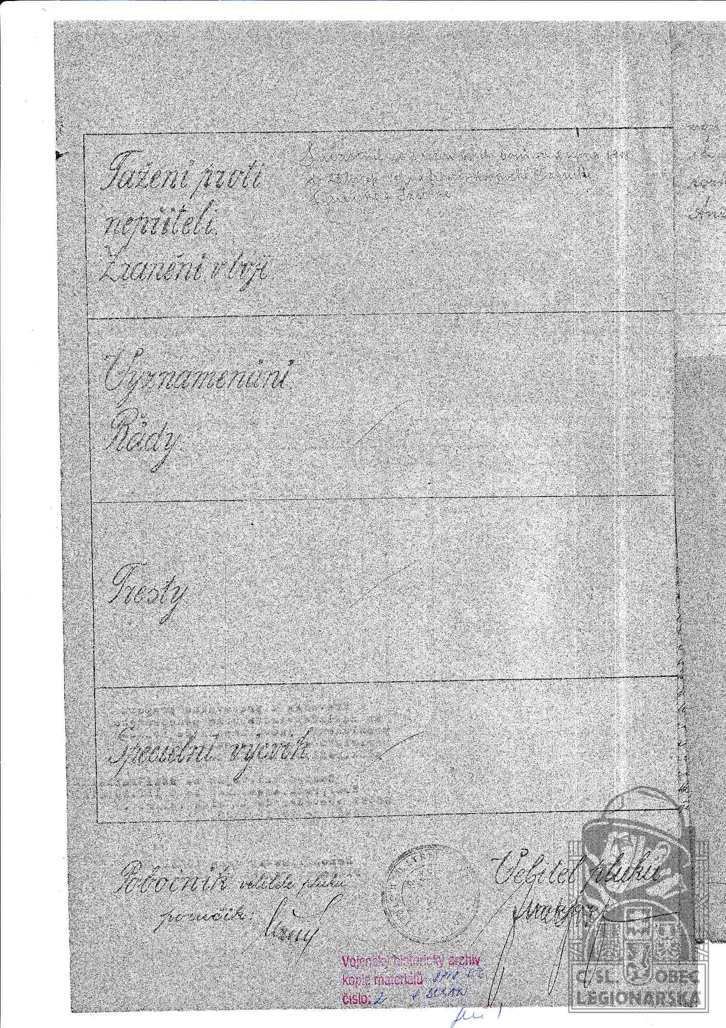 dokumenty spojené s osobou legionáře
