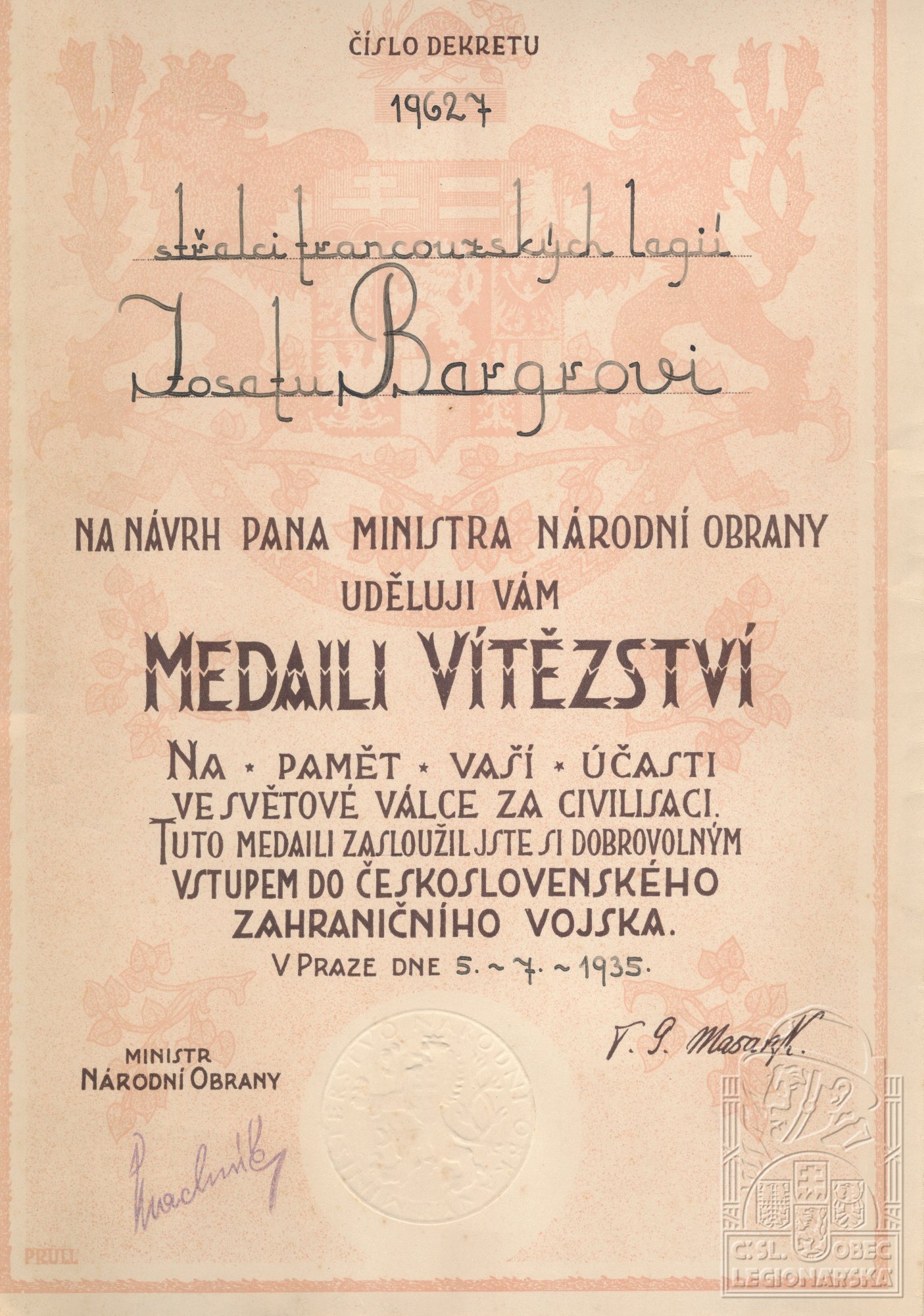 dokumenty spojené s osobou legionáře