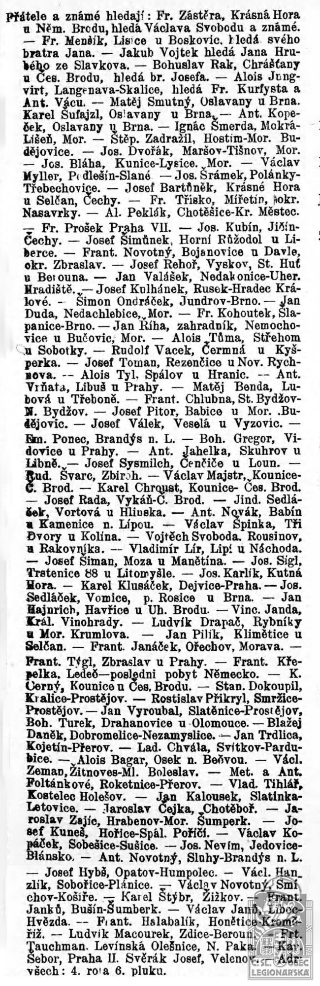 Zdroj informací: legionářský poslužný spis