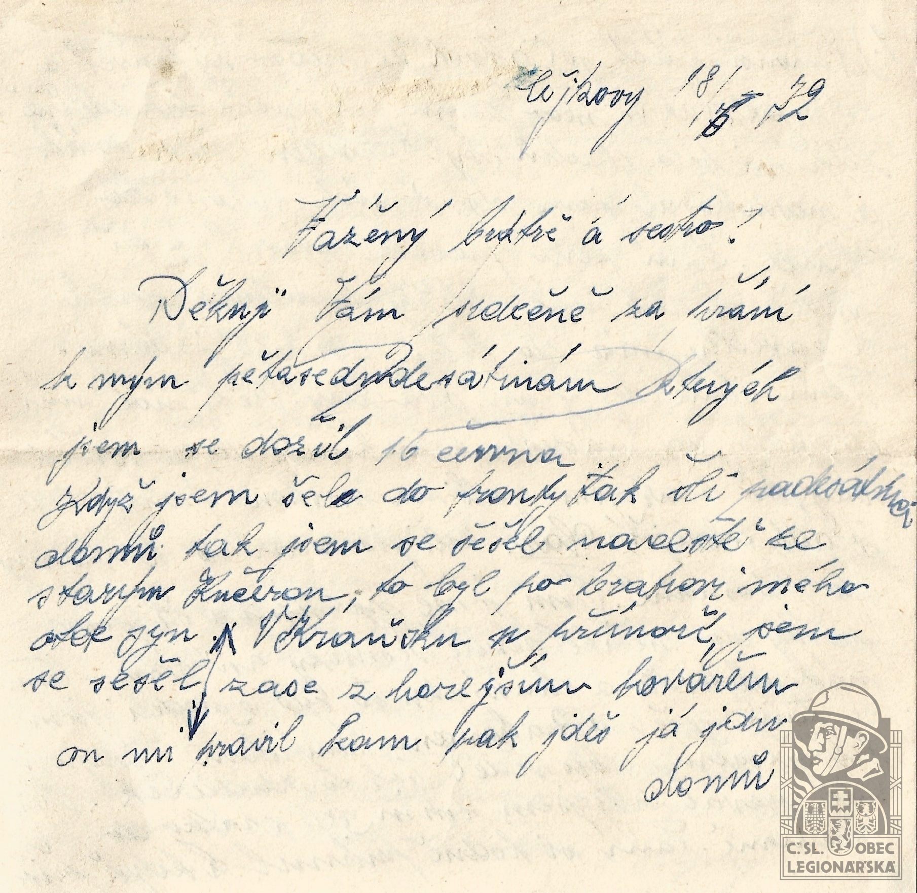 Zdroj informací: legionářský poslužný spis osobní karta legionáře