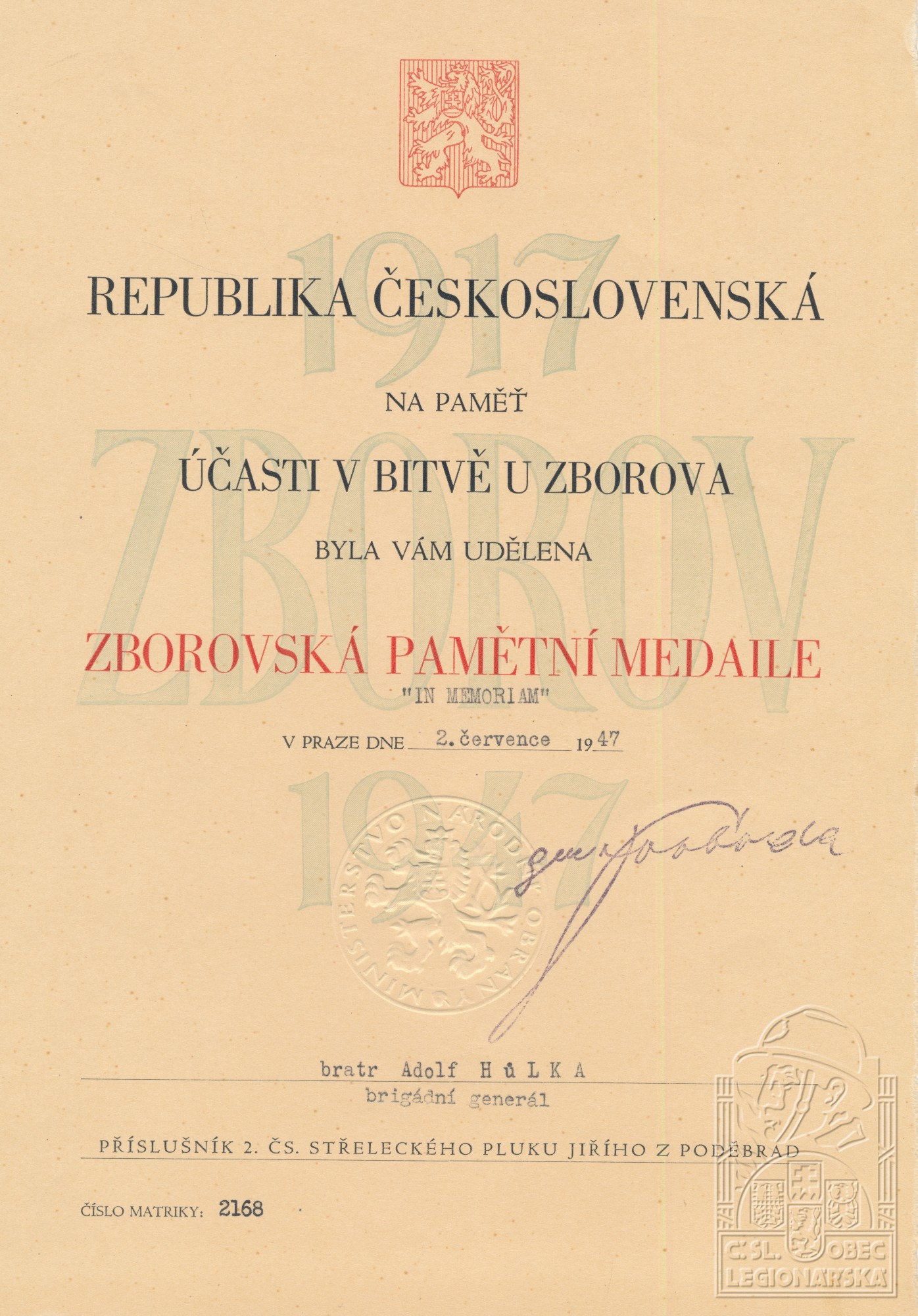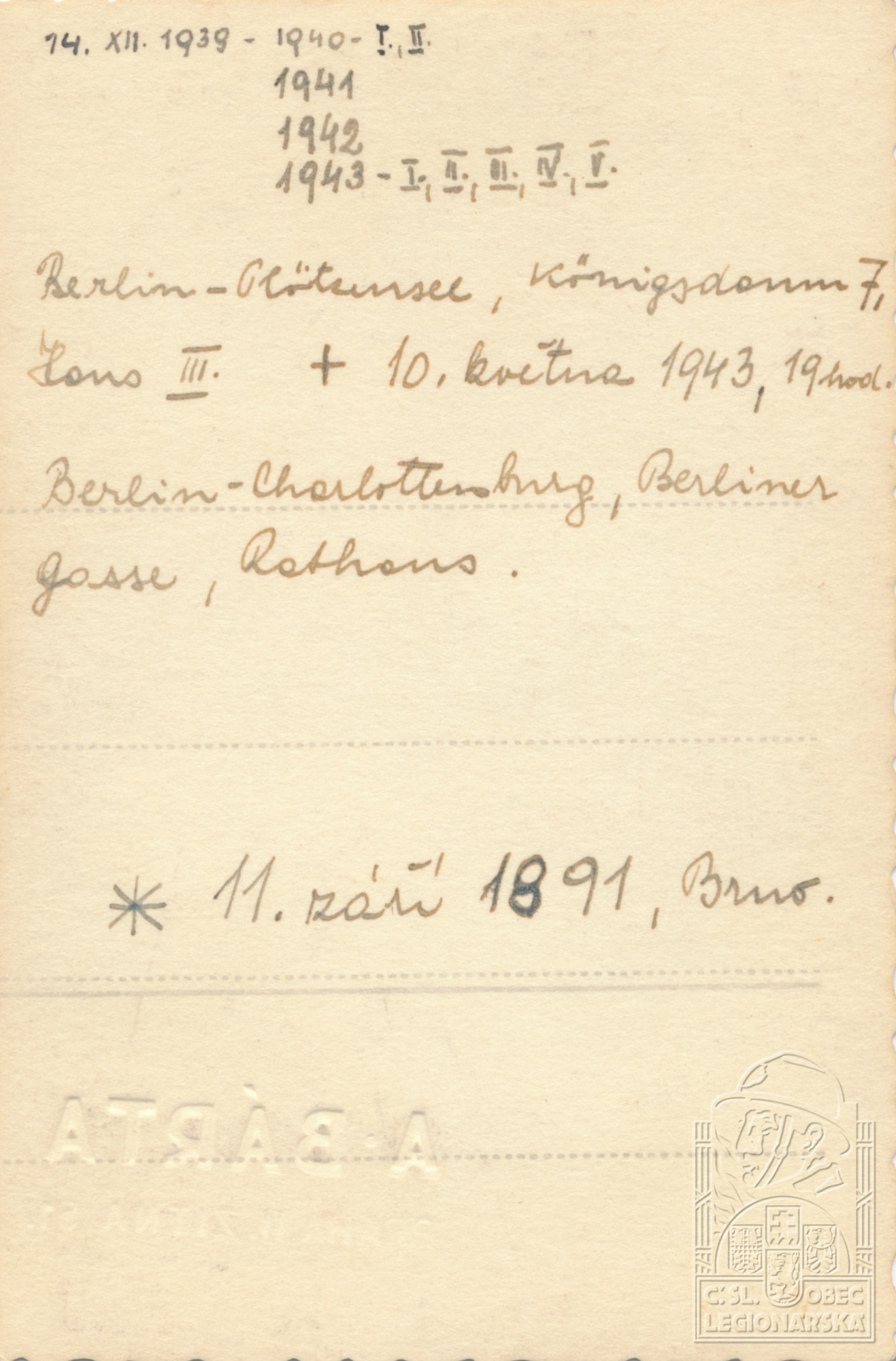 dokumenty spojené s osobou legionáře