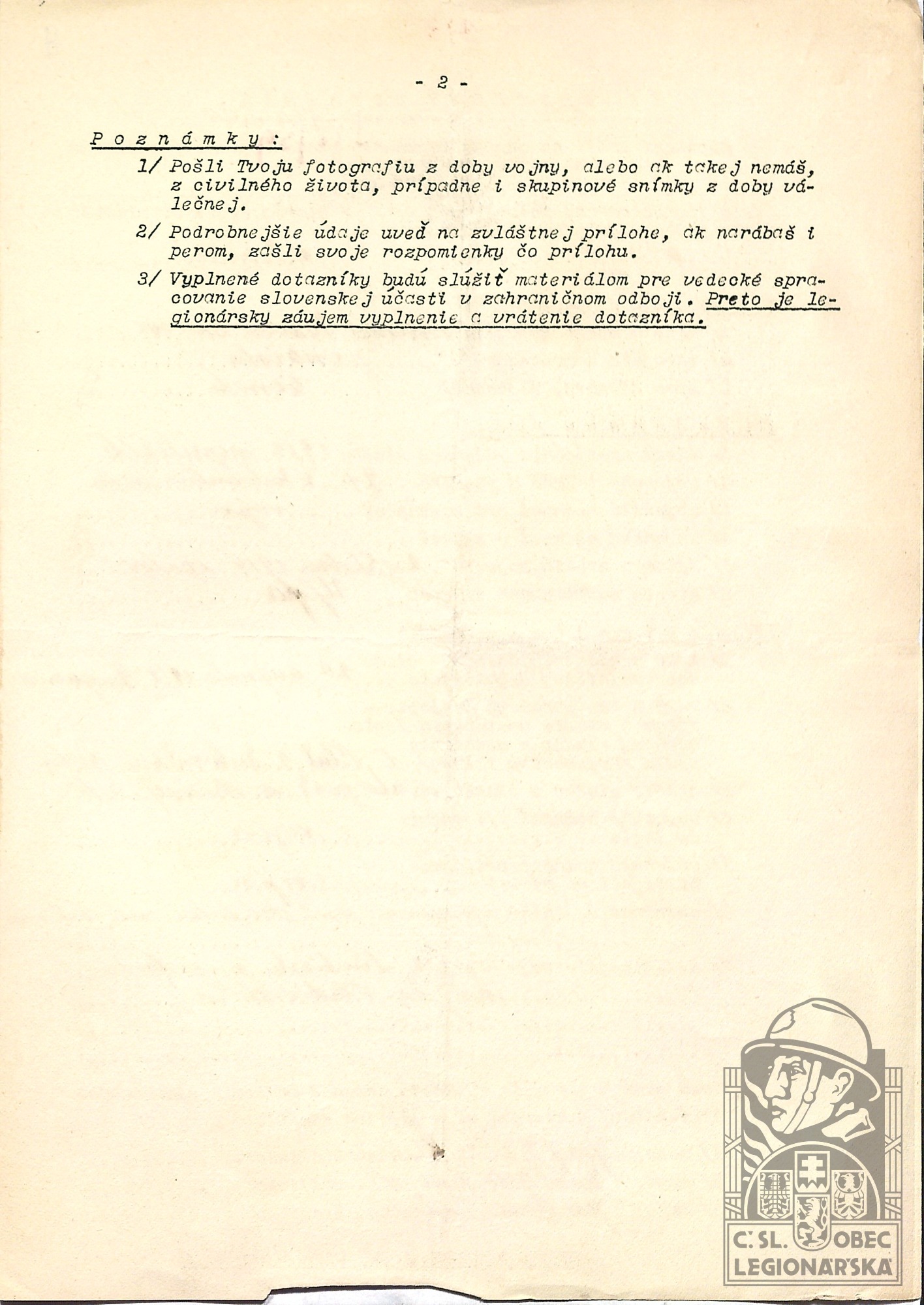 Zdroj informací: legionářský poslužný spis osobní karta legionáře