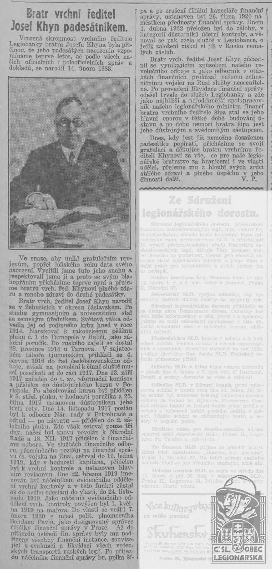 Zdroj informací: legionářský poslužný spis osobní karta legionáře Československý legionář, 9.2.1934