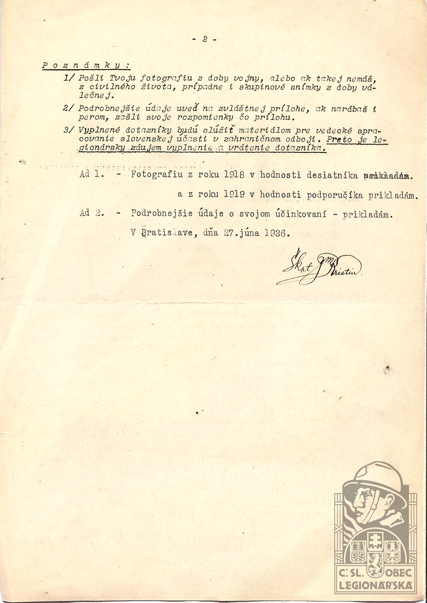dokumenty spojené s osobou legionáře