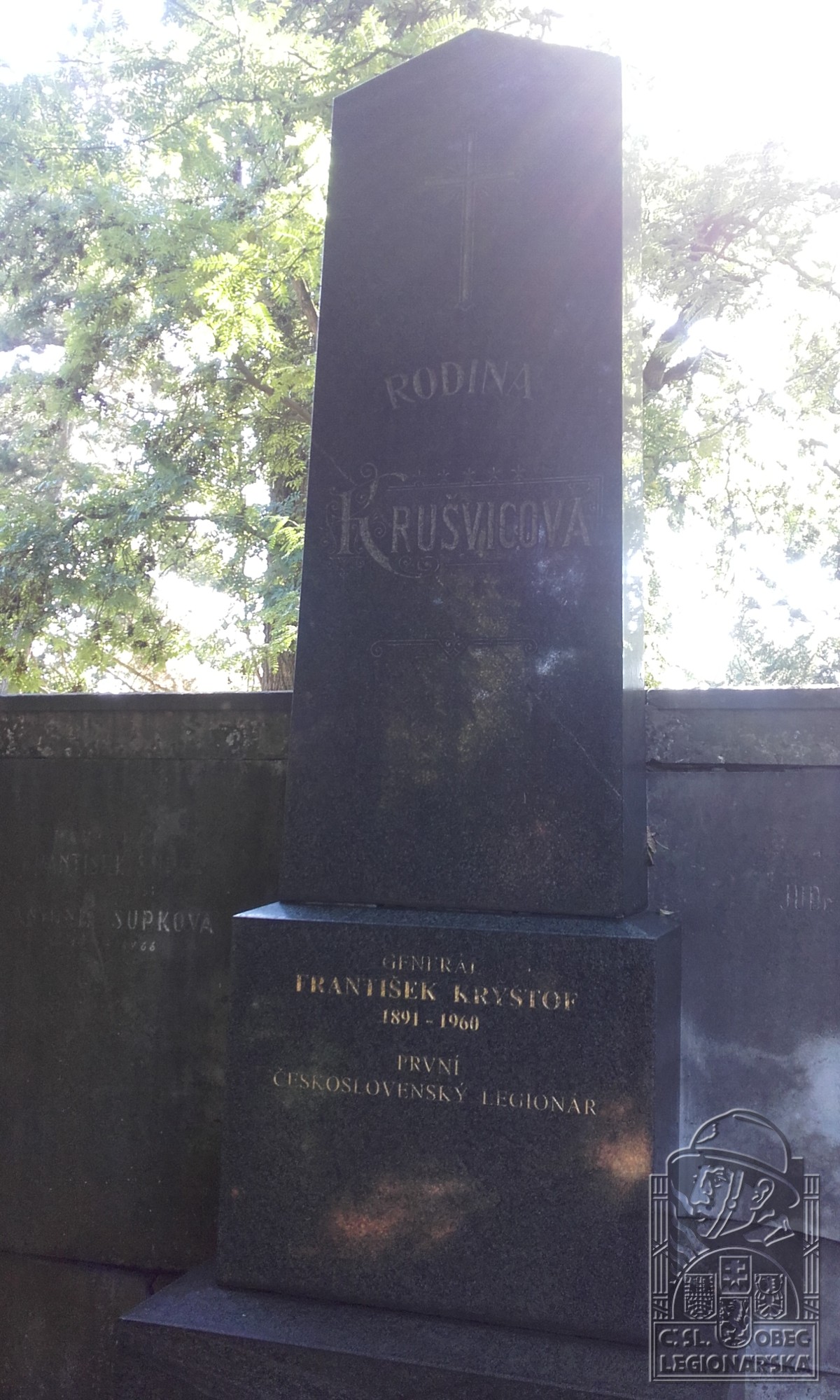 František Kryštof zemřel 20. února 1960 v Hradci Králové. Jeho manželka Jiřina (rozená Šupková) jej následovala o devatenáct let později. Brali se 27. července 1927, pro Františka to bylo již druhé manželství. Při jejím pohřbu byly jeho ostatky exhumovány a uloženy do hrobky rodiny Šupkových na farním hřbitově na Pouchově (dnes místní část Hradce Králové). Rehabilitován byl František Kryštof v srpnu 1990. (Autor: Petr Tolar, převzato z https://www.csol.cz/clanky-a-reporty/z-historie/prvni-odboj/1169-prvni-ceskoslovensky-legionar-frantisek-krystof)