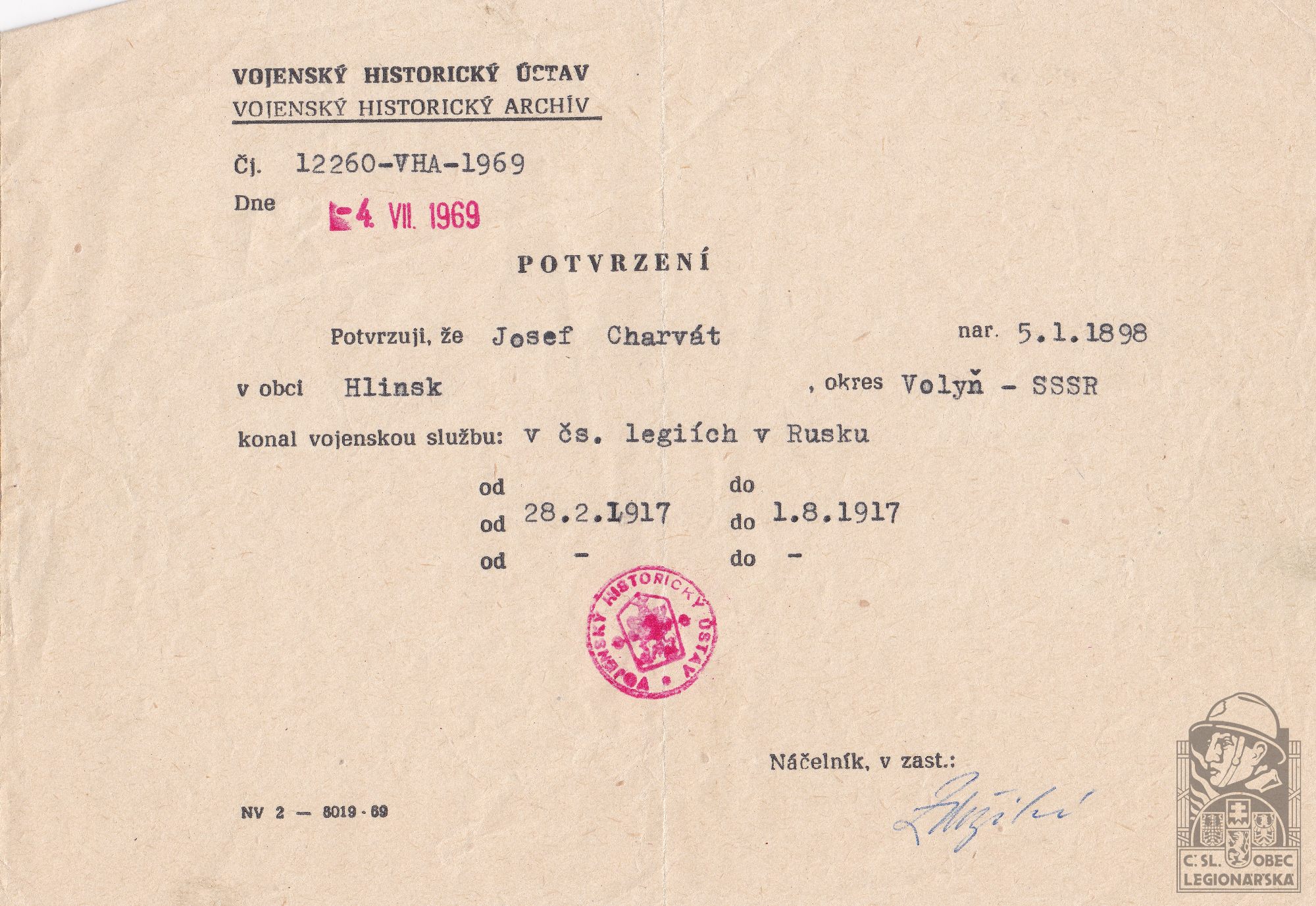 Datum zařazení do legií:28.2.1917