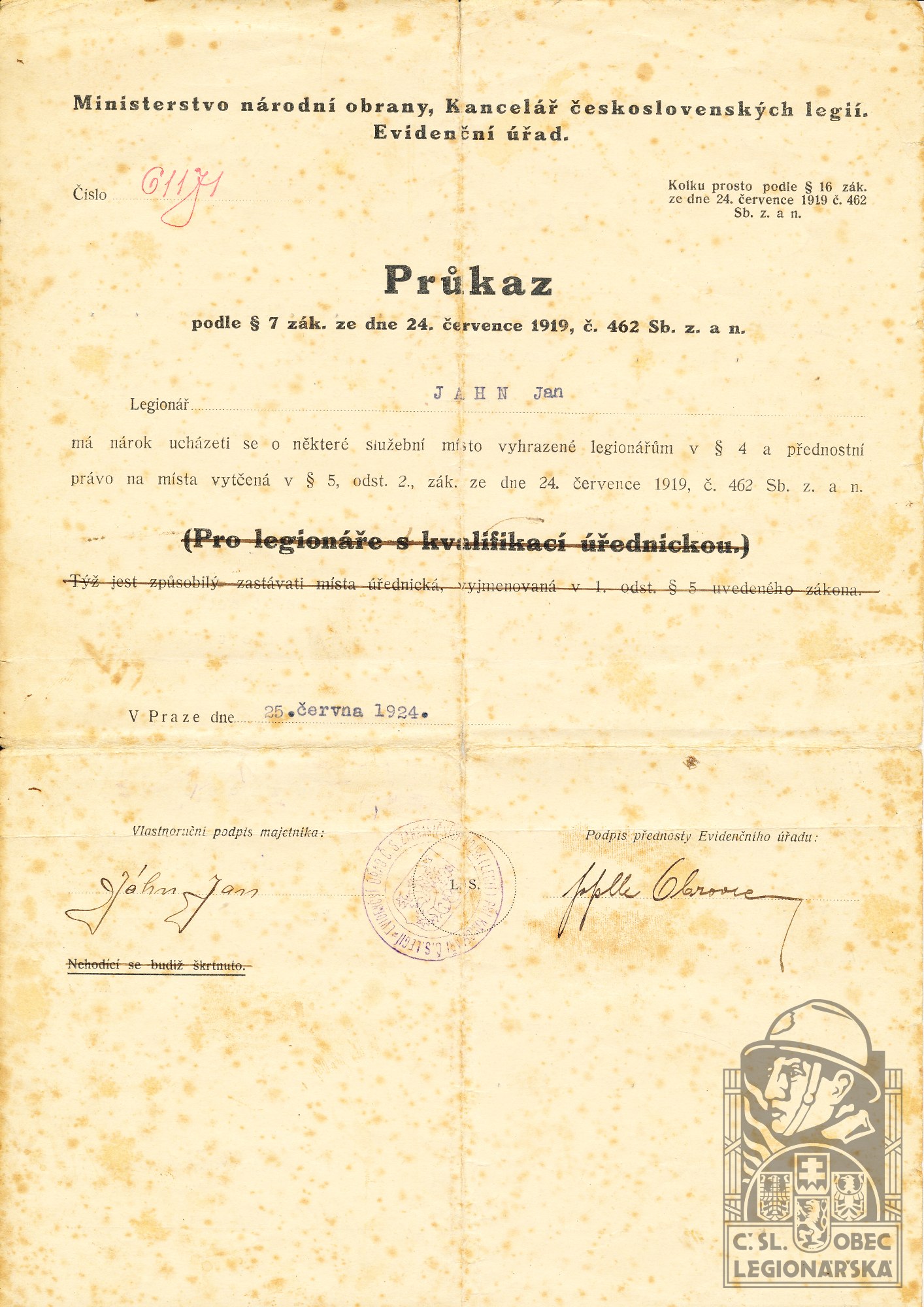 dokumenty spojené s osobou legionáře