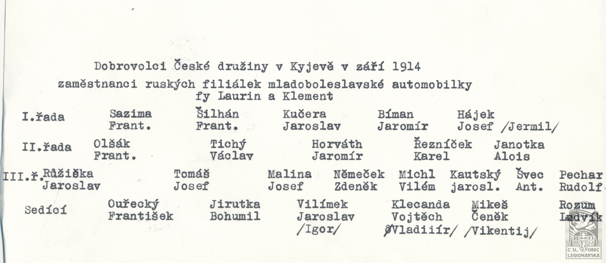 Jednotka v době zařazení:Česká družina ( Čs. legie v Rusku )