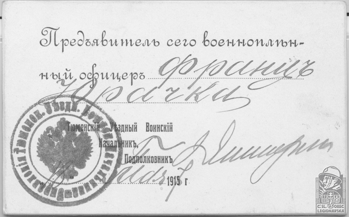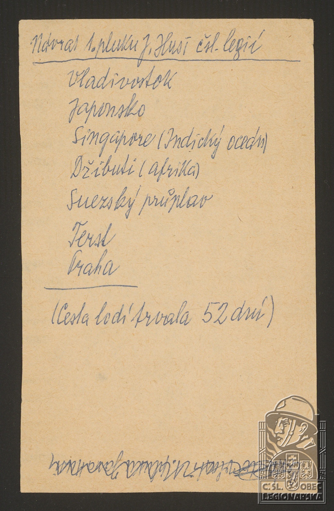 Poznámka:služba v legii od 31.7.1918 do 2.2.1920