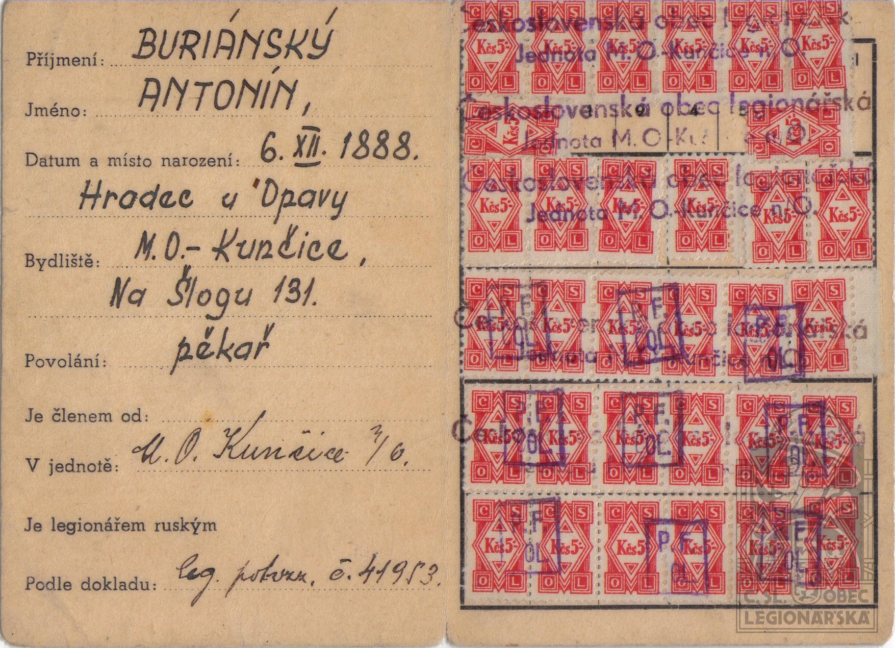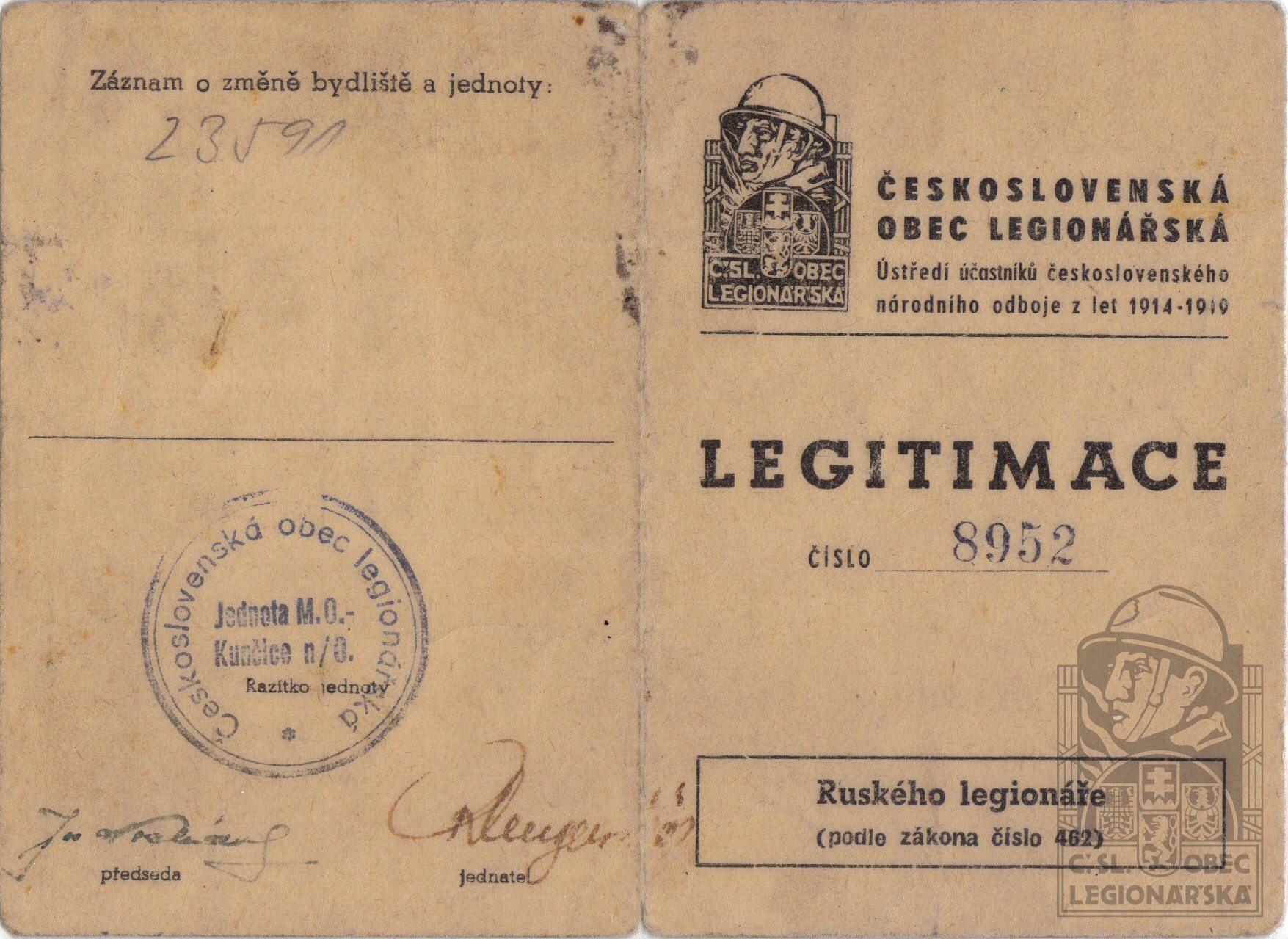 Poznámka:byl legionářem podle zákona, další adresa: Chabičov, okr.Opava