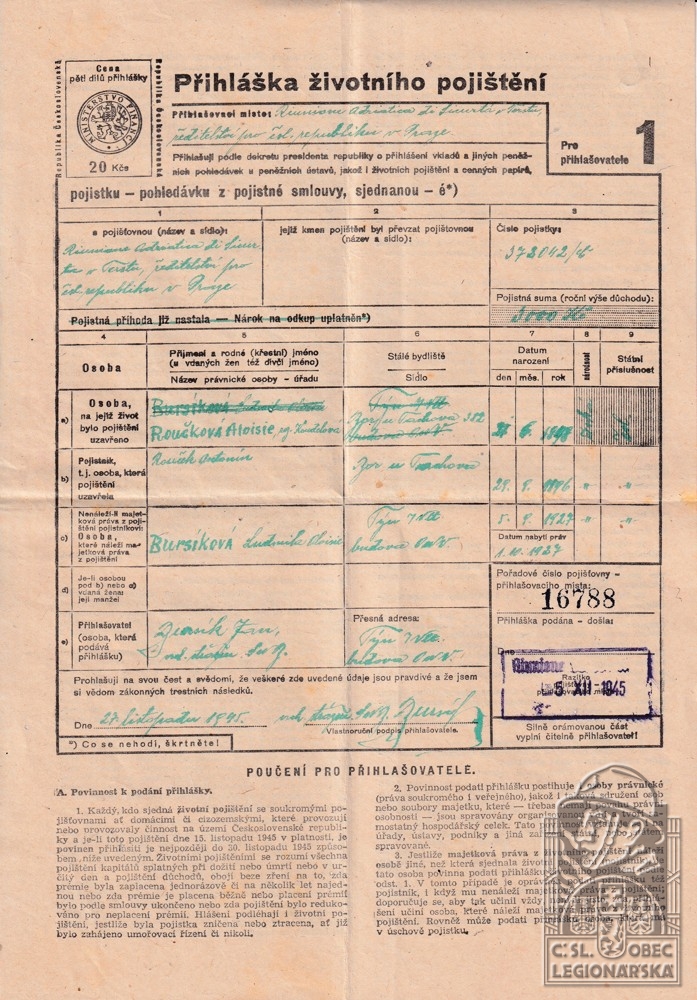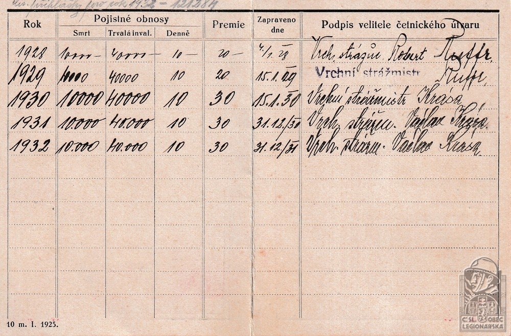Zdroj informací: legionářský poslužný spis osobní karta legionáře