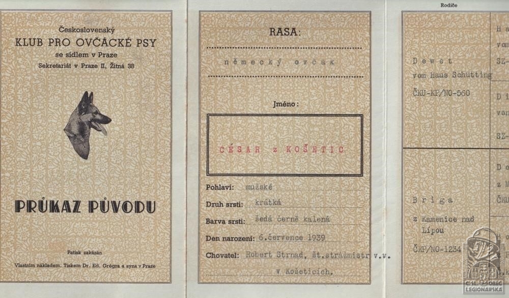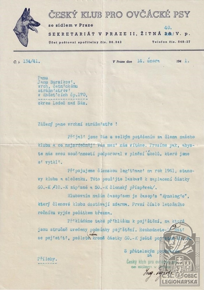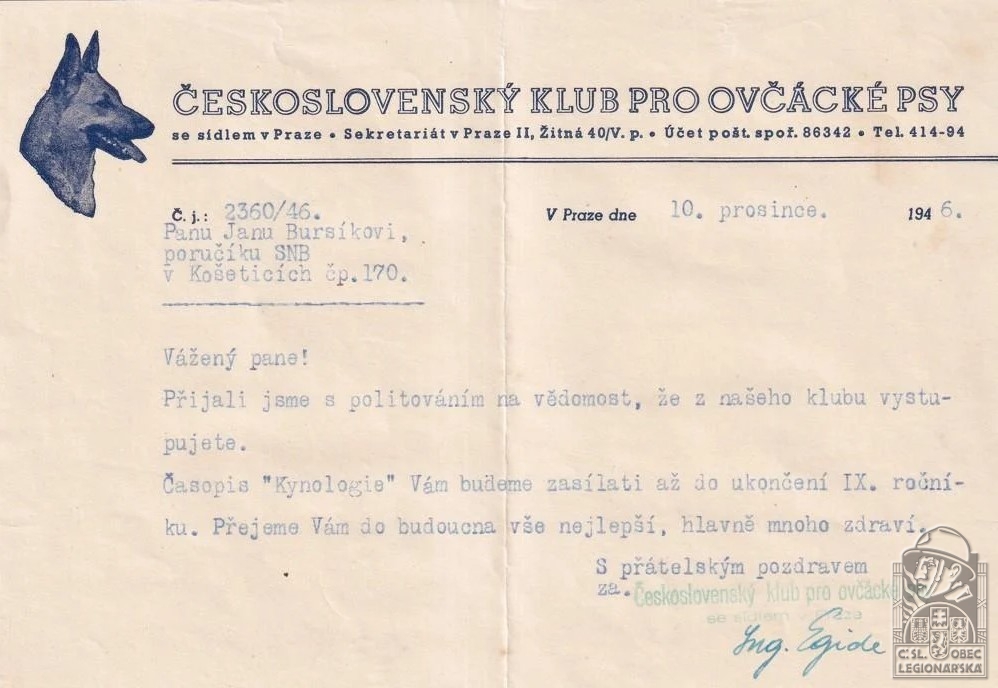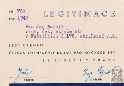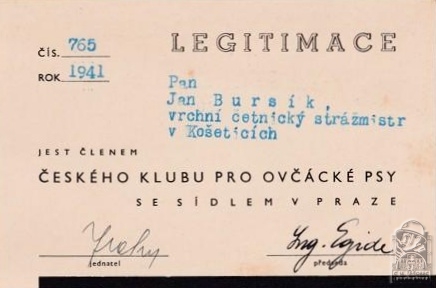 Poznámka:V období Protektorátu Čechy a Morava byl Jan Bursík vrchní četnický strážmistr v Košeticích, stejně jako členem Československého klubu pro ovčácké psy.