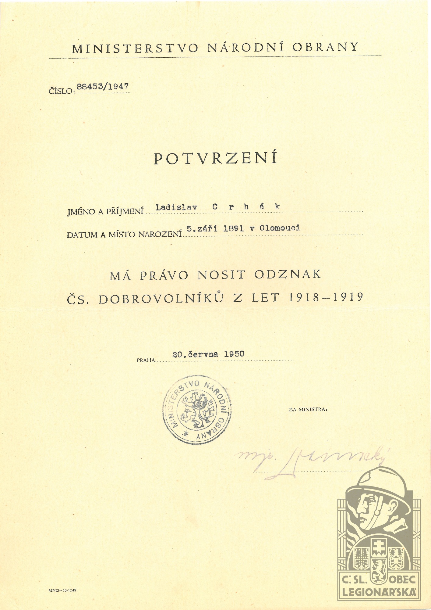Konec v legiích:16.11.1920 ( Demobilizován )