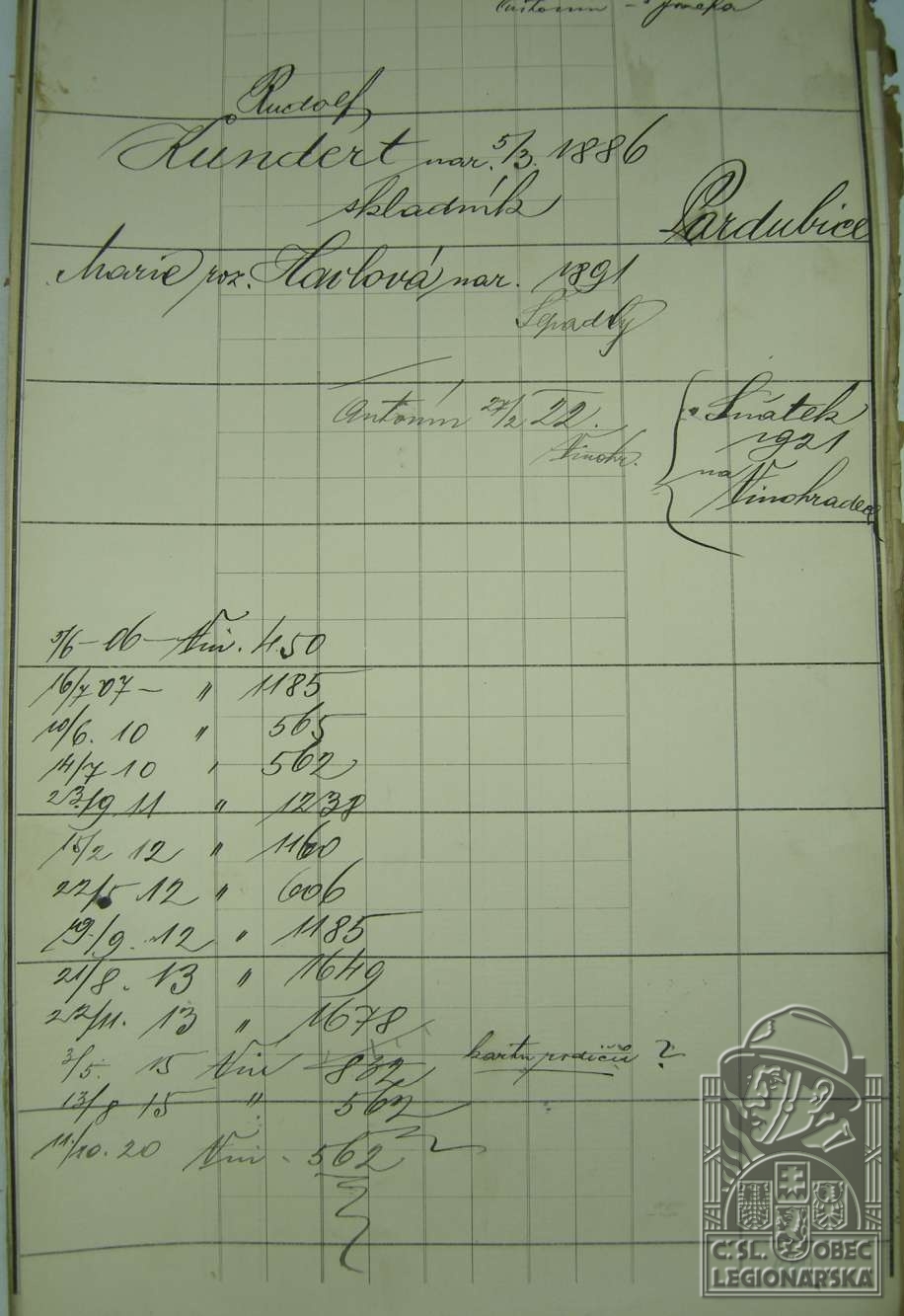 dokumenty spojené s osobou legionáře