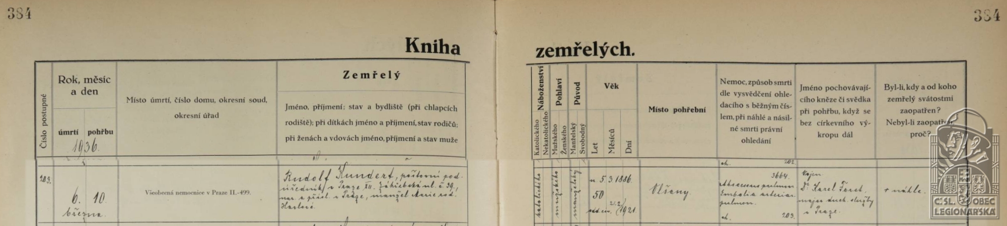 Místo úmrtí:Praha - Všeobecná nemocnice v Praze 2