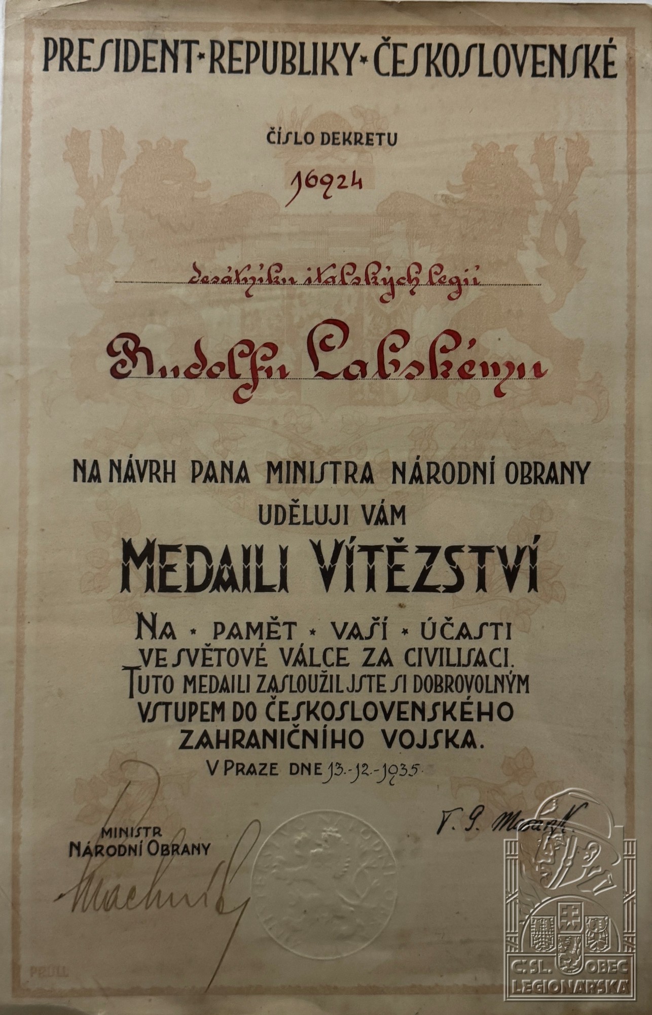 Databázi spravuje Československá obec legionářská