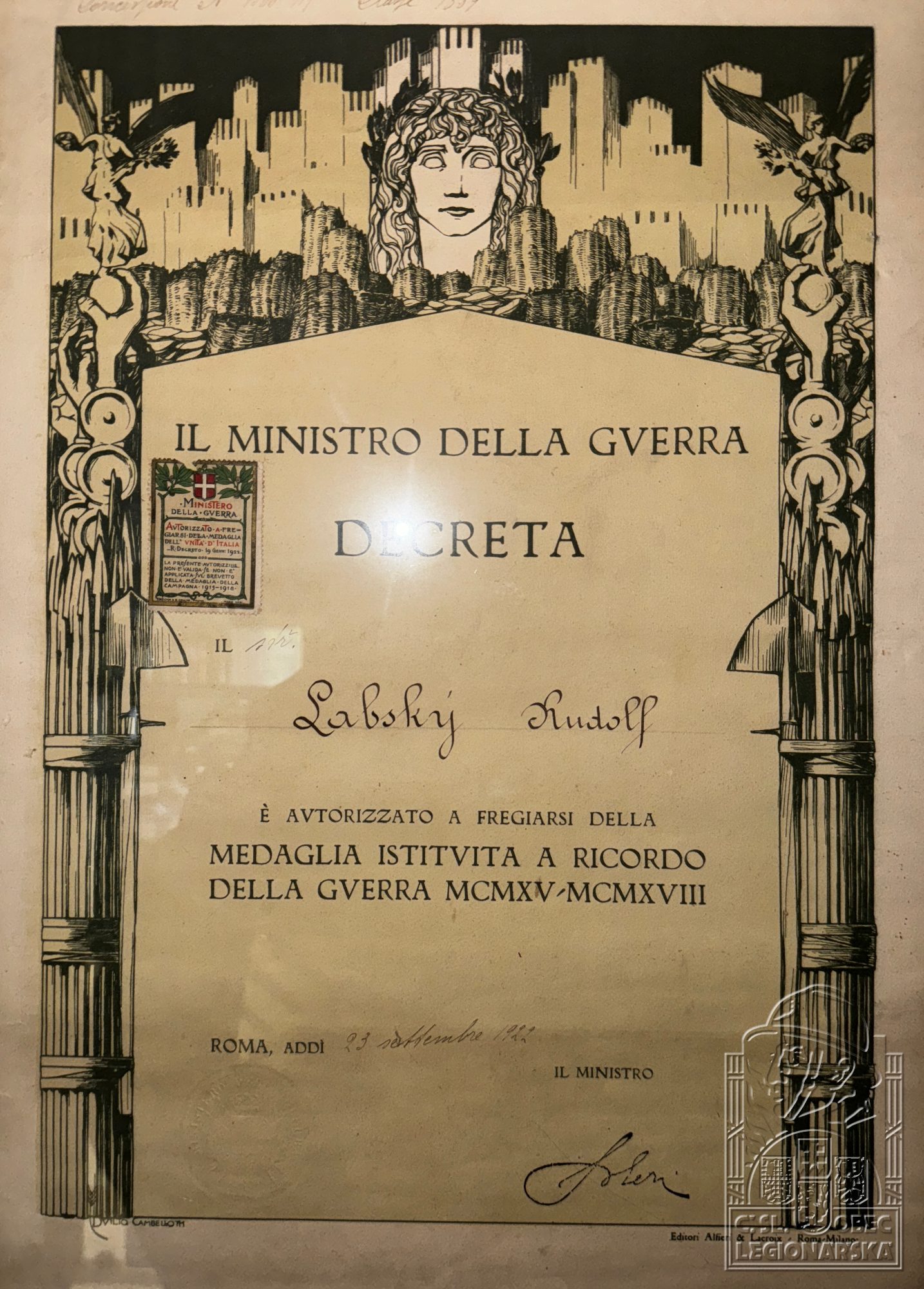 Jednotka v době zařazení:32.p.pl. ( Čs. legie v Itálii )
