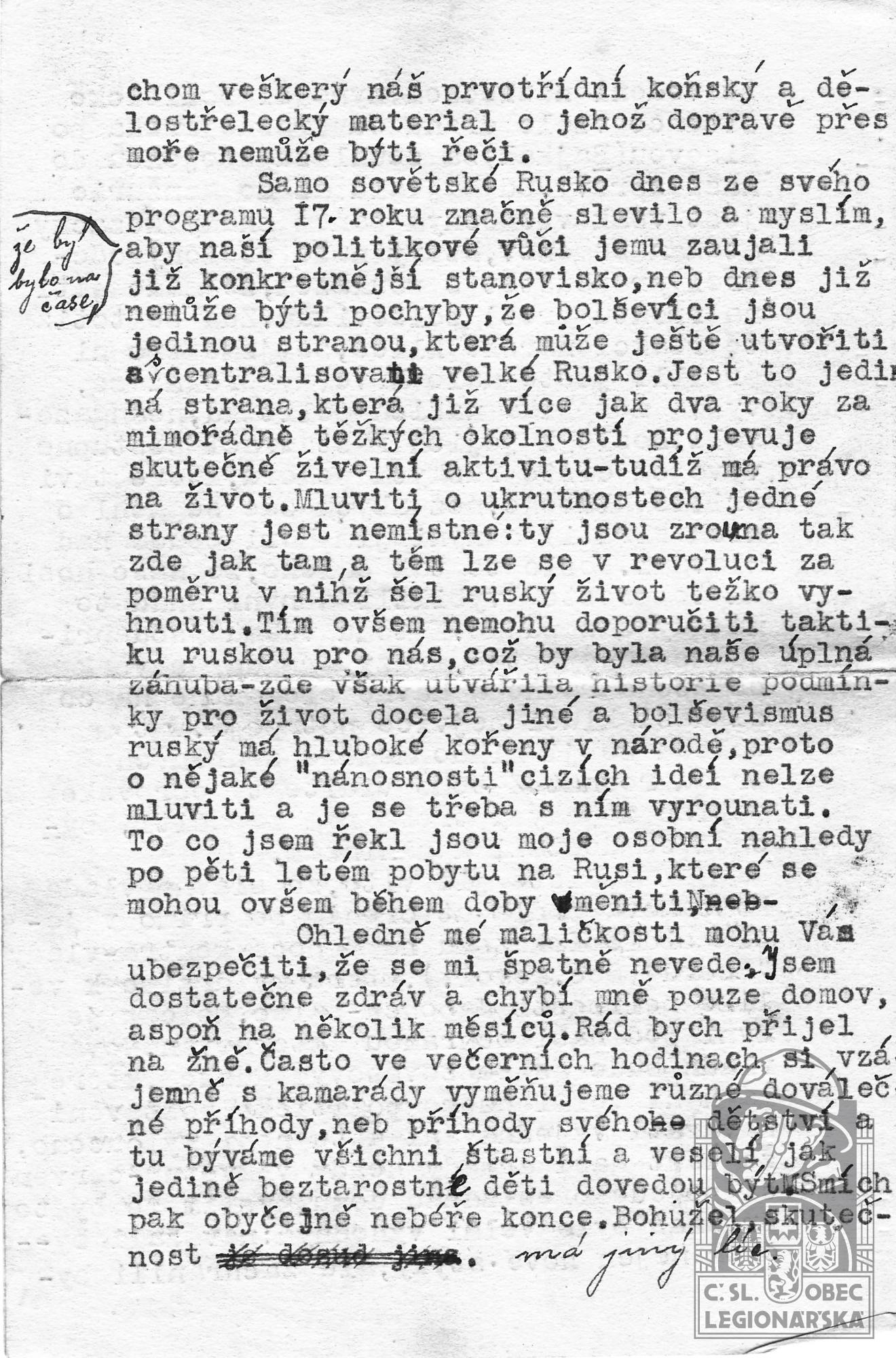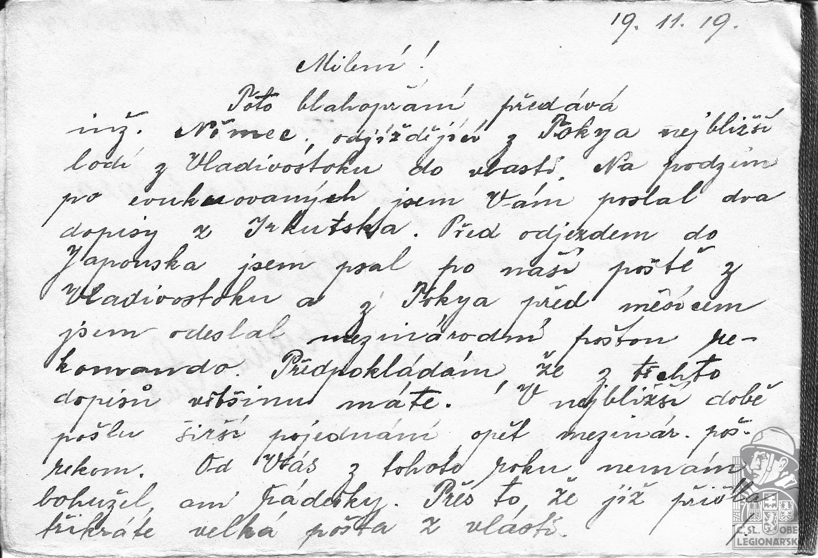 Datum podání přihlášky do legií:24.9.1918