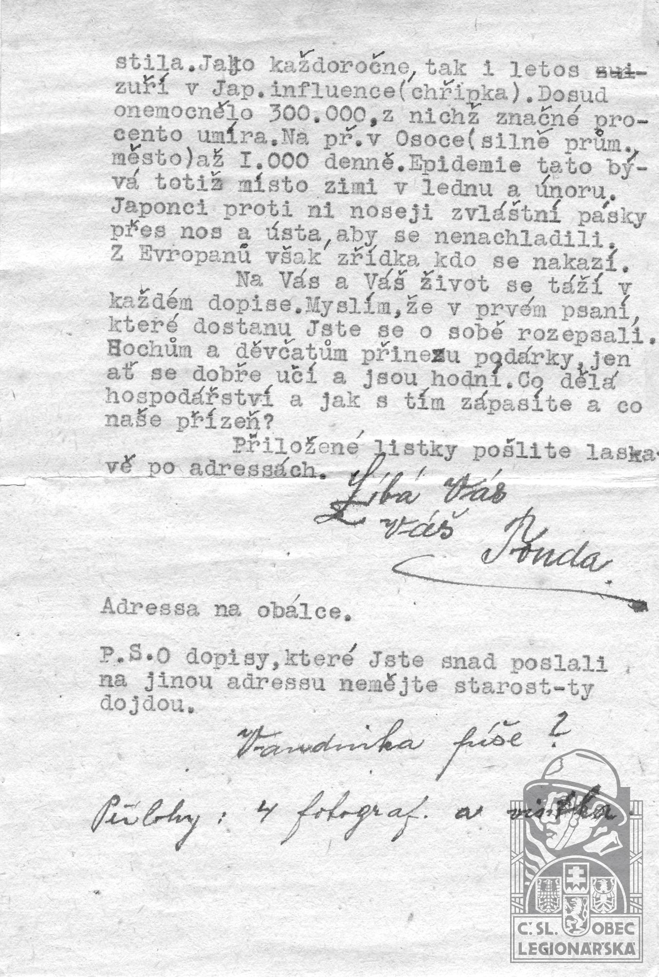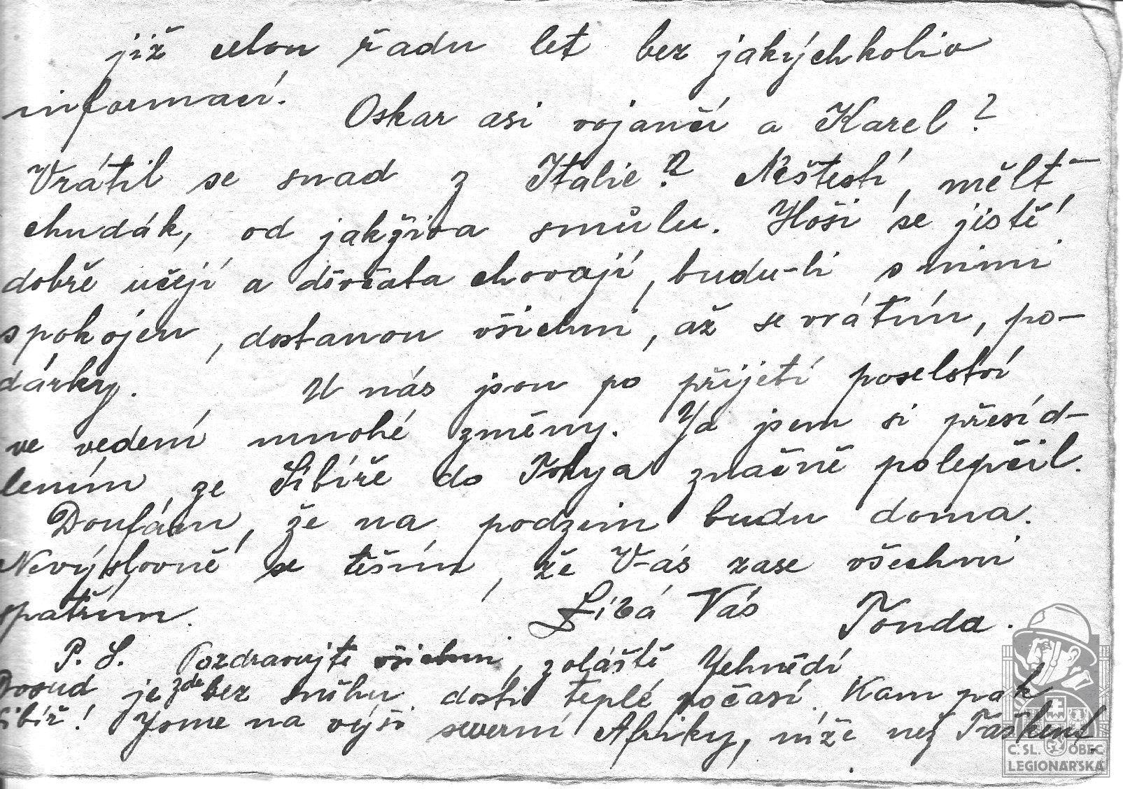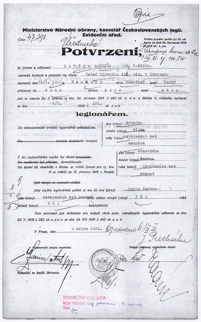 dokumenty spojené s osobou legionáře