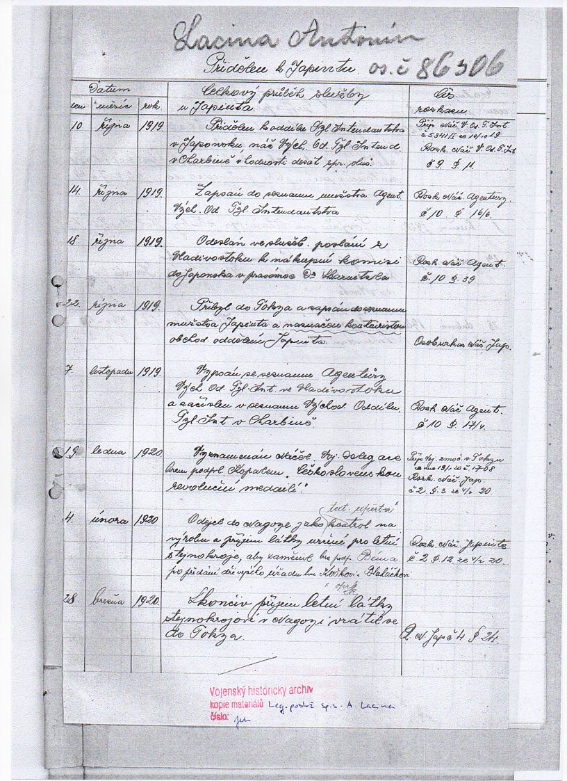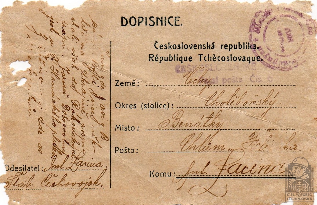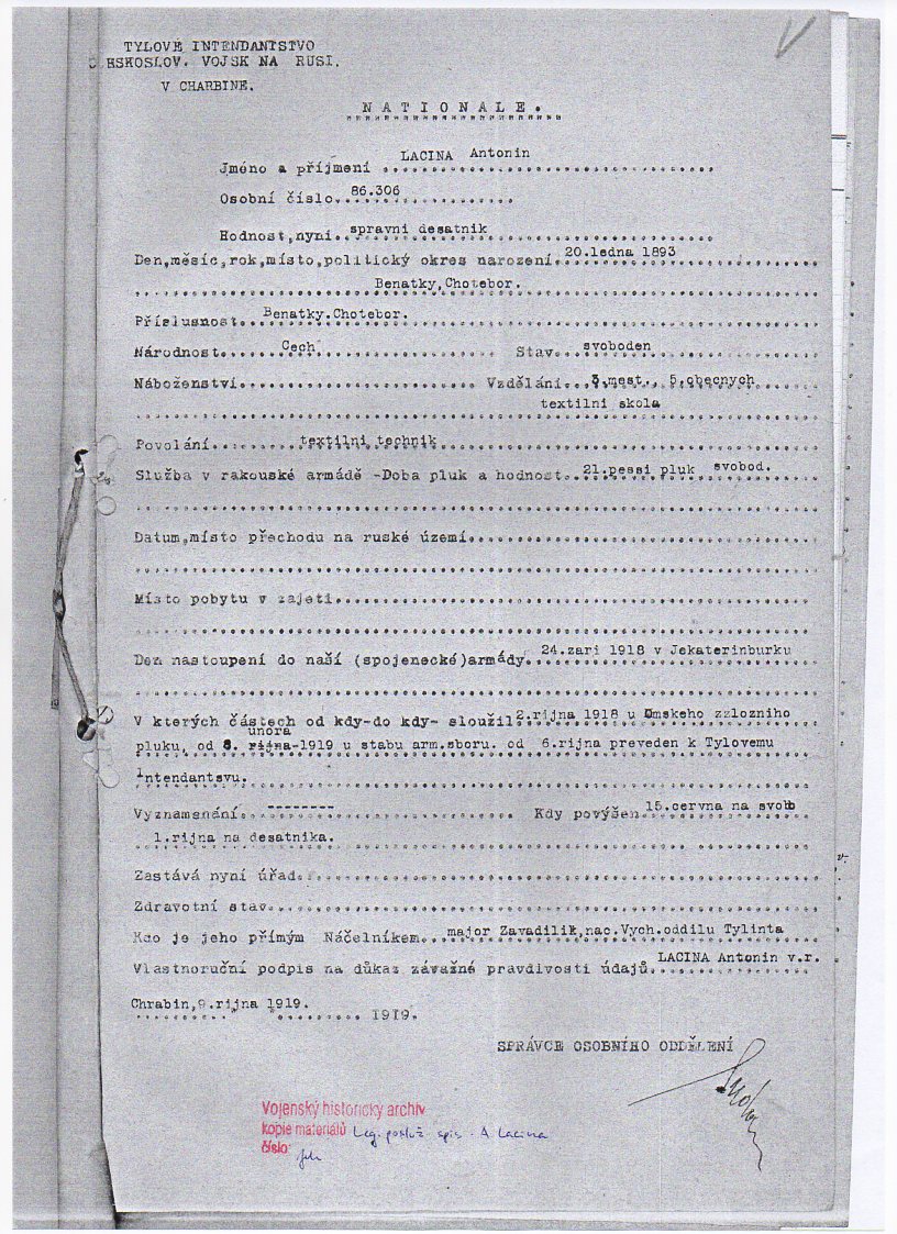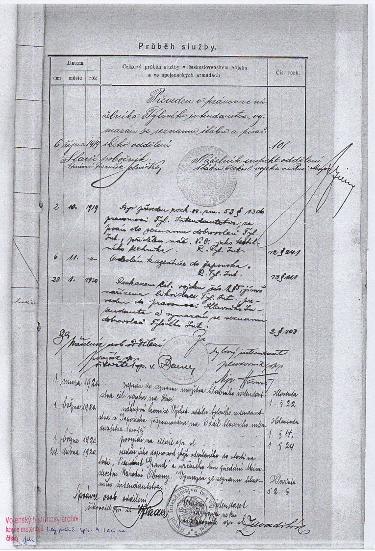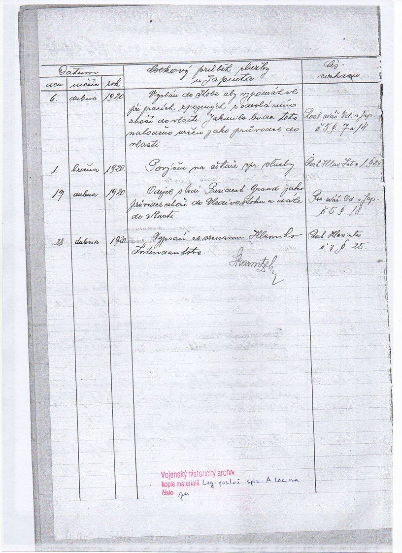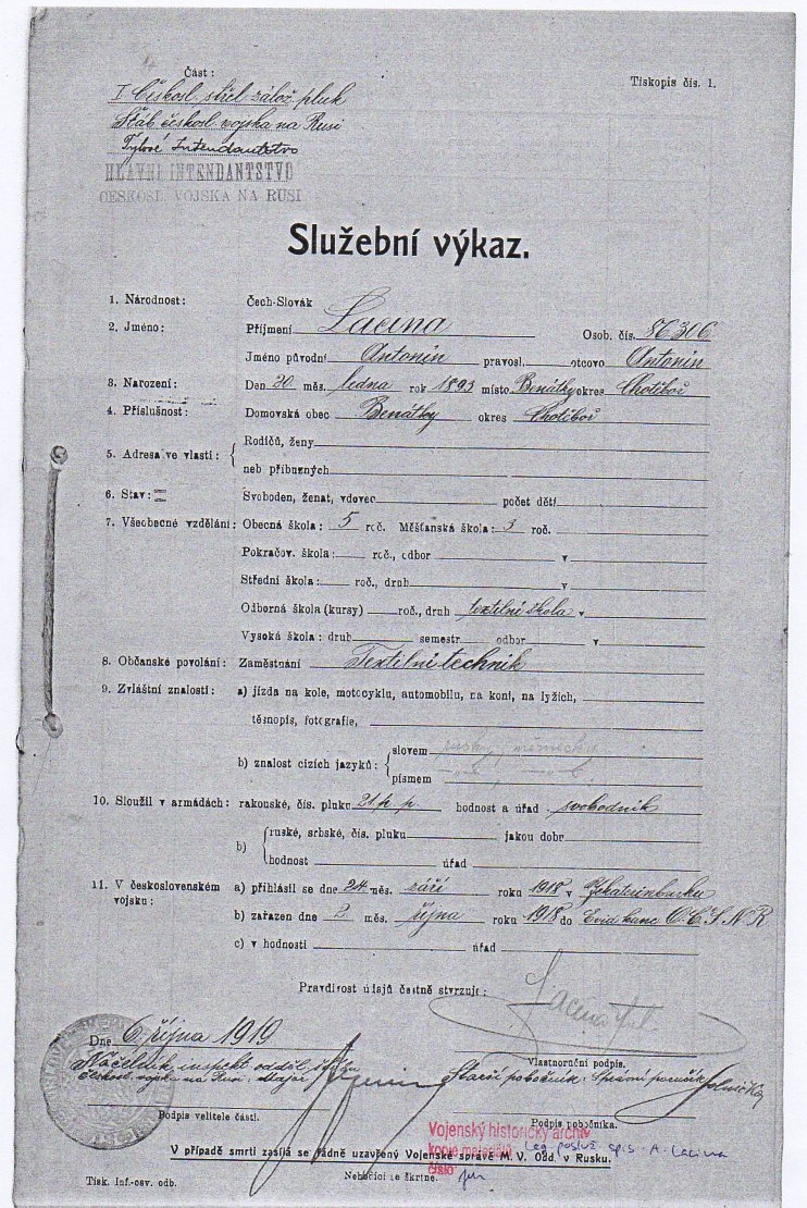 Jednotka v době zařazení:1.zálpl ( Čs. legie v Rusku )