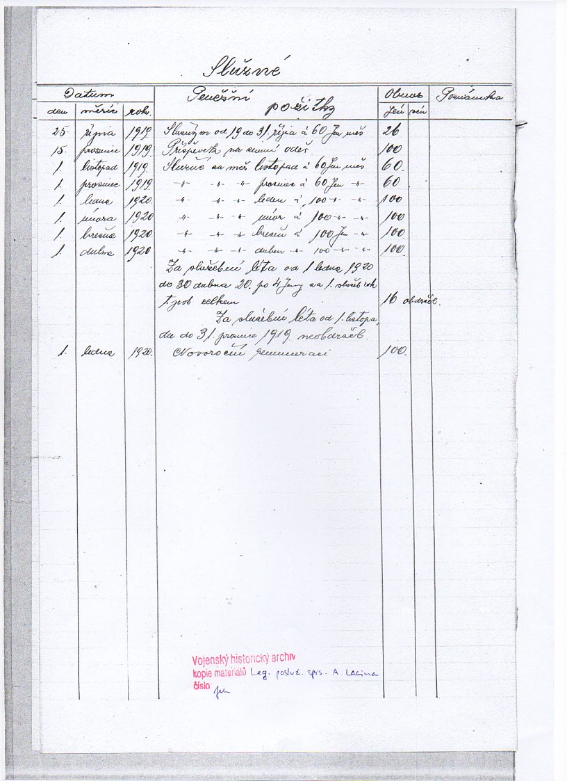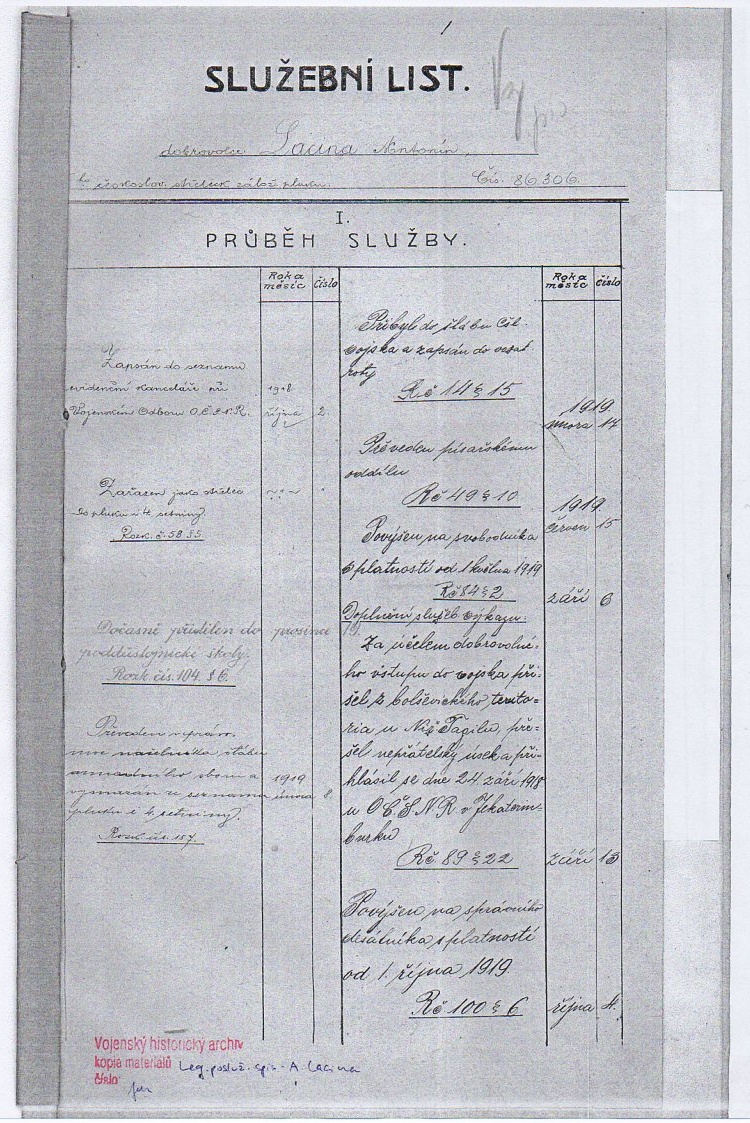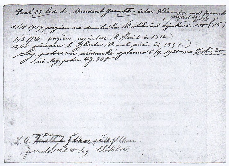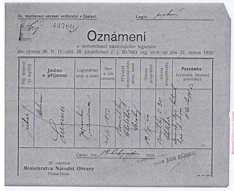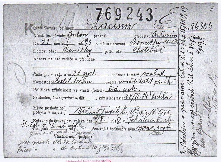 Zdroj informací: legionářský poslužný spis osobní karta legionáře