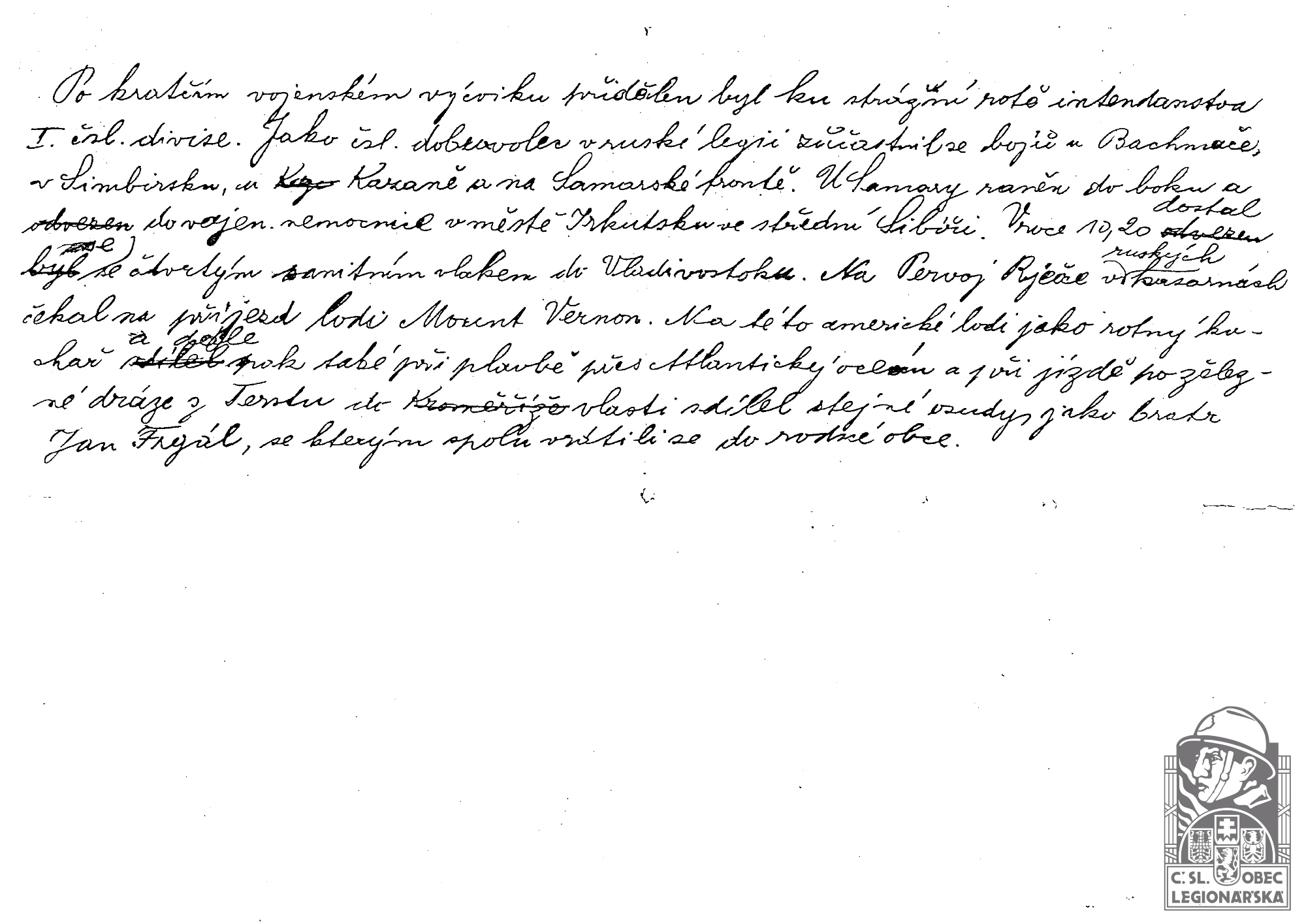 Jednotka v době zařazení:int.1.div. ( Čs. legie v Rusku )