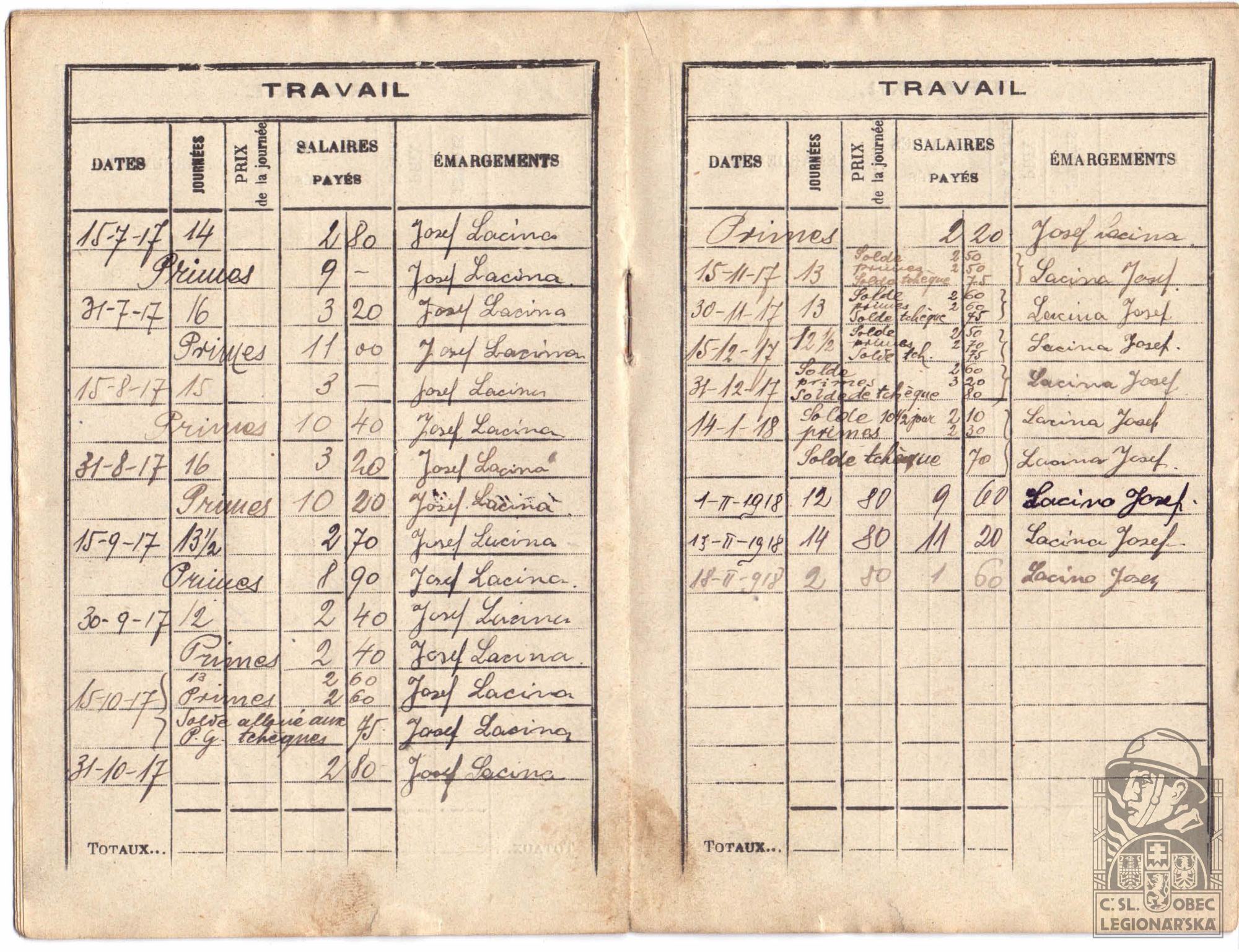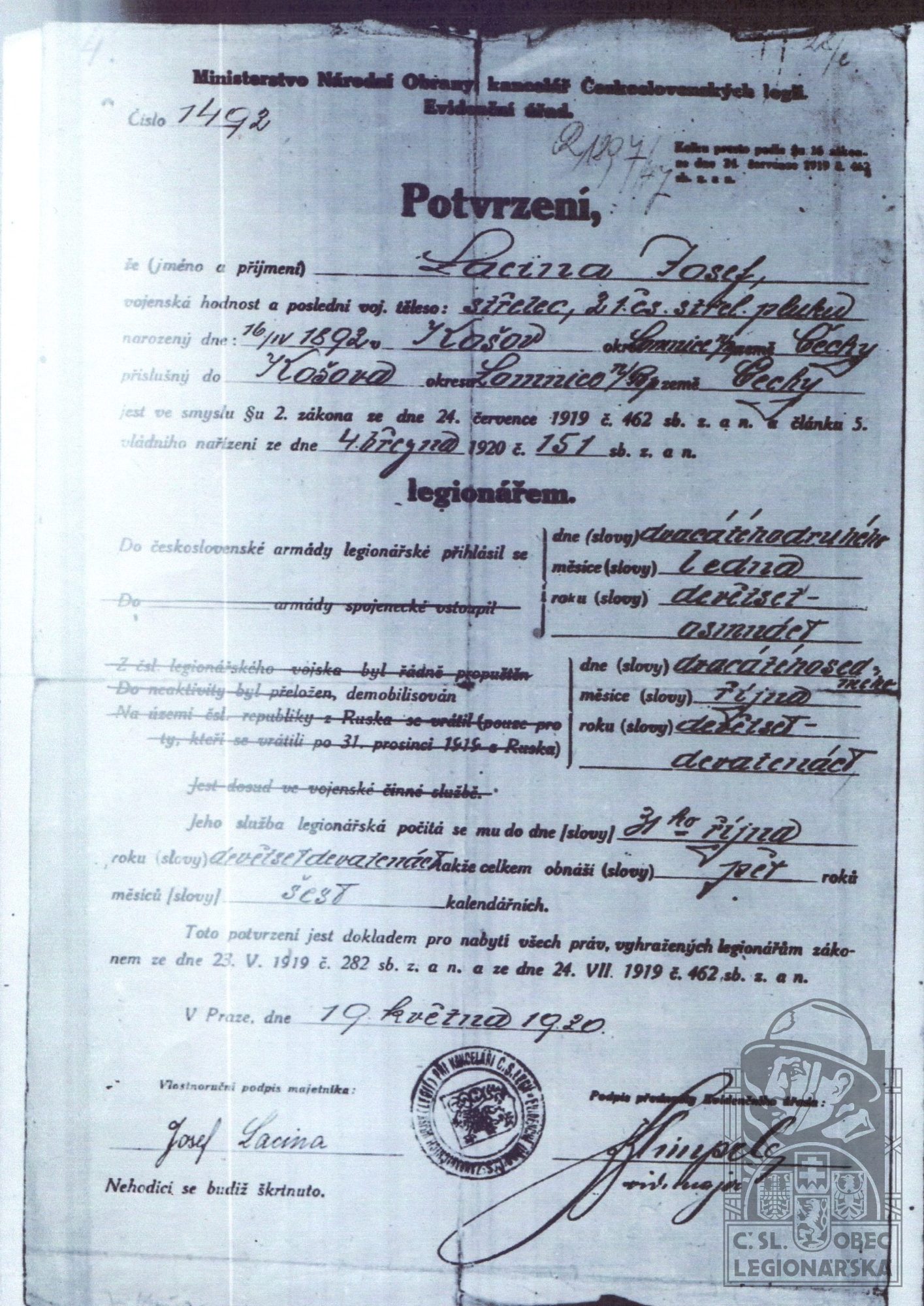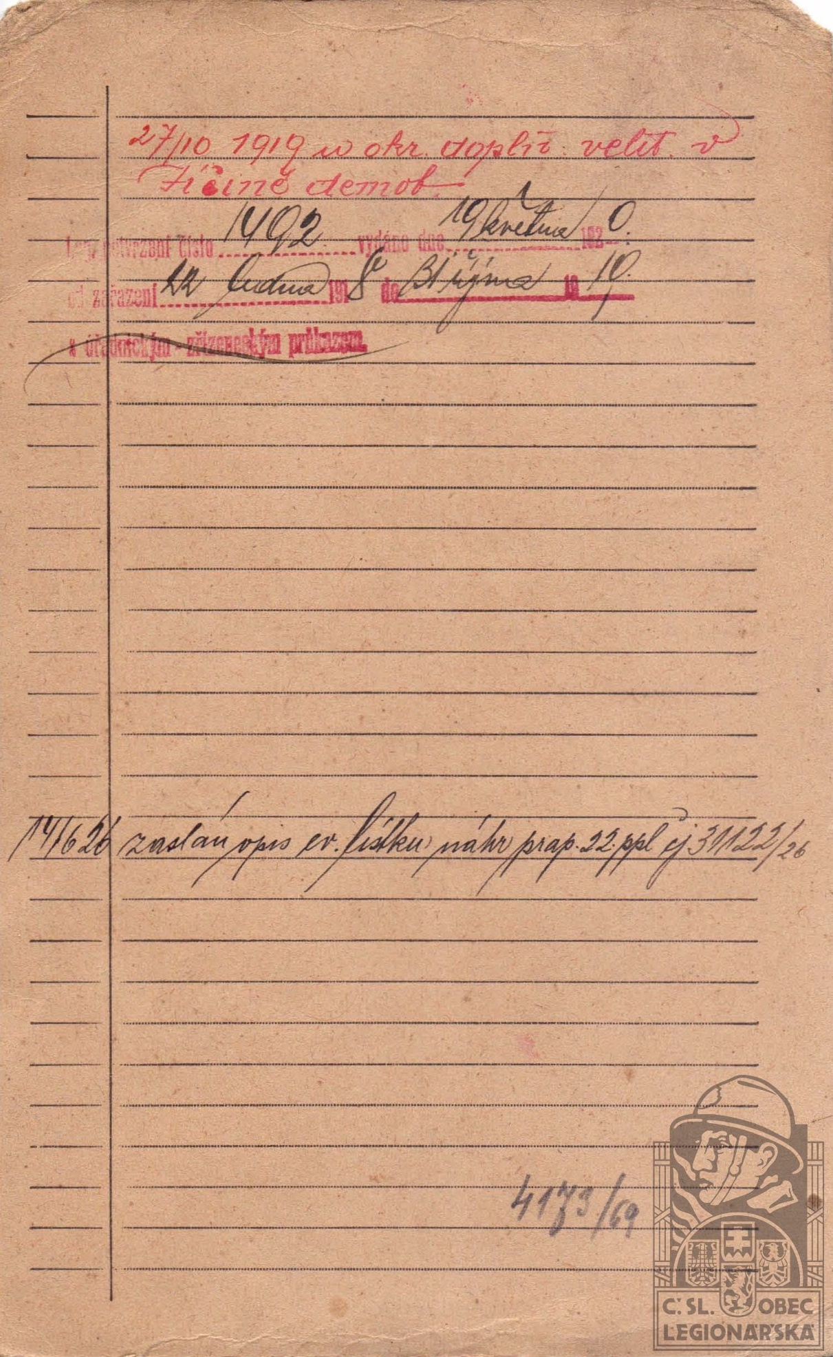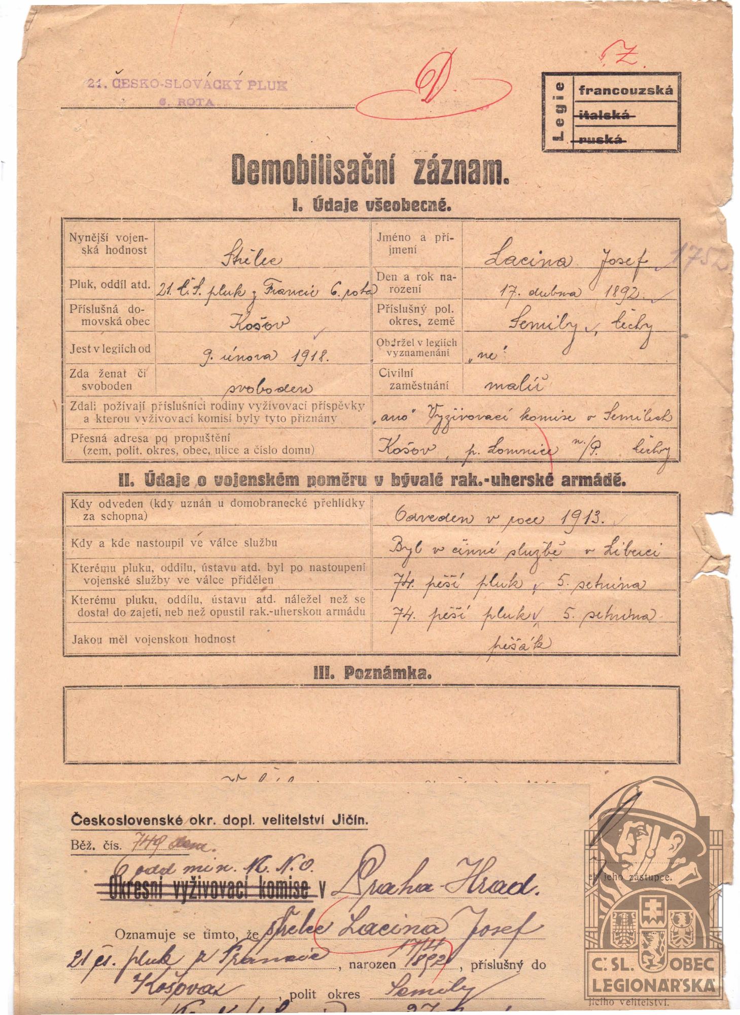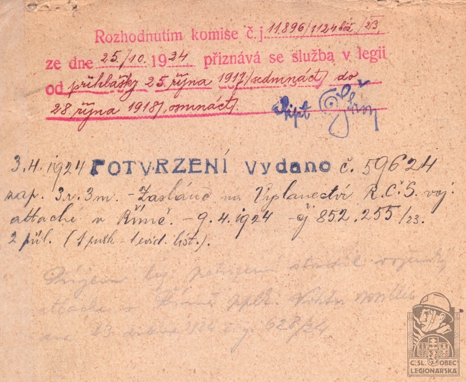 dokumenty spojené s osobou legionáře