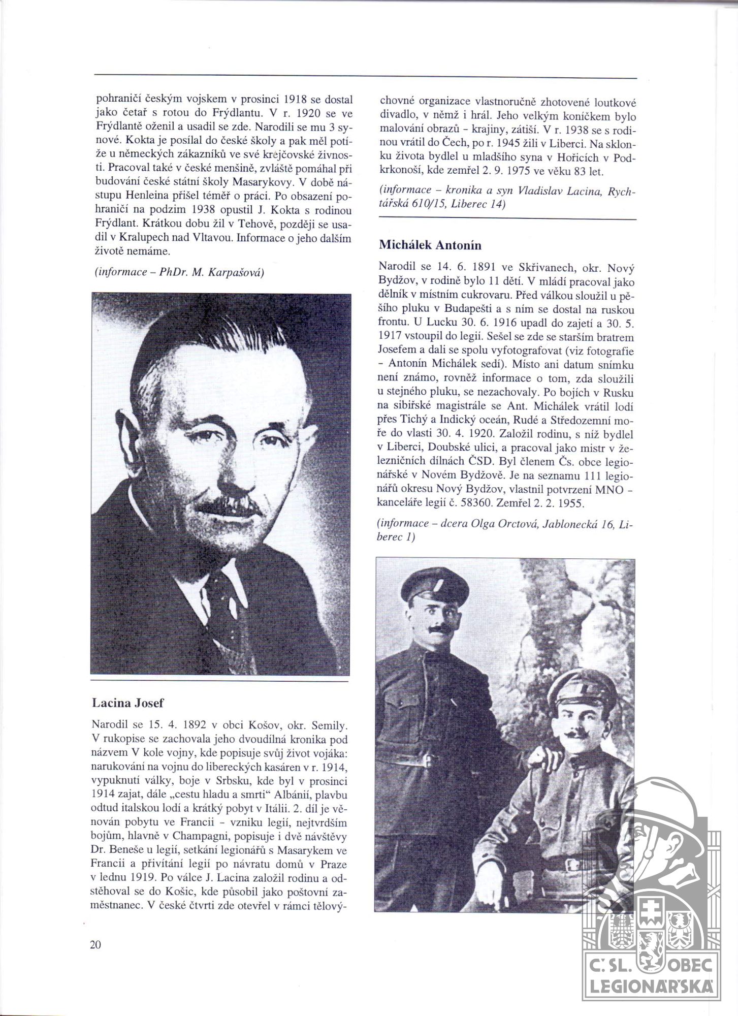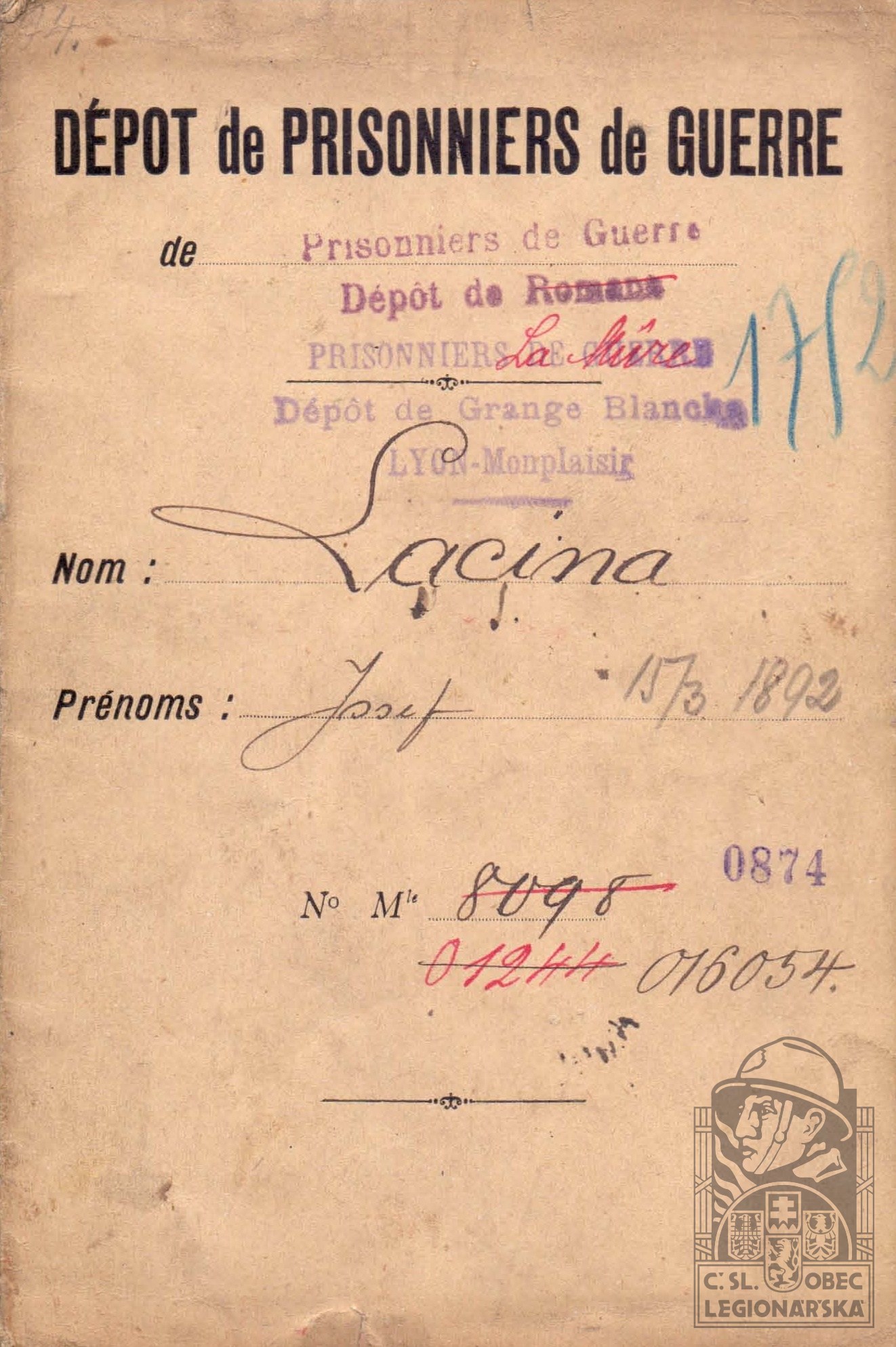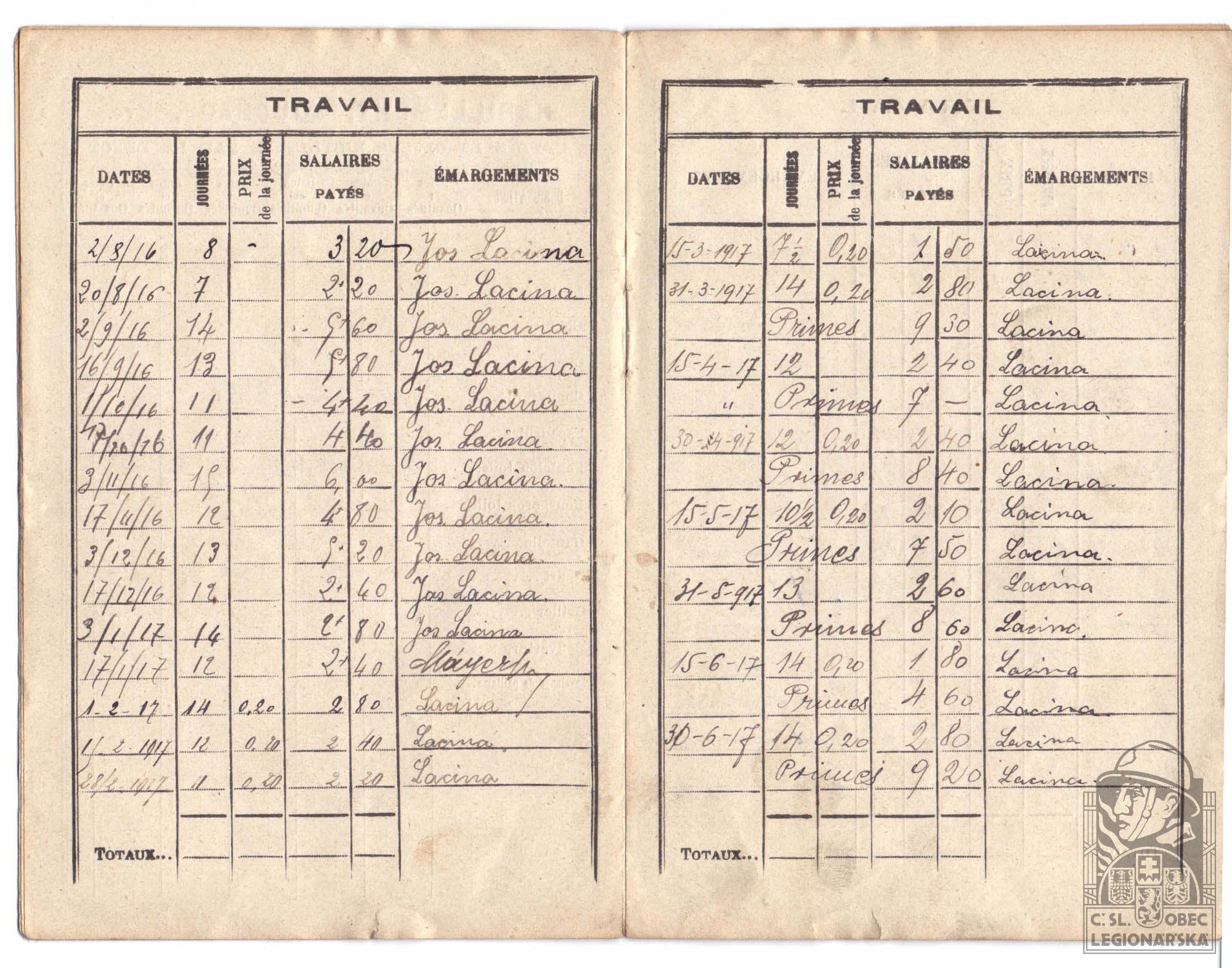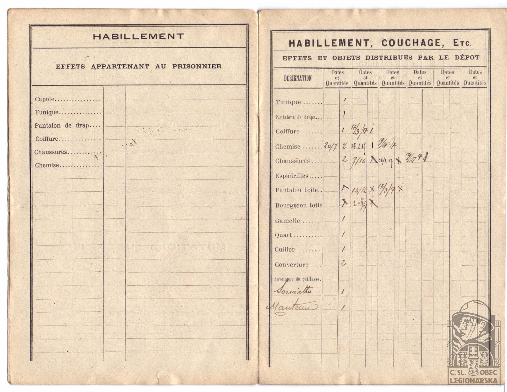 dokumenty spojené s osobou legionáře