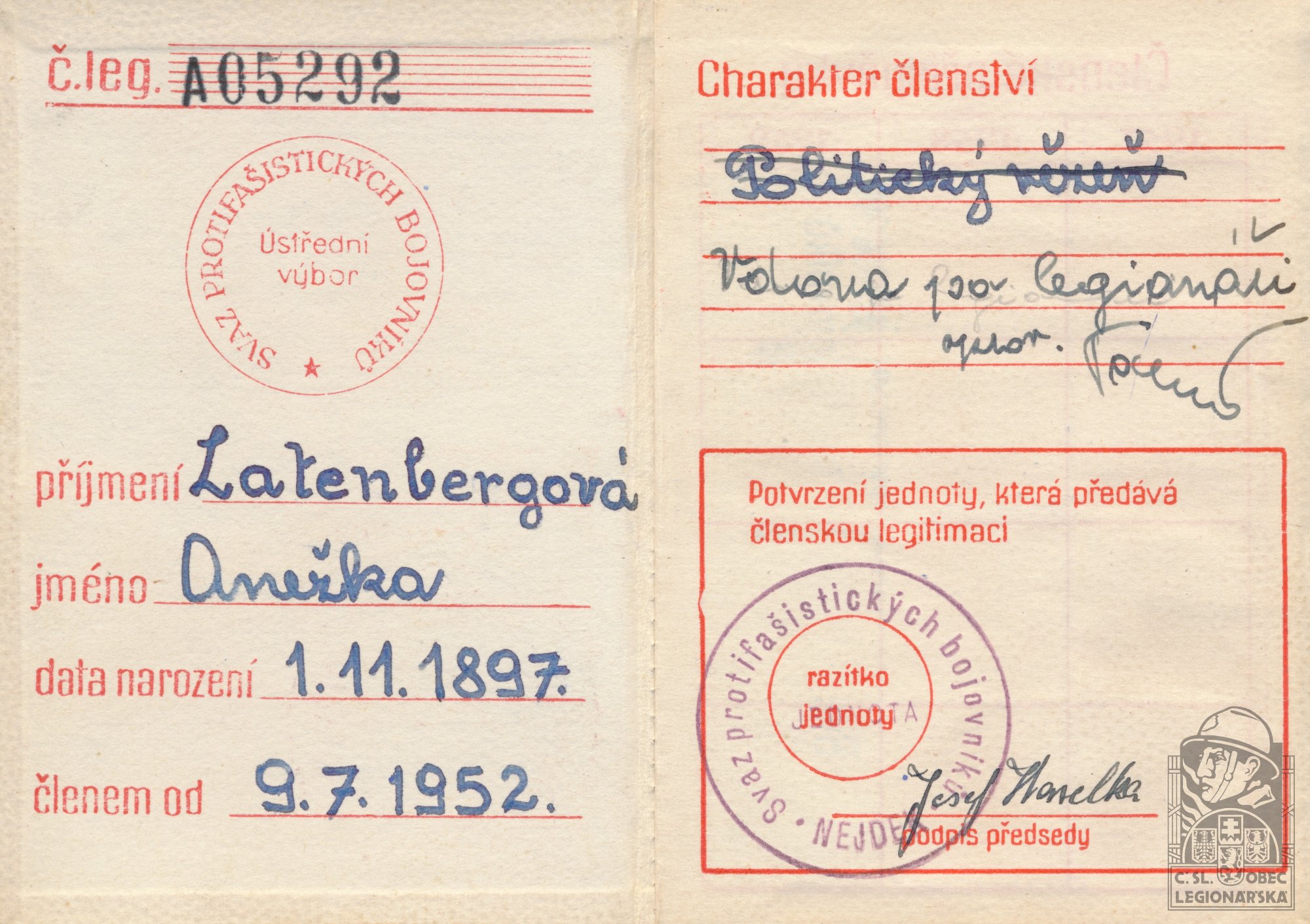 dokumenty spojené s osobou legionáře