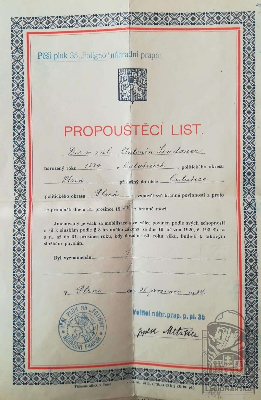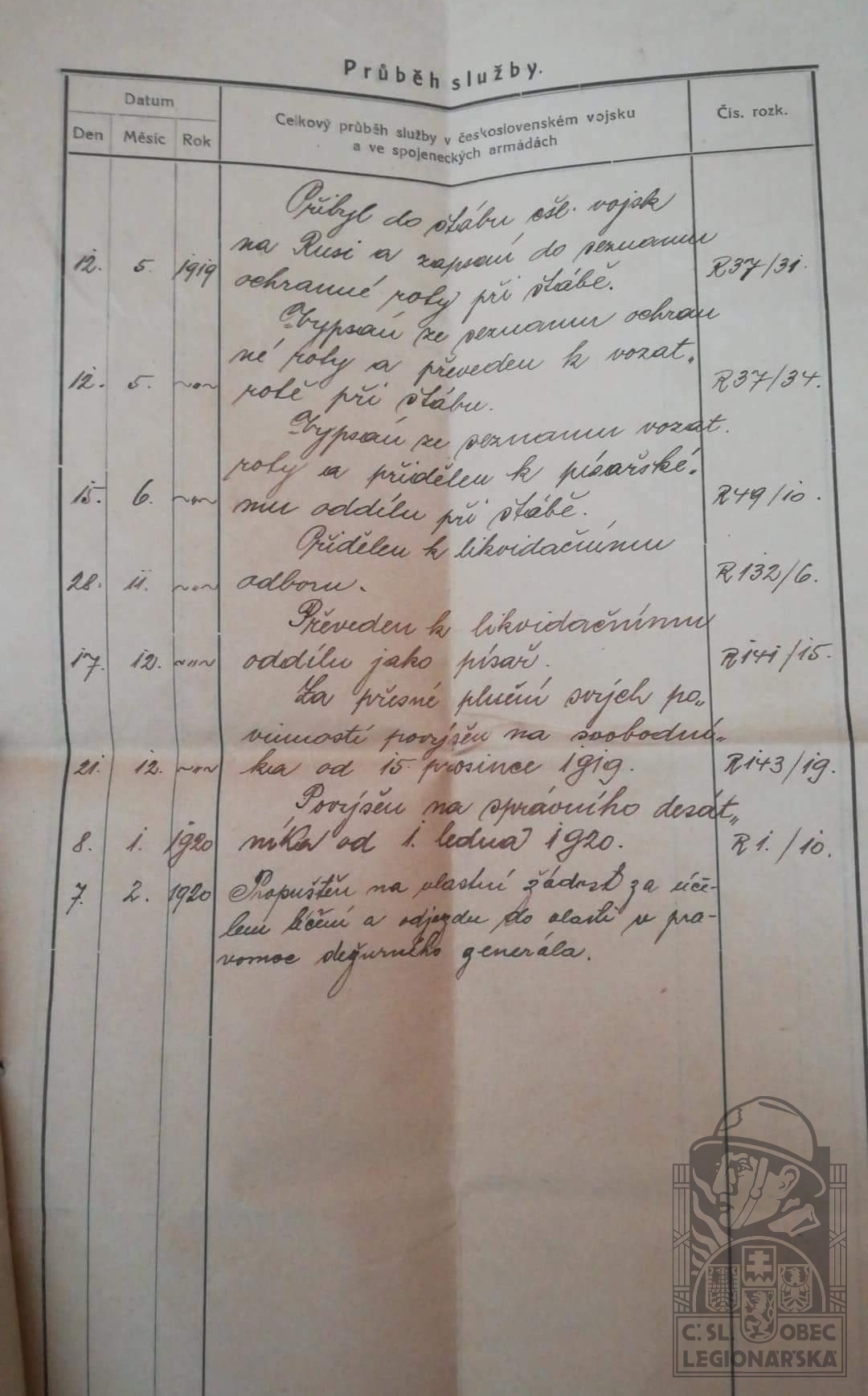 Konec v legiích:29.11.1920 ( Demobilizován )