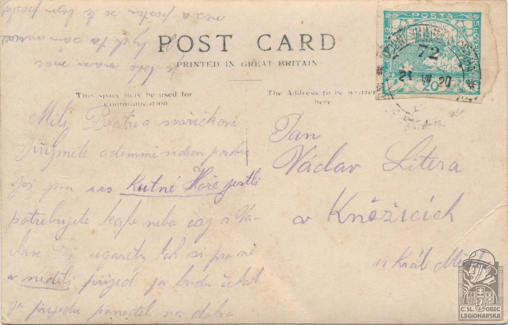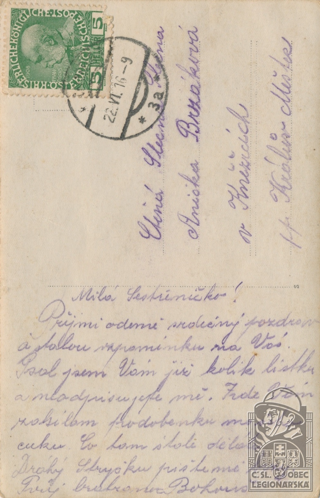 Jednotka v době zařazení:7.stř.pl. ( Čs. legie v Rusku )