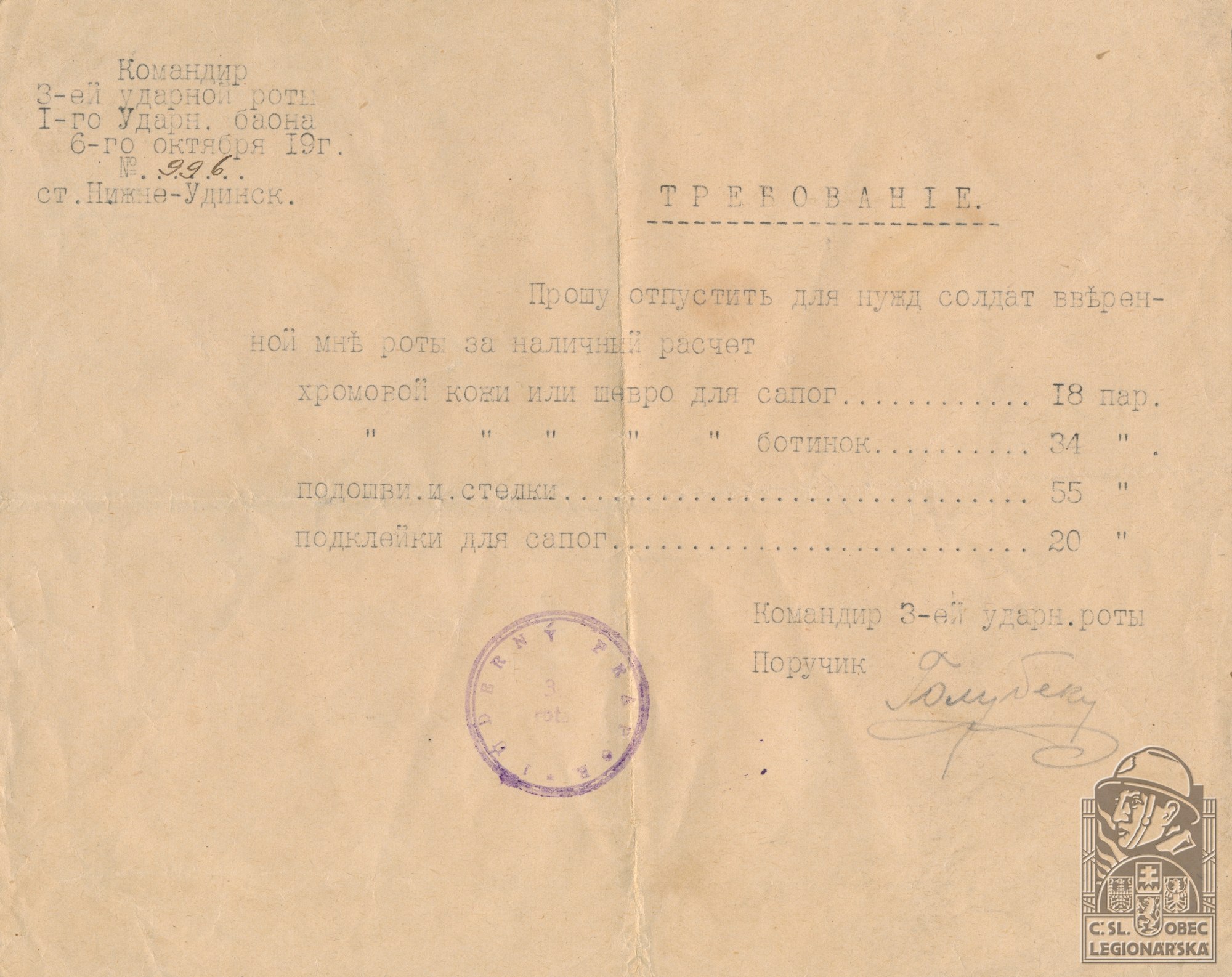 Datum zařazení do legií:12.9.1917