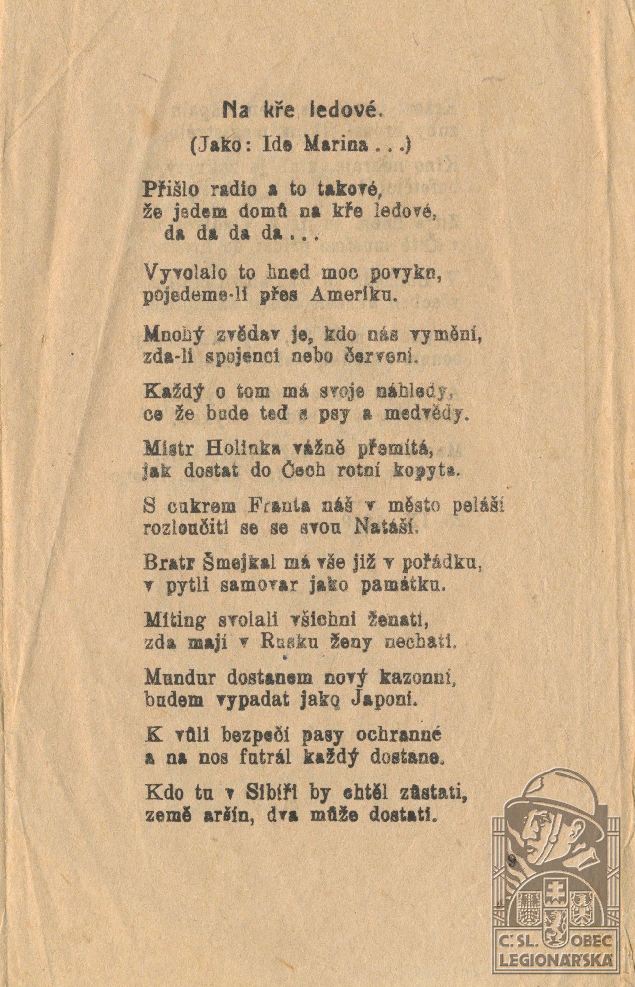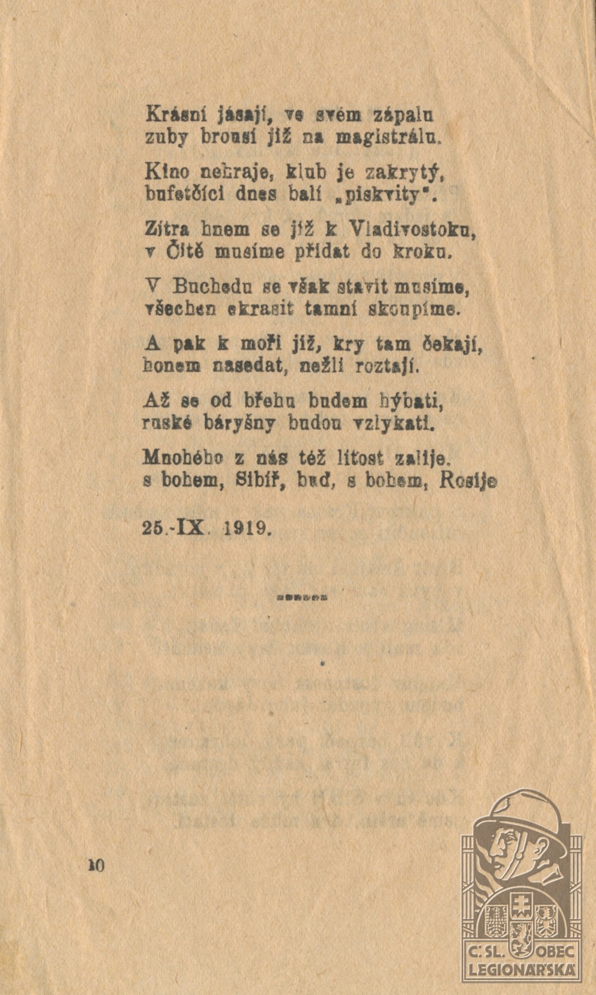 Misto podání přihlášky do legií:Bezulovská Pirjitinský újezd Poltavská gub.
