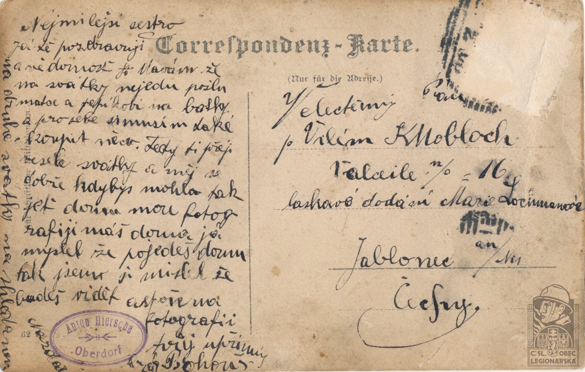 Jednotka v době zařazení:5.stř.pl. ( Čs. legie v Rusku )