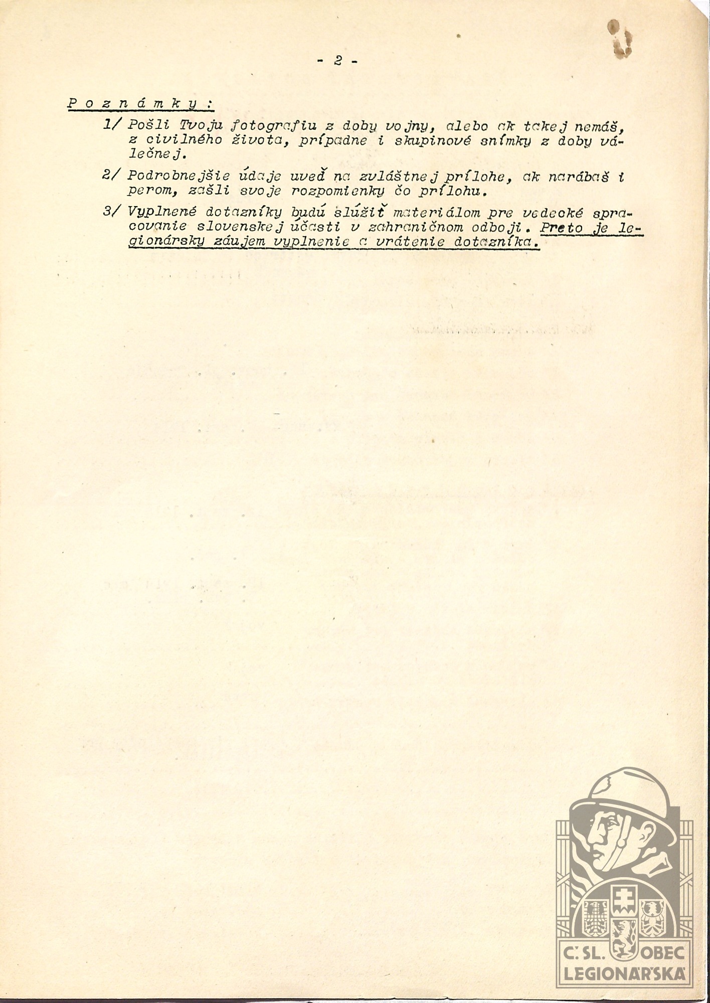 Zdroj informací: legionářský poslužný spis osobní karta legionáře