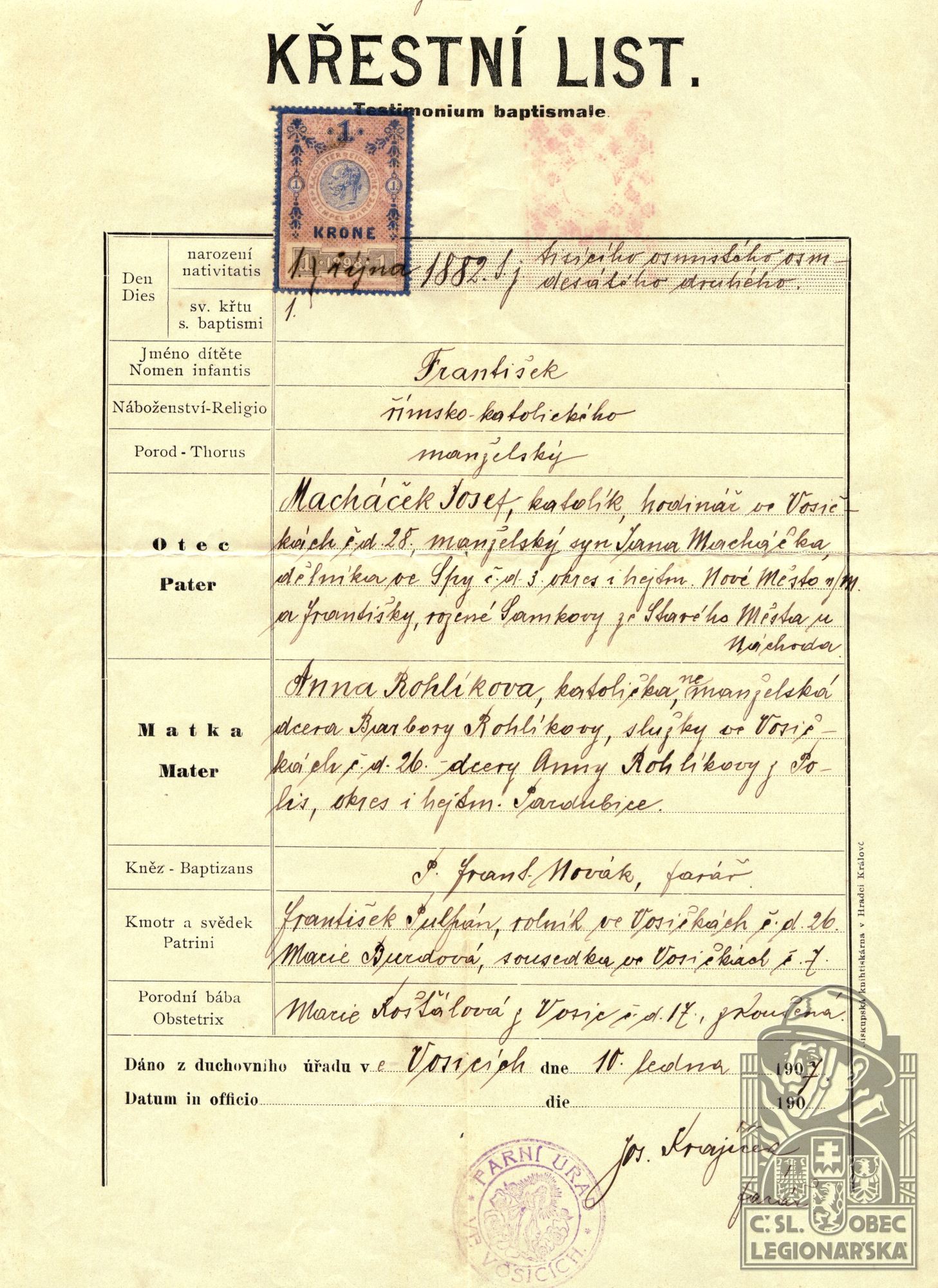 Obec narození:Vosice