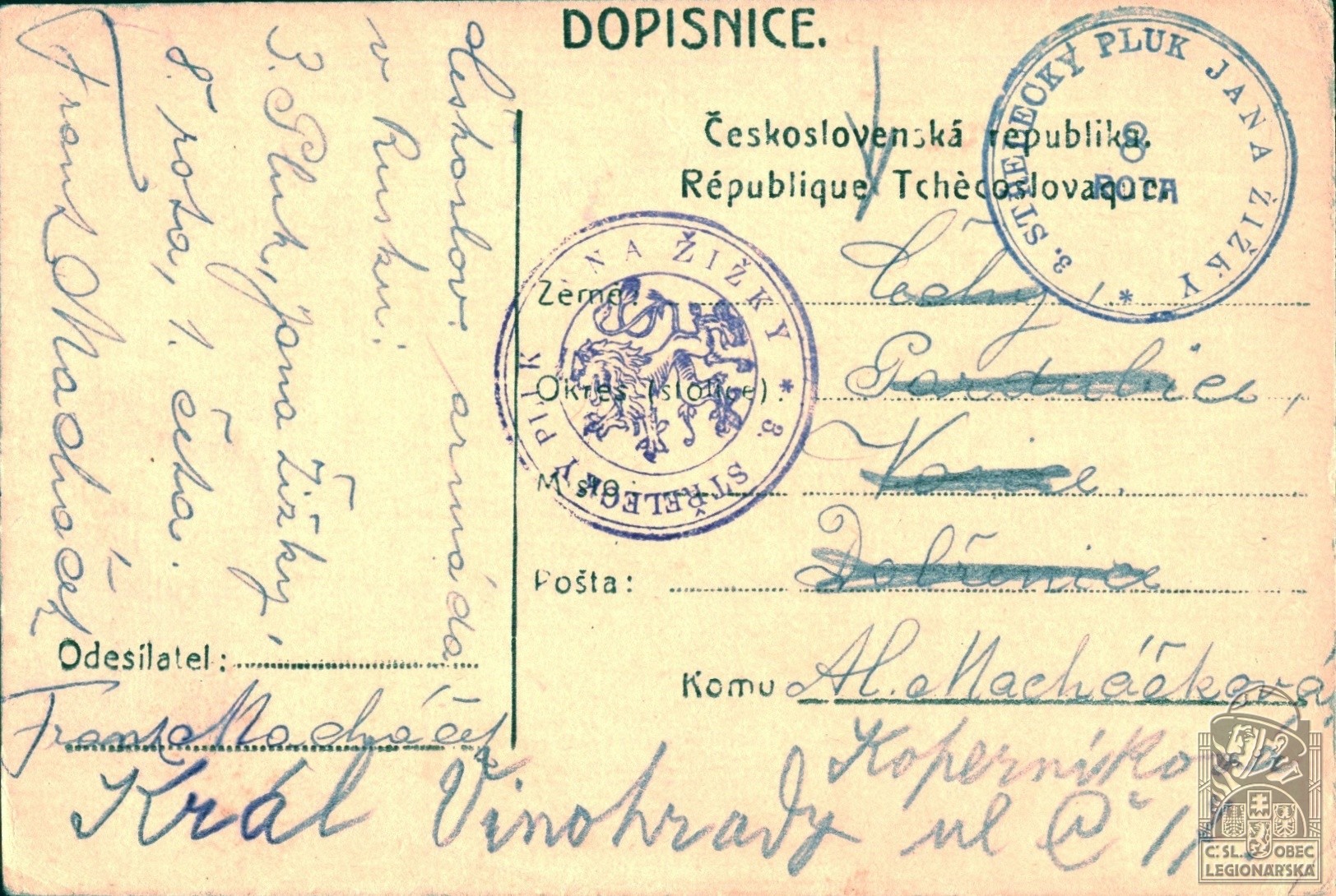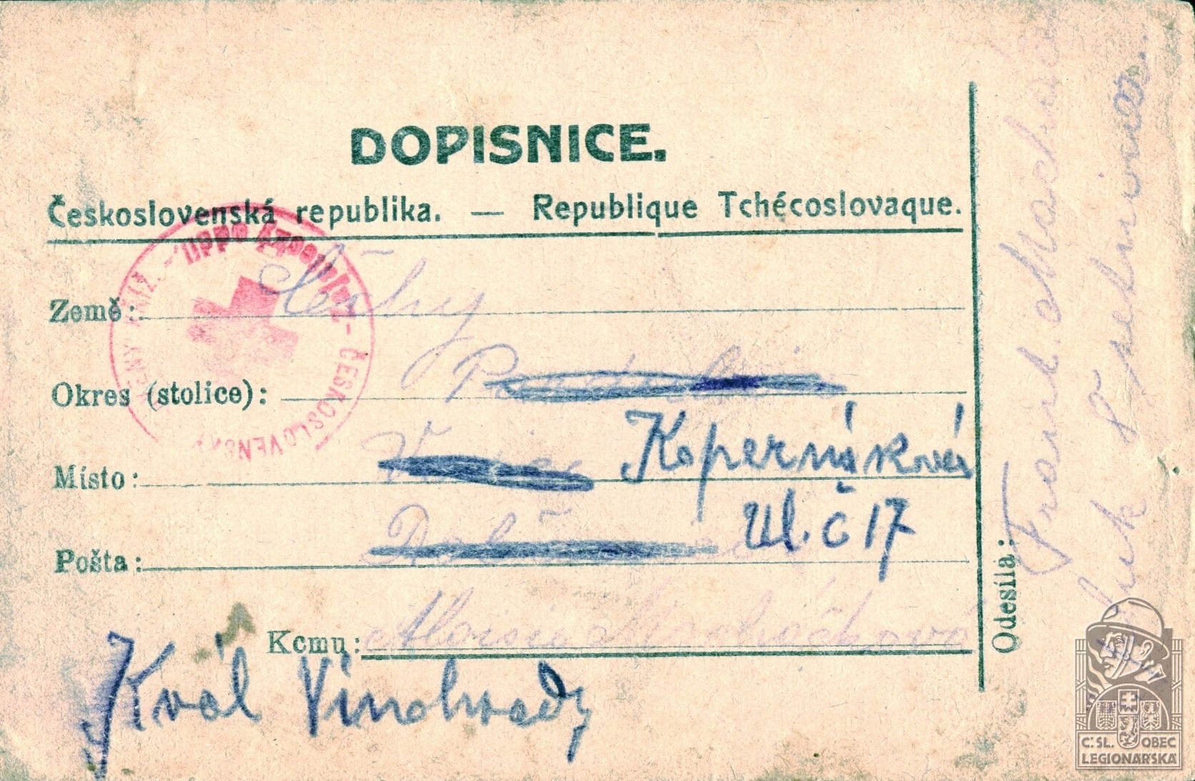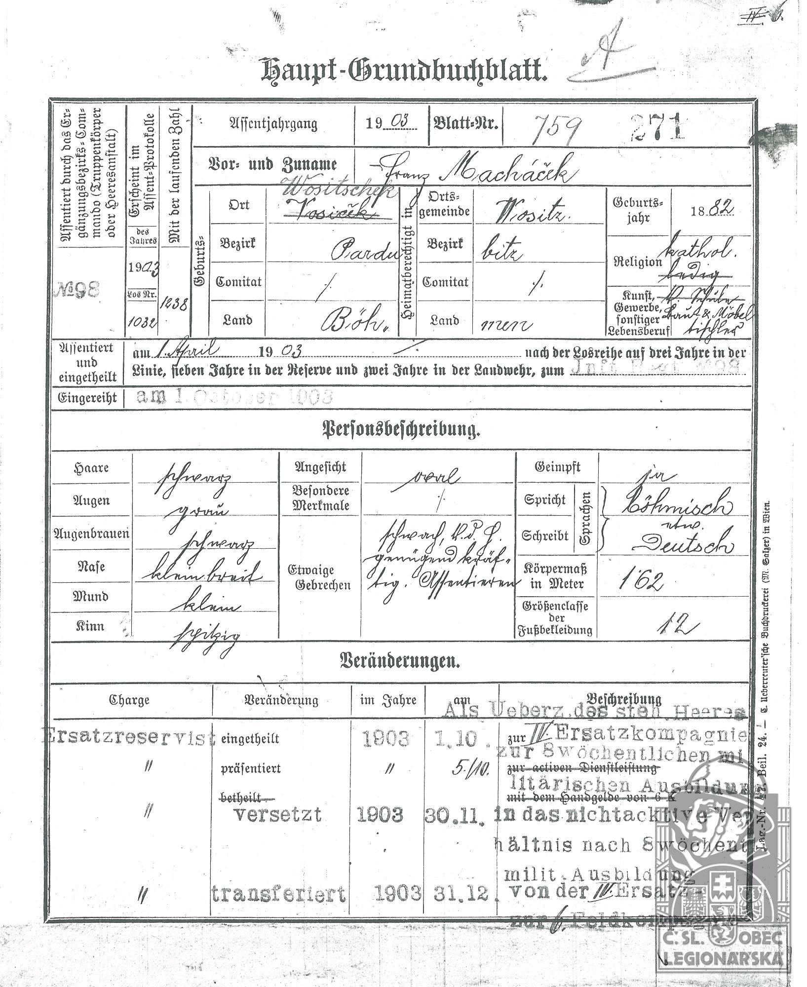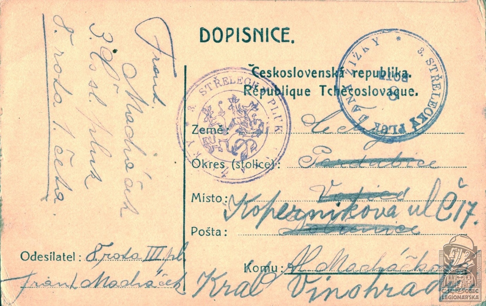 Zdroj informací: legionářský poslužný spis osobní karta legionáře