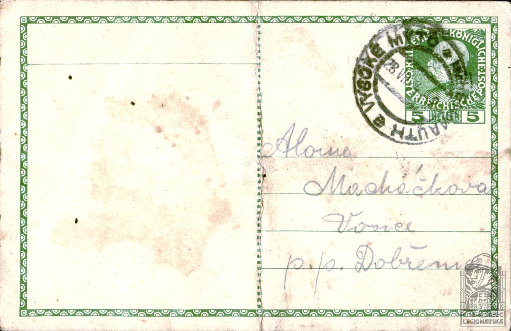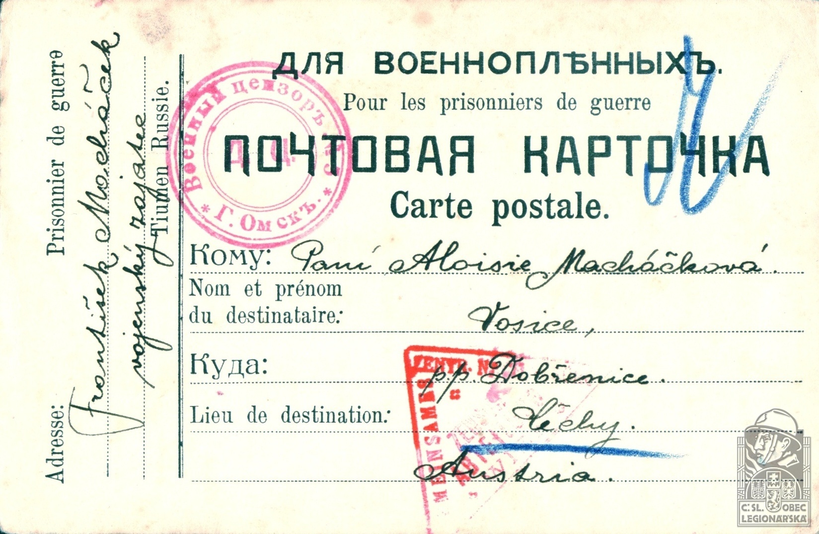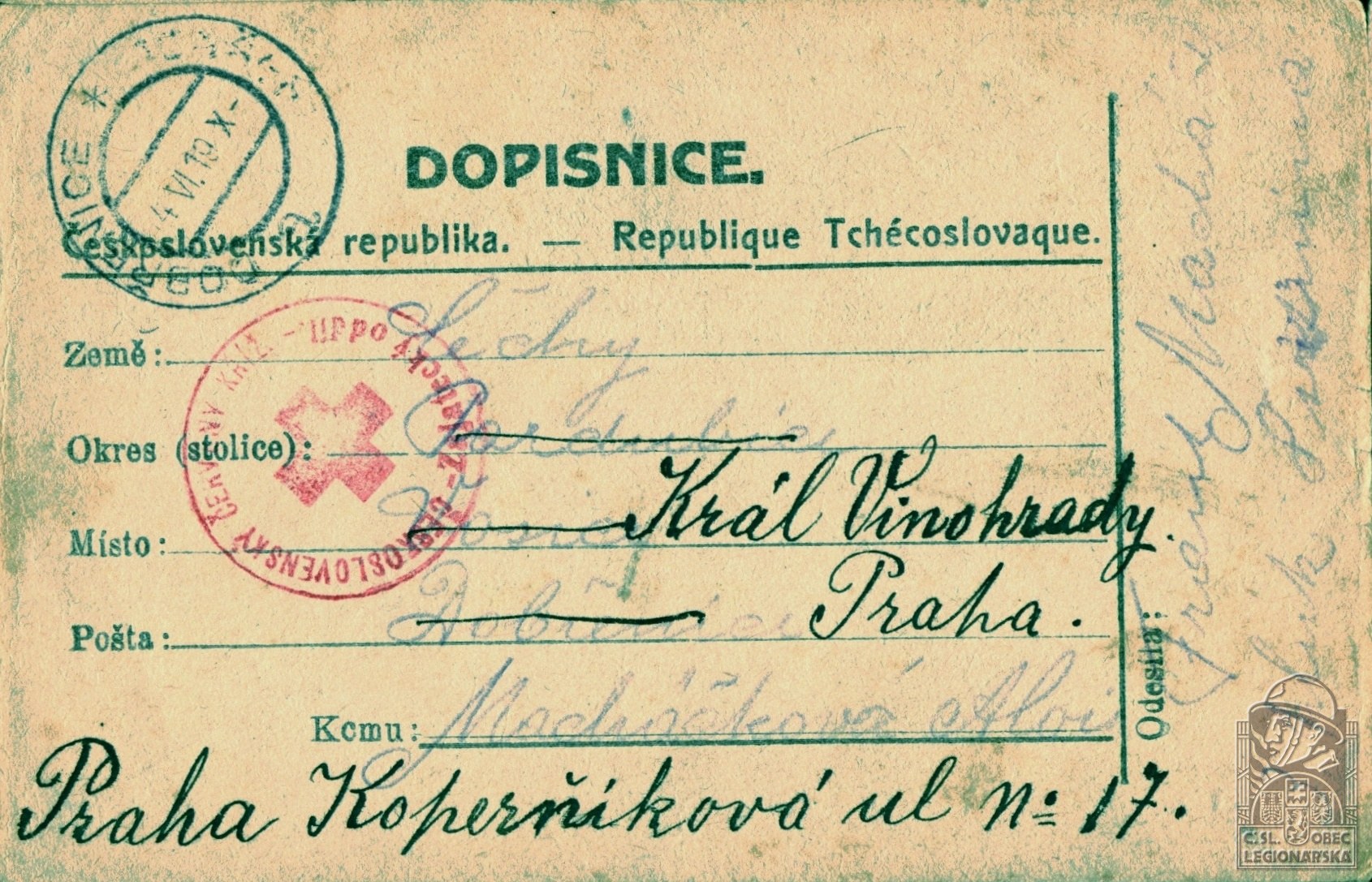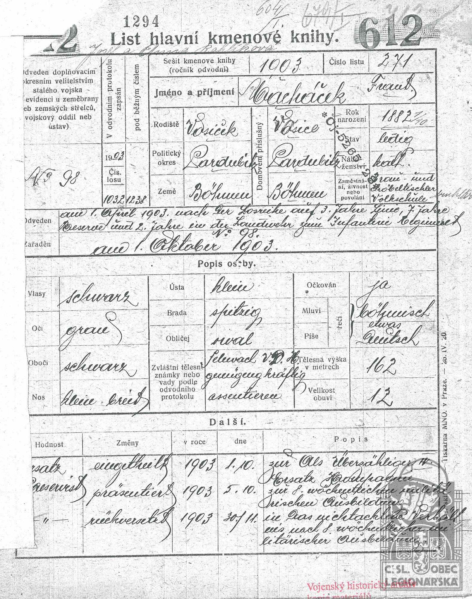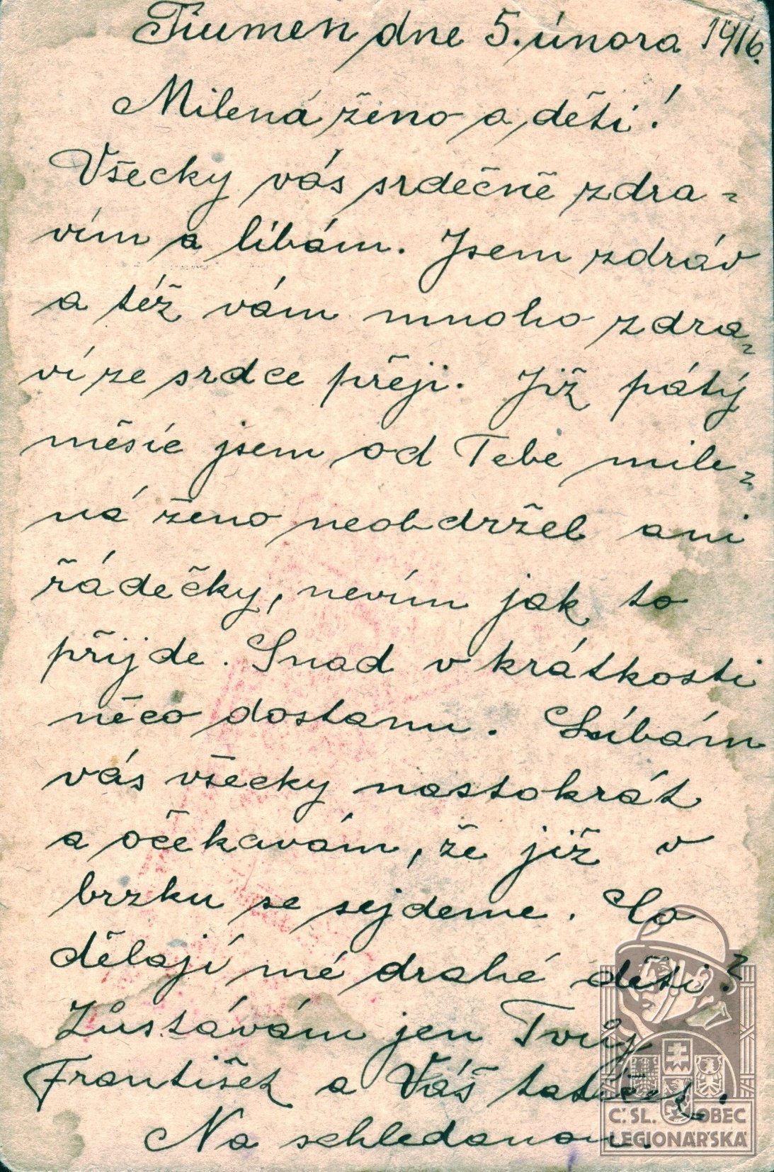 Zdroj informací: legionářský poslužný spis osobní karta legionáře