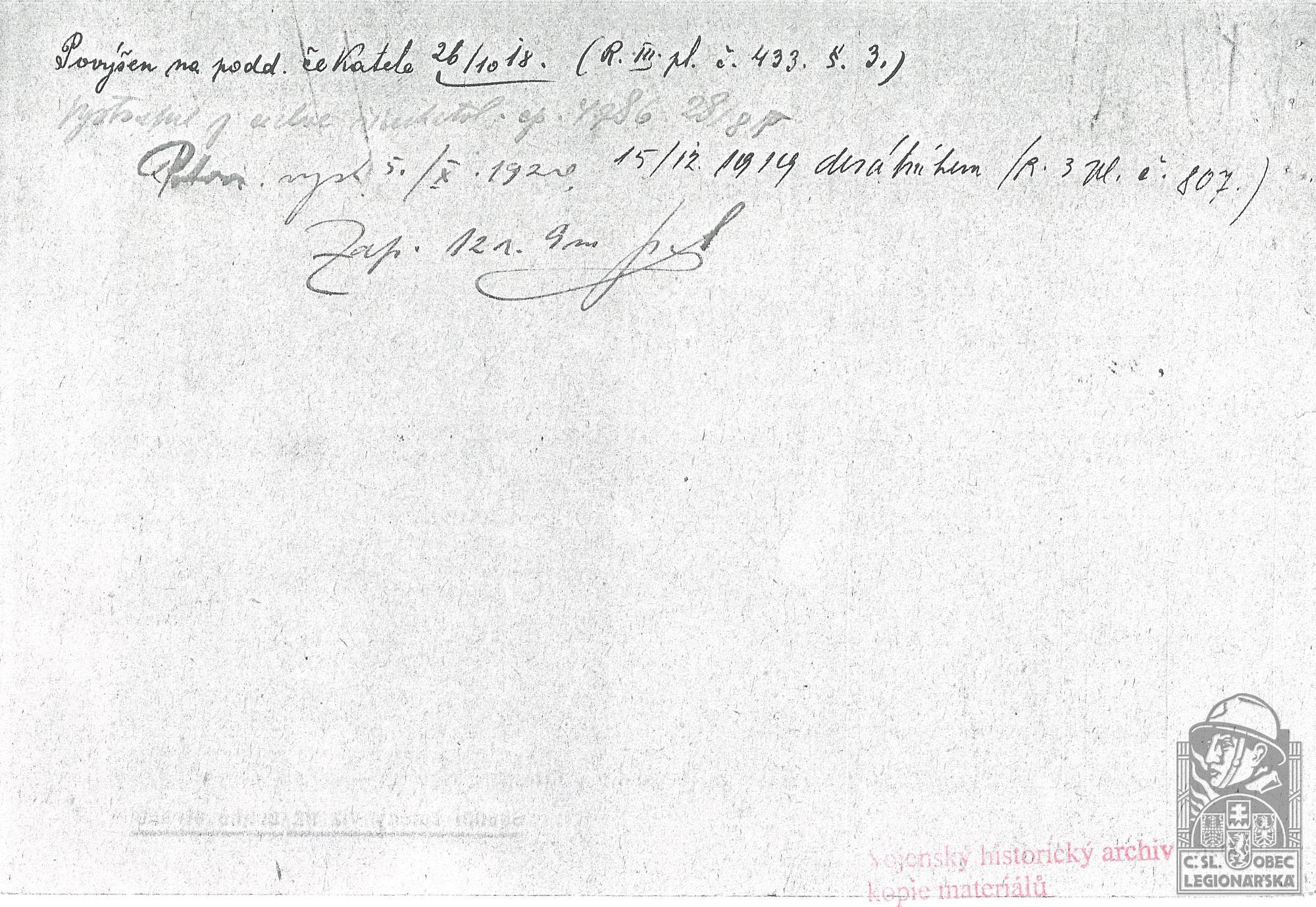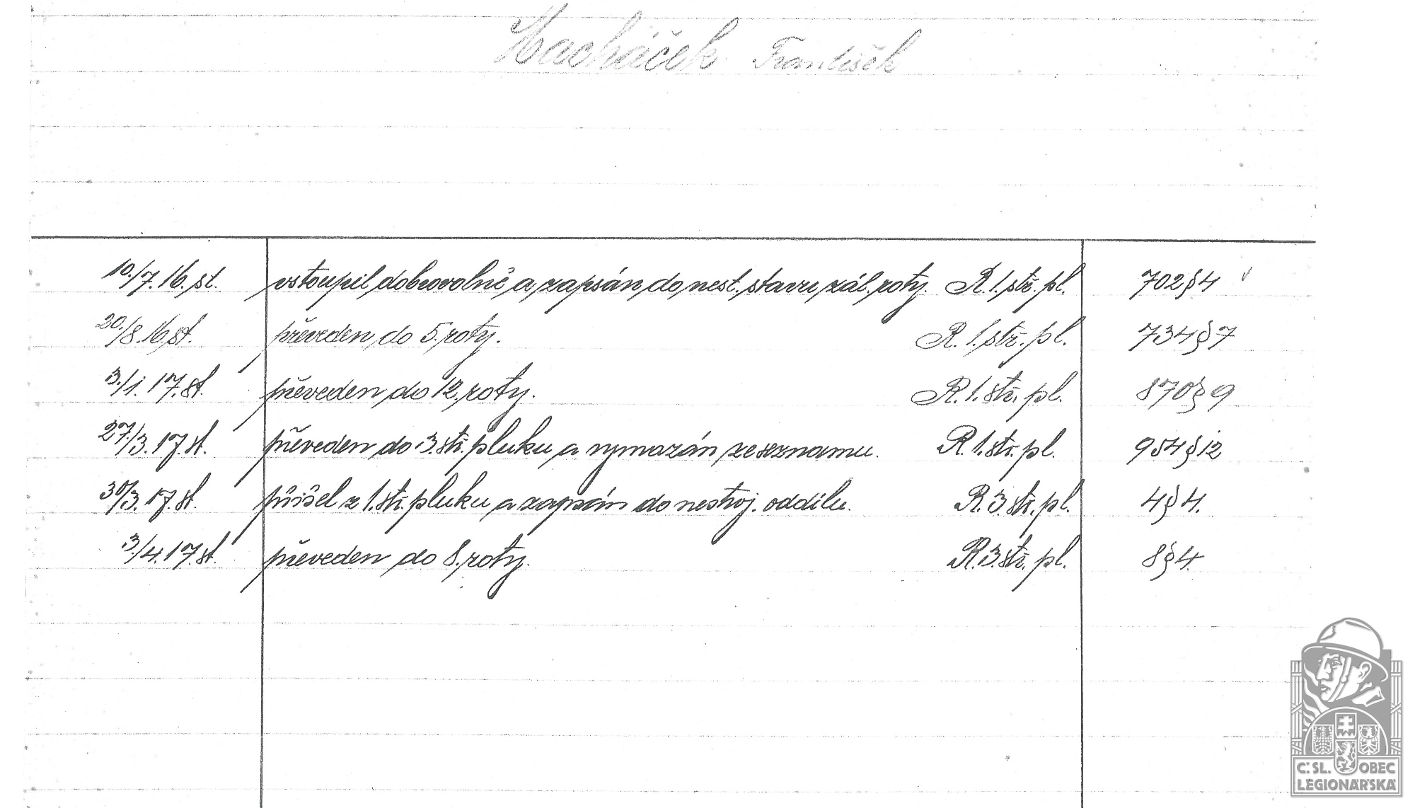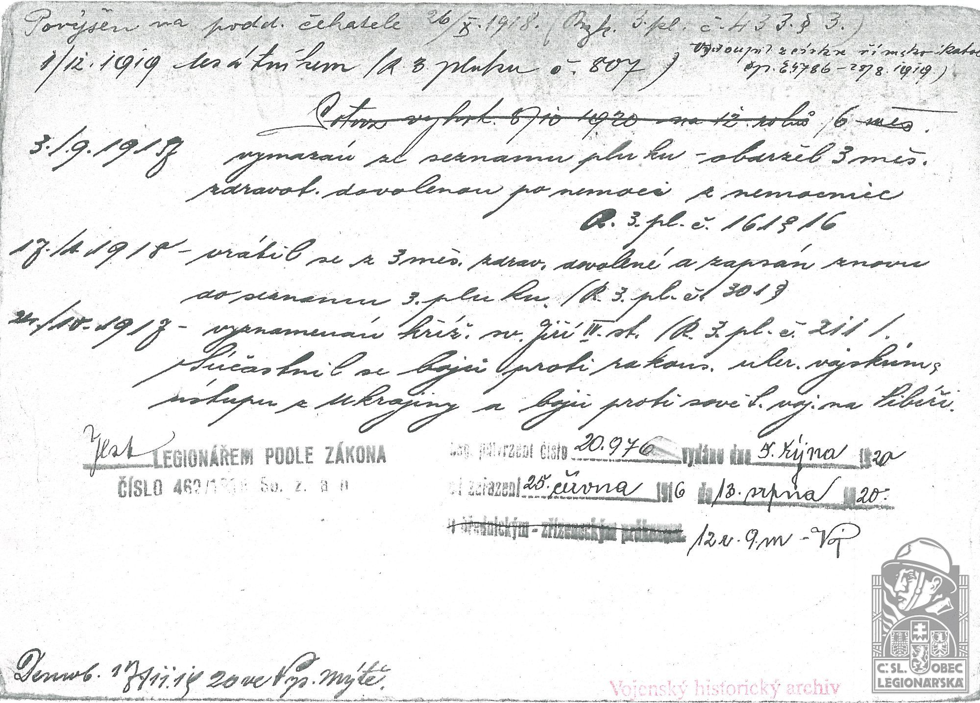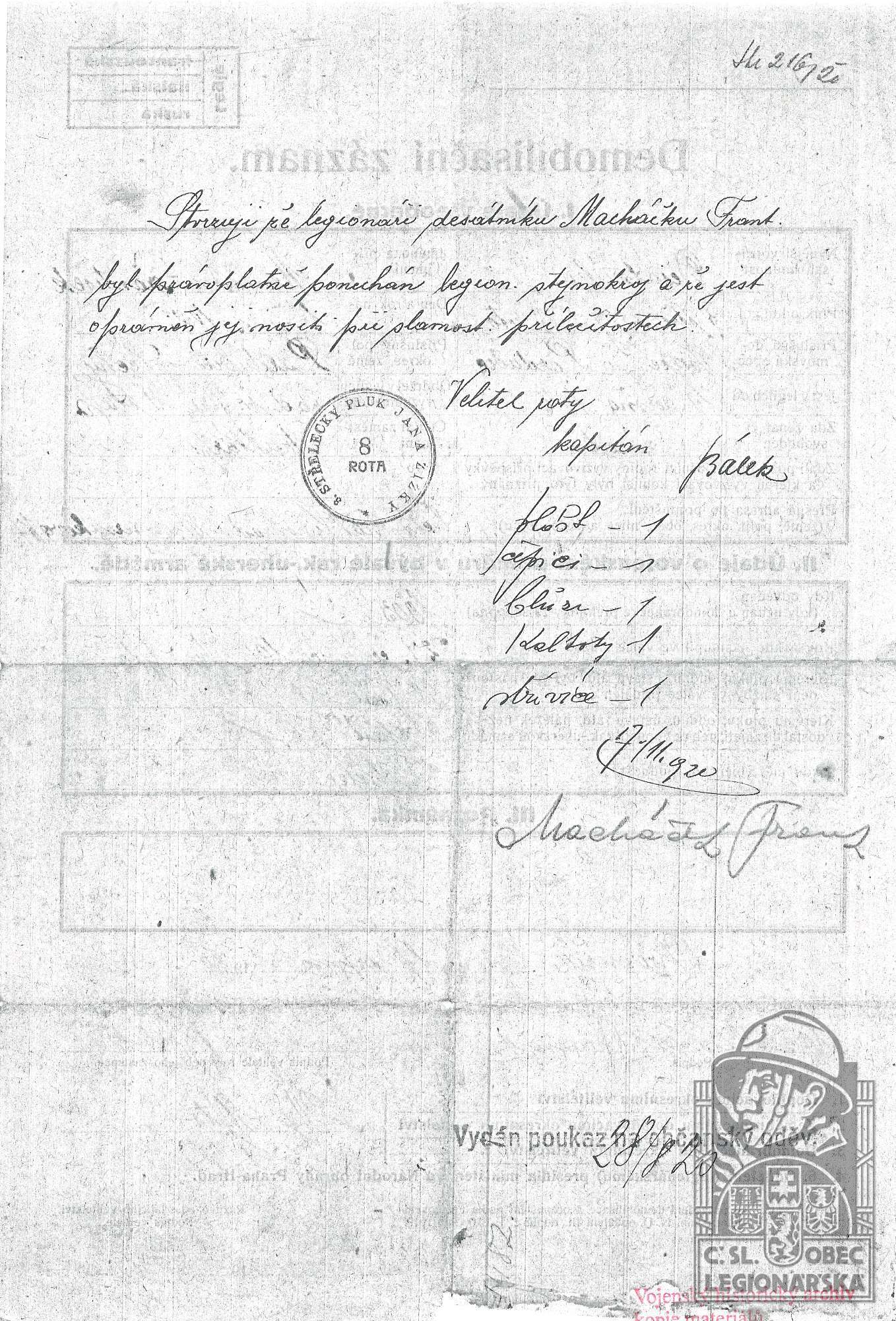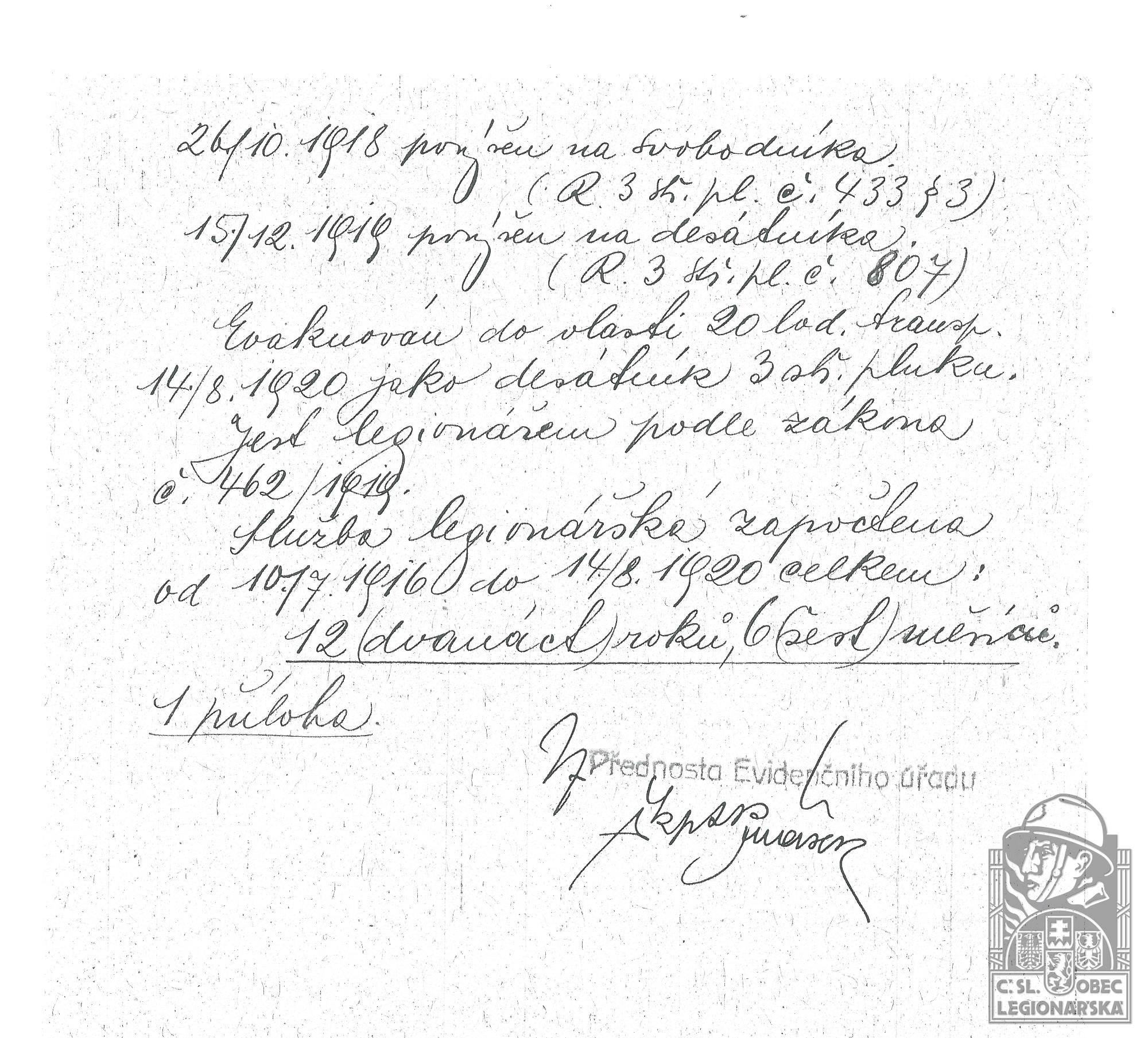 dokumenty spojené s osobou legionáře