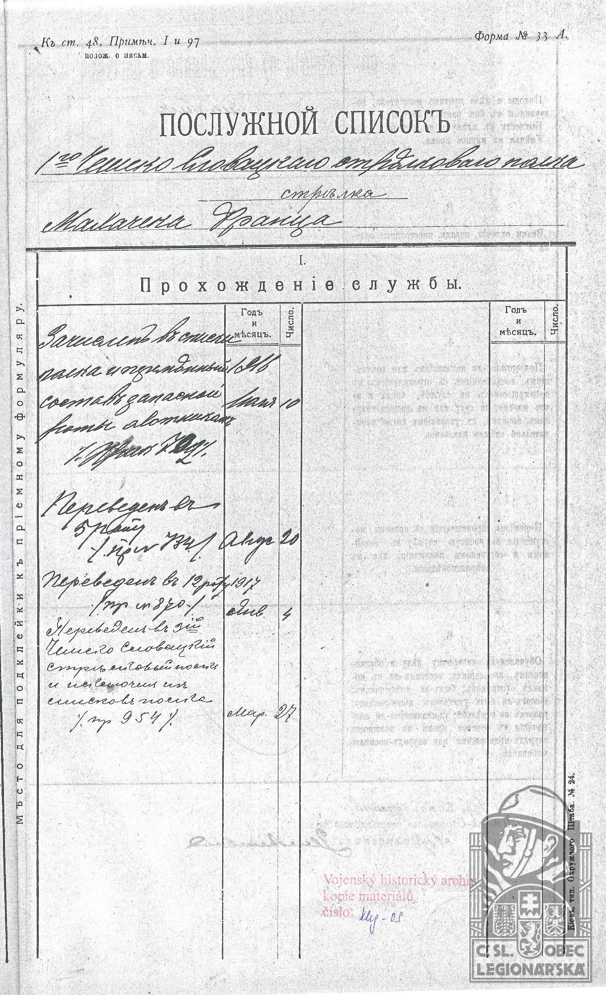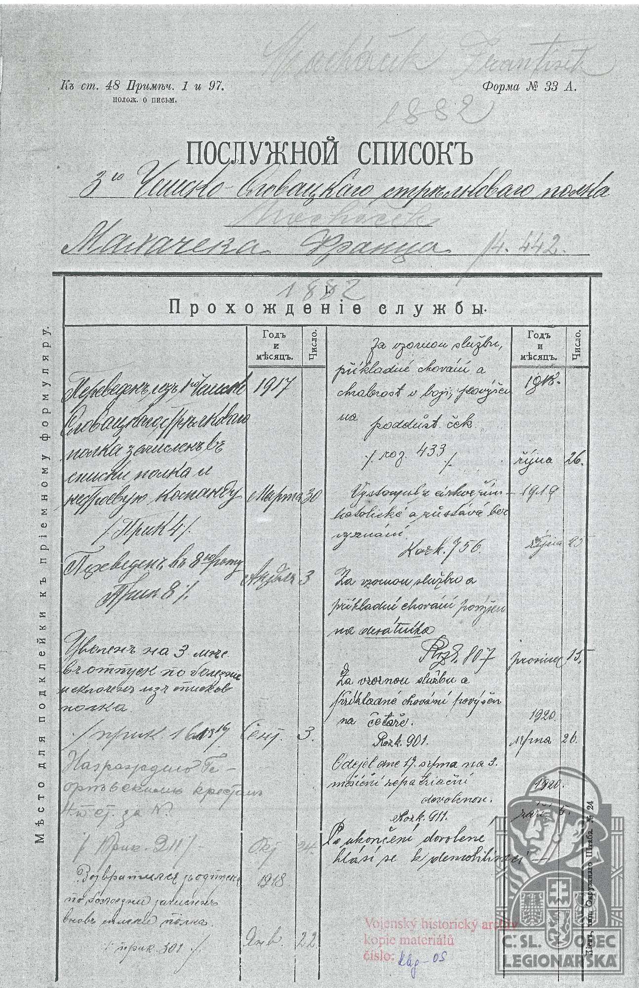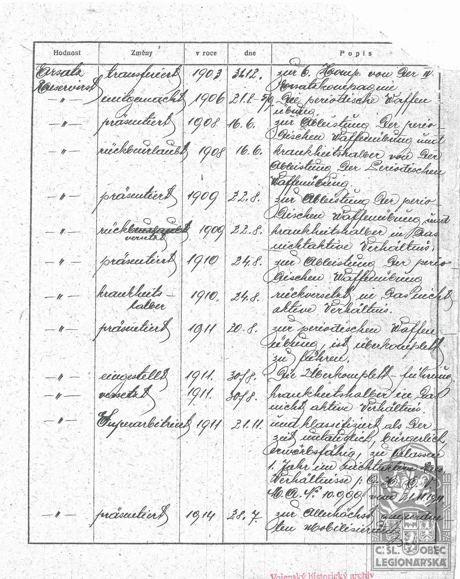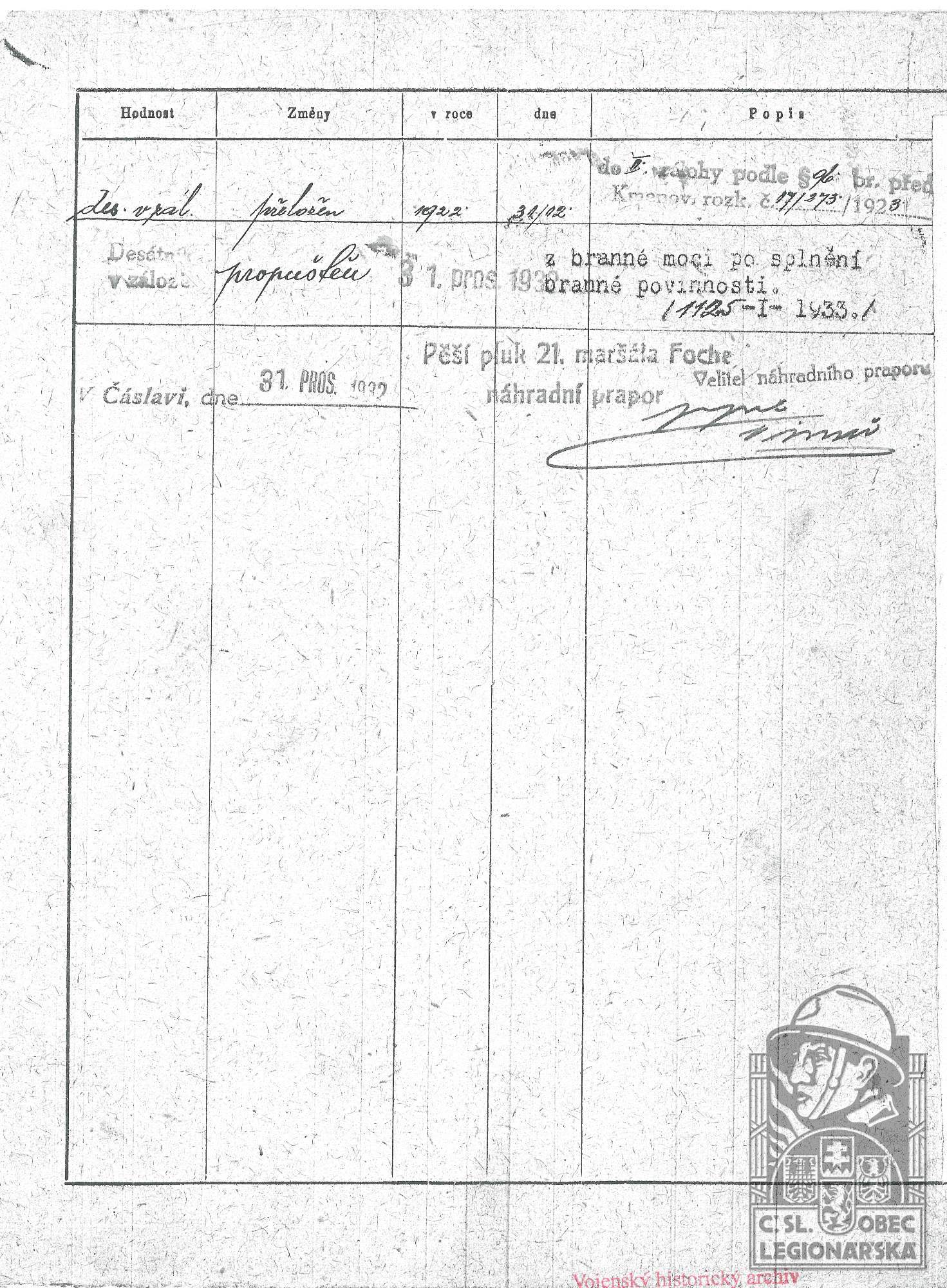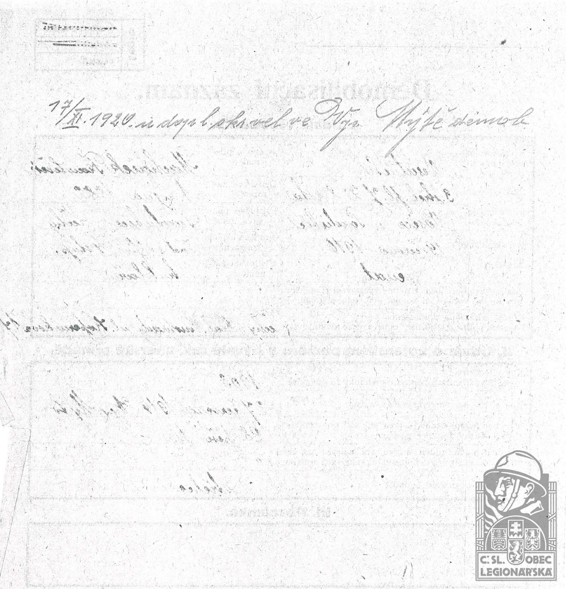dokumenty spojené s osobou legionáře