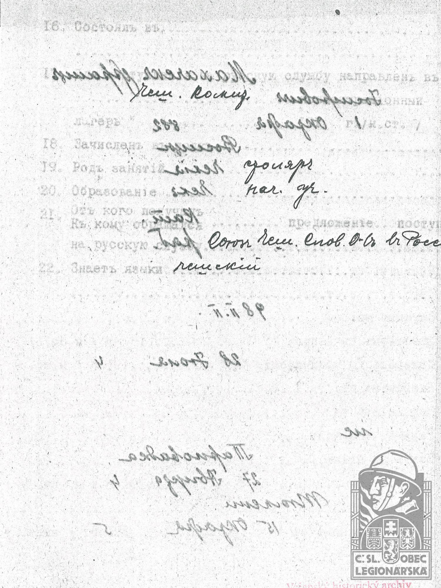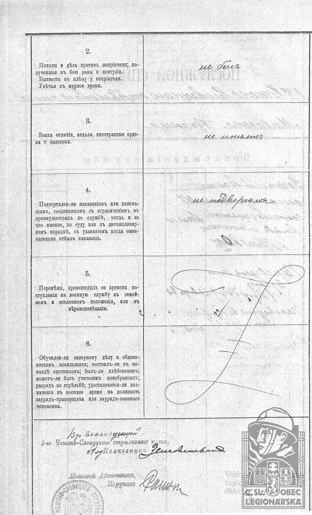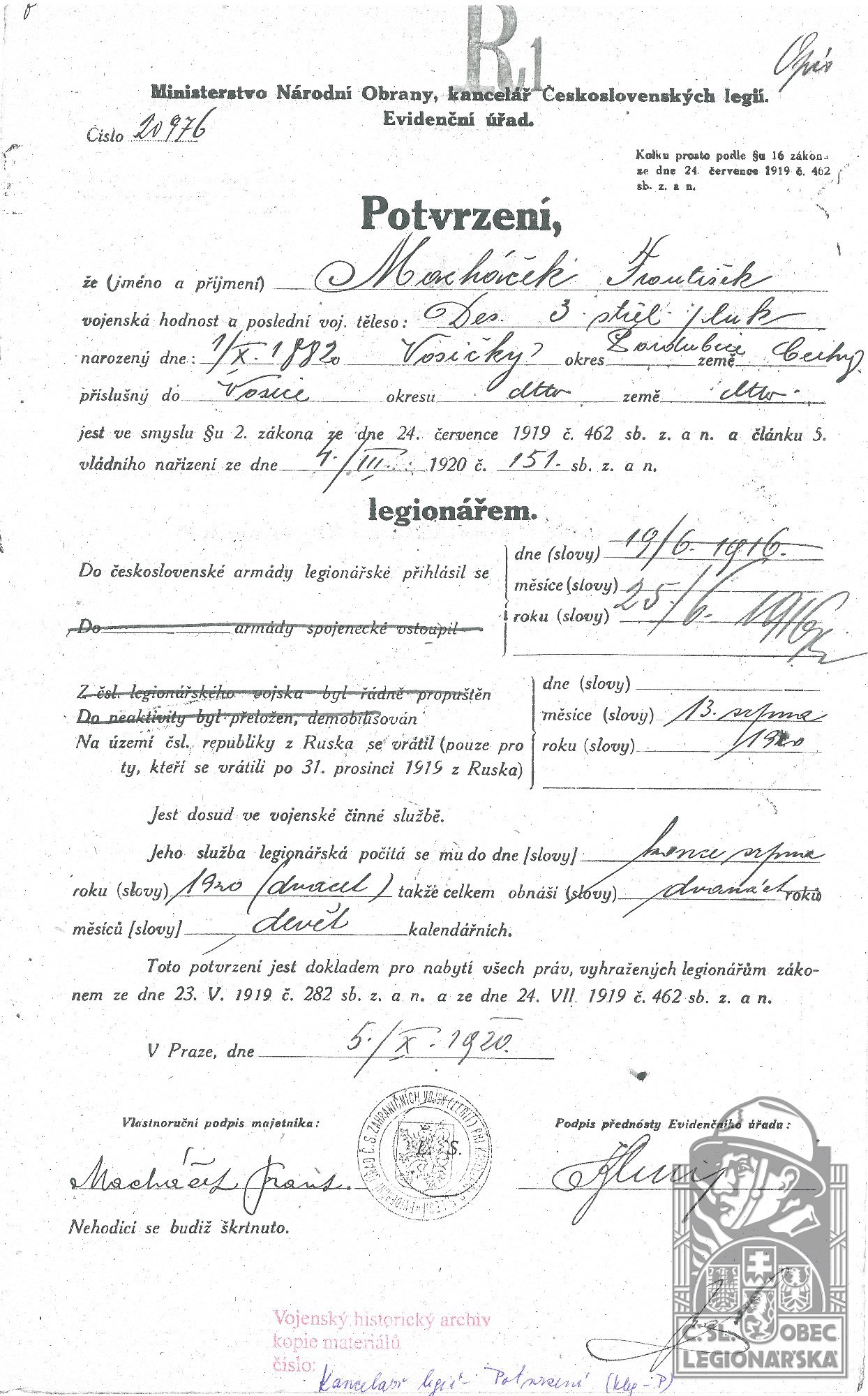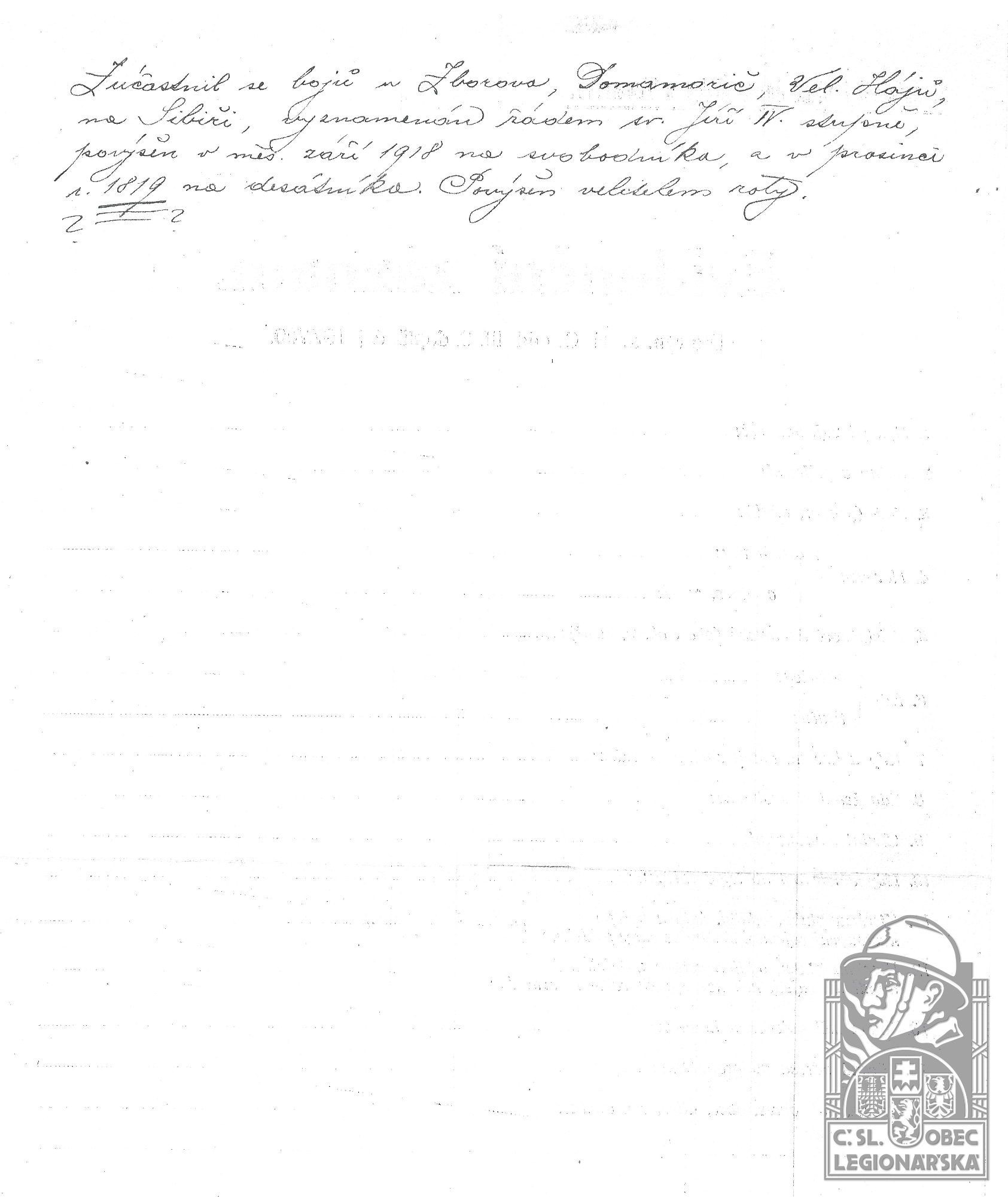 dokumenty spojené s osobou legionáře