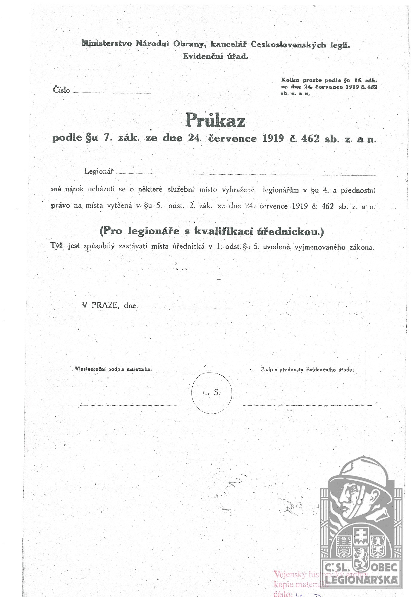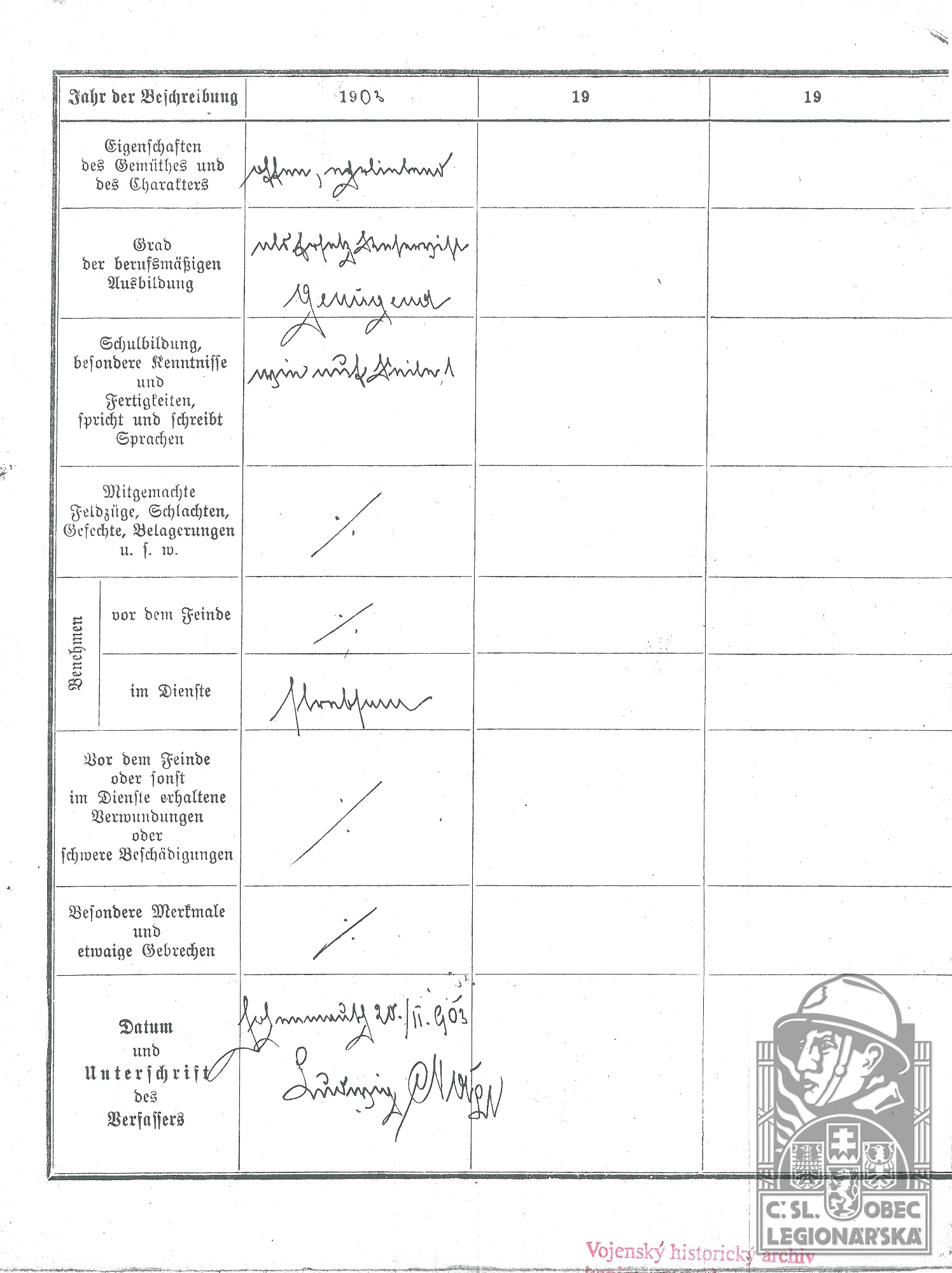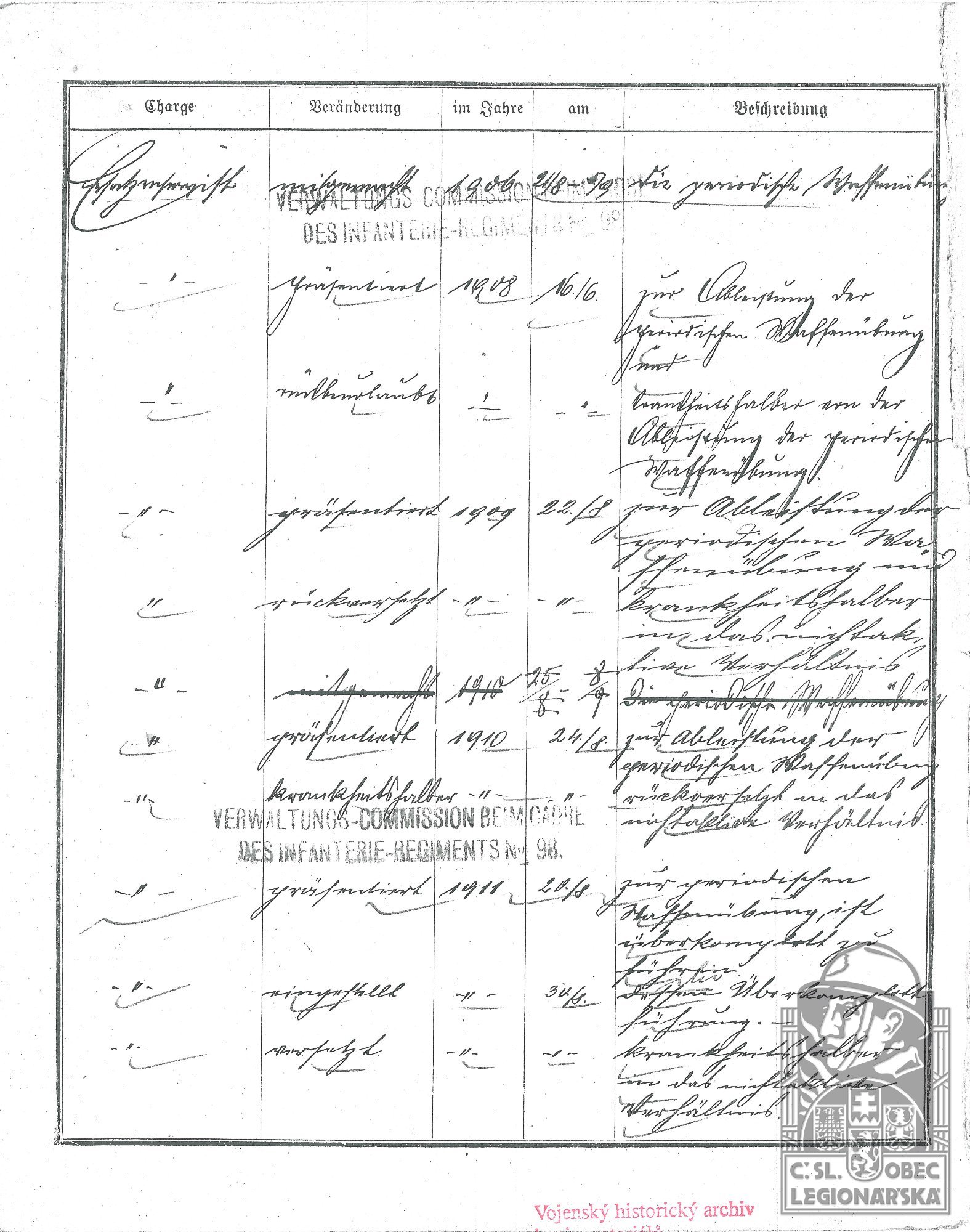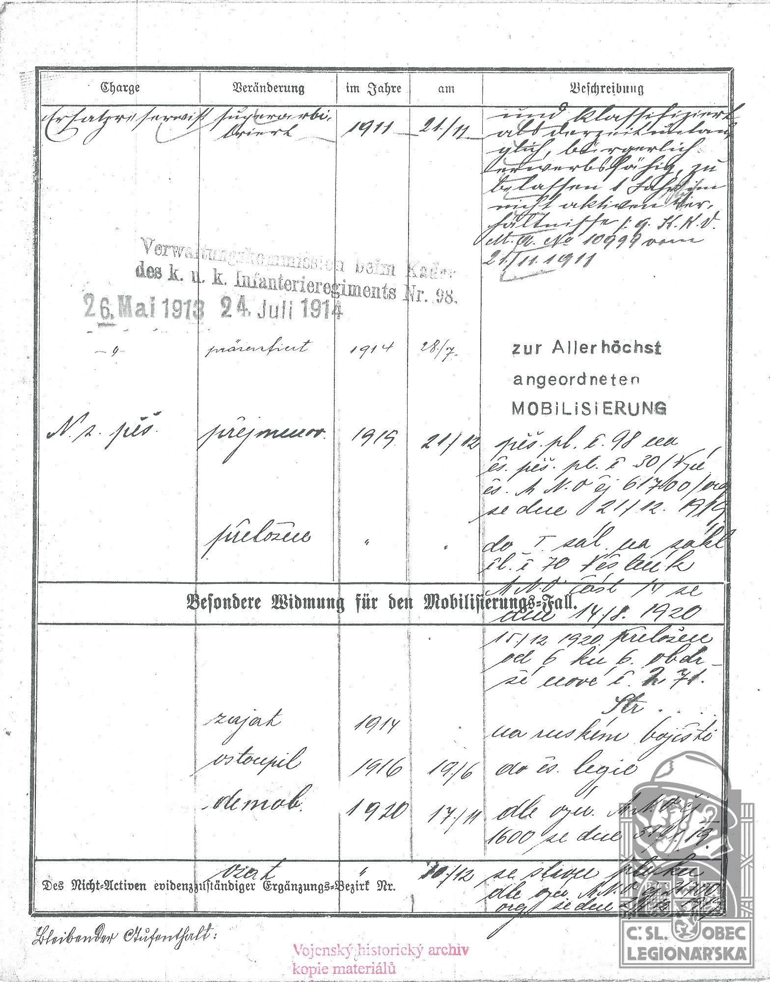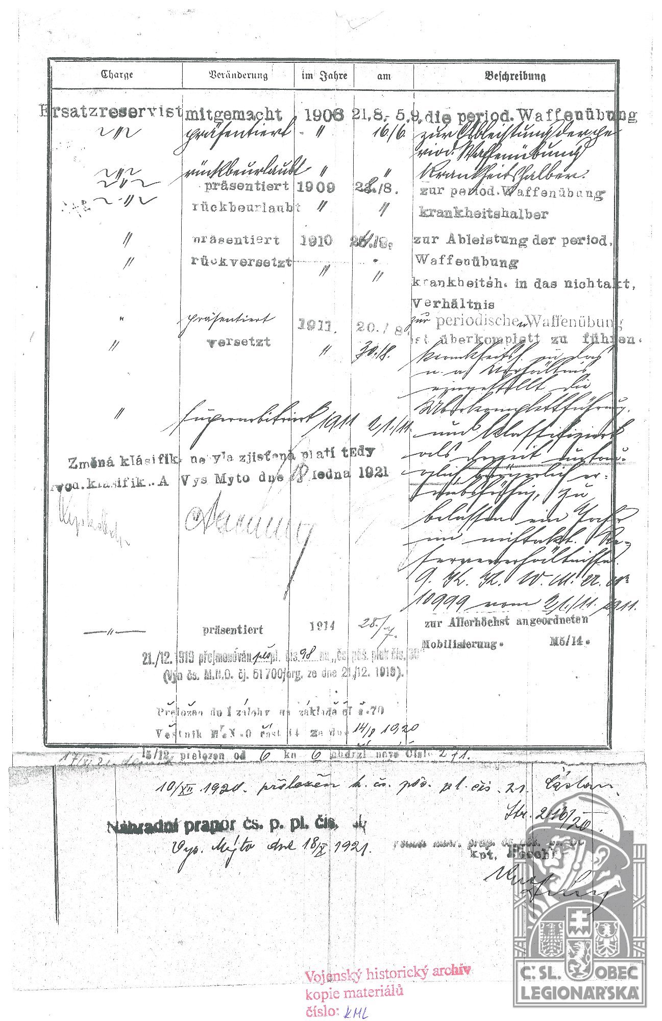 dokumenty spojené s osobou legionáře
