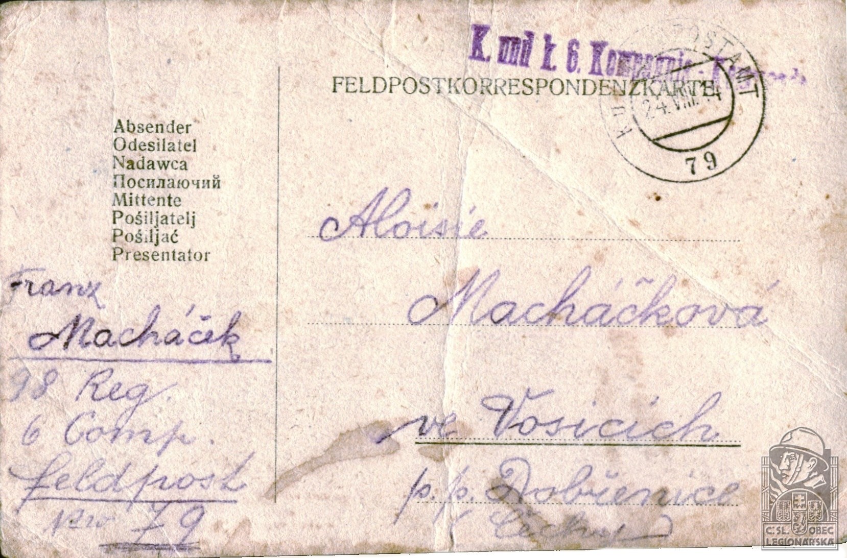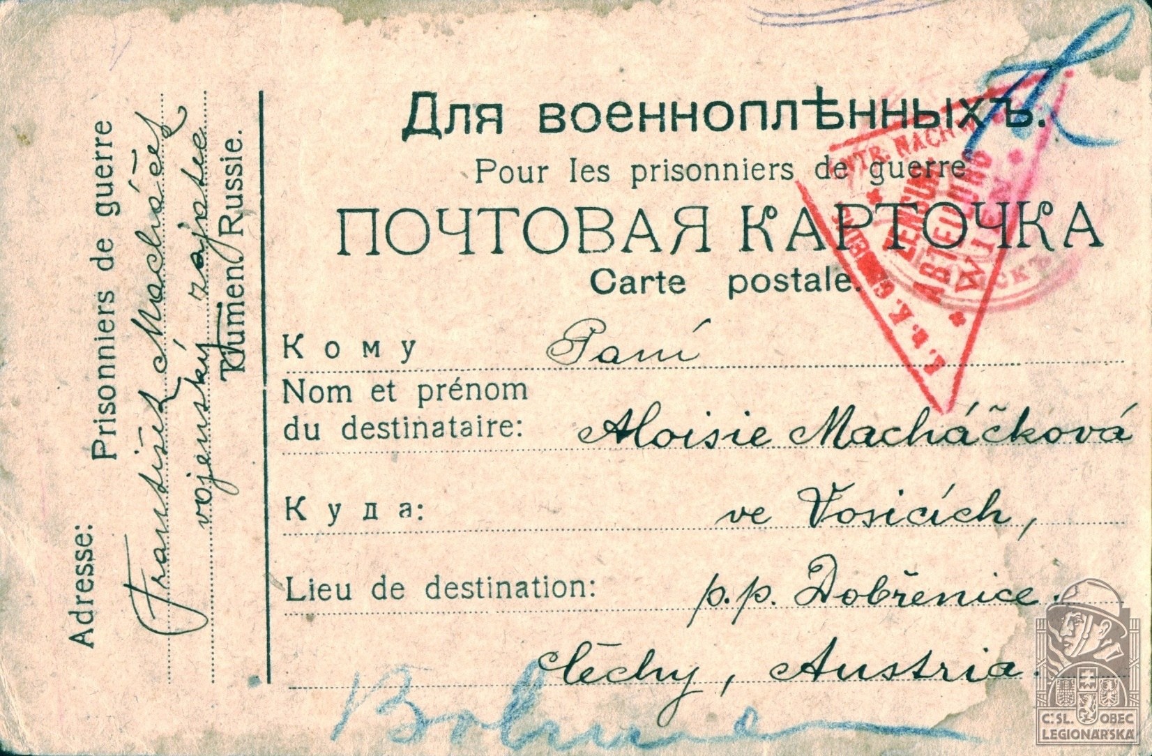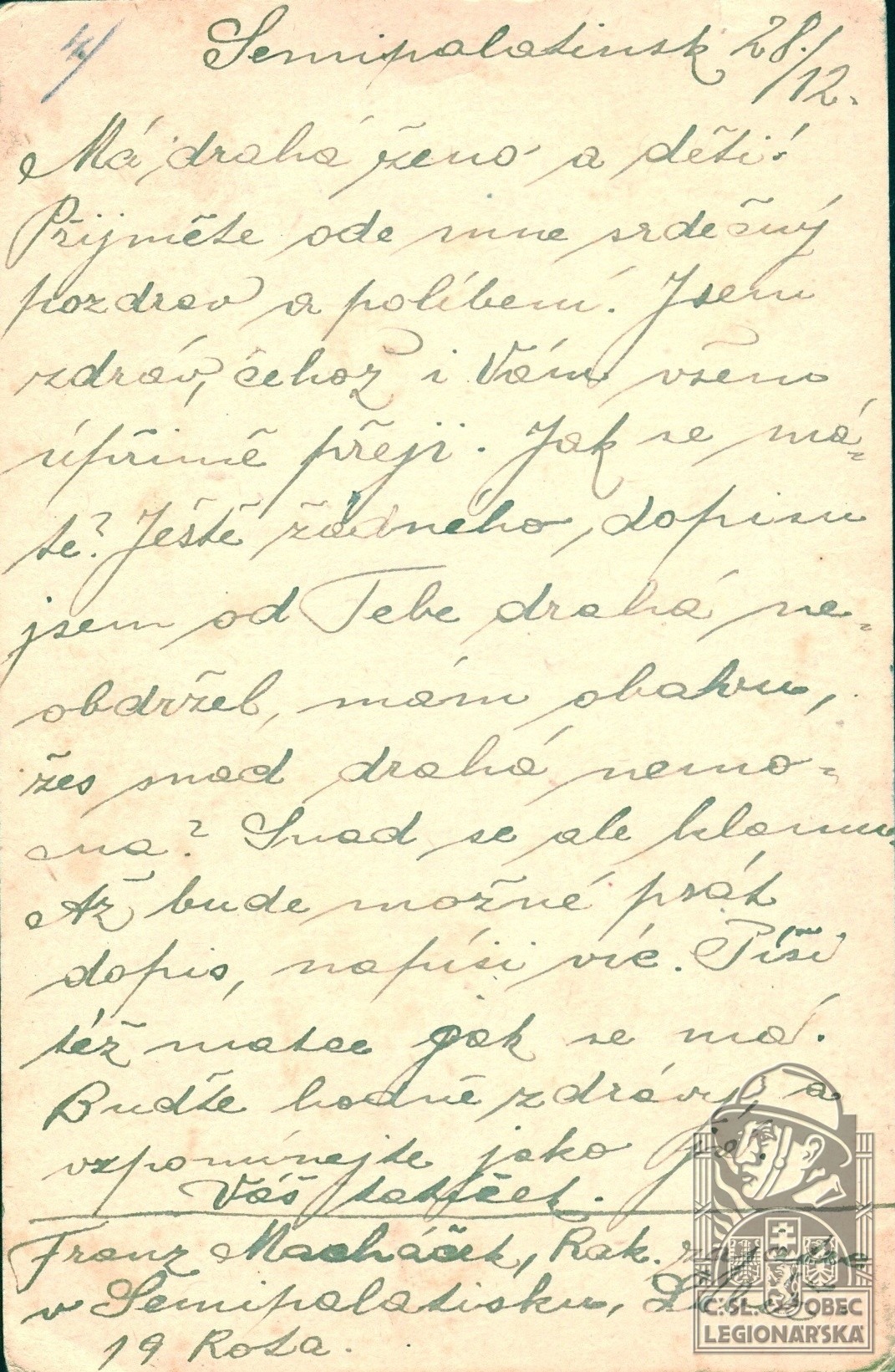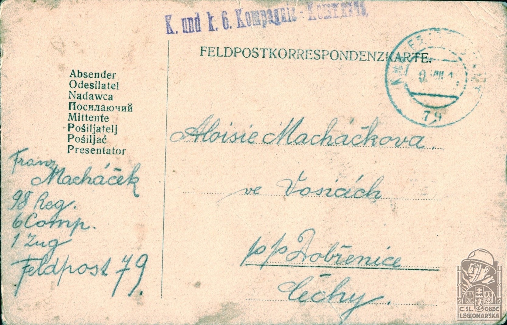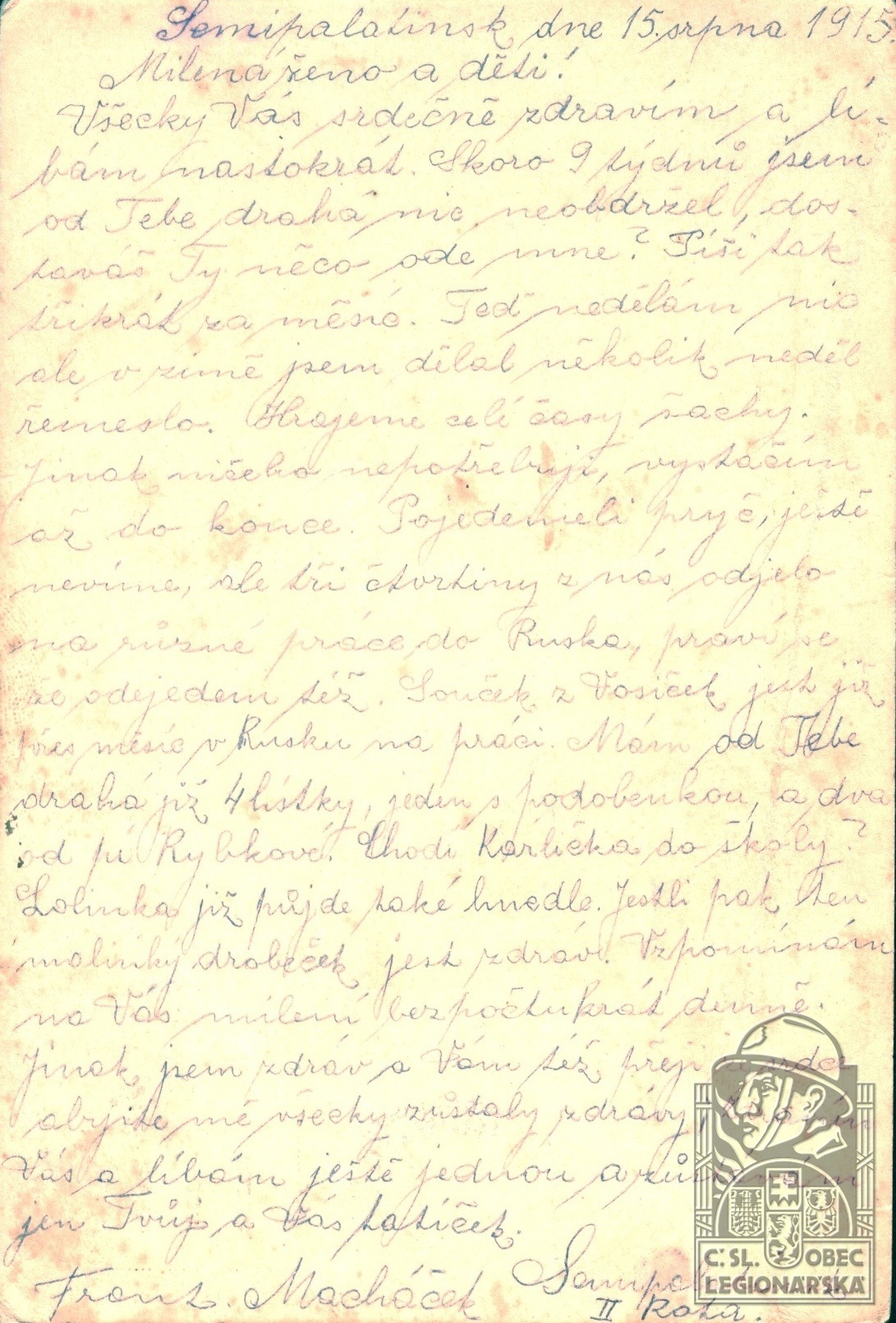 dokumenty spojené s osobou legionáře