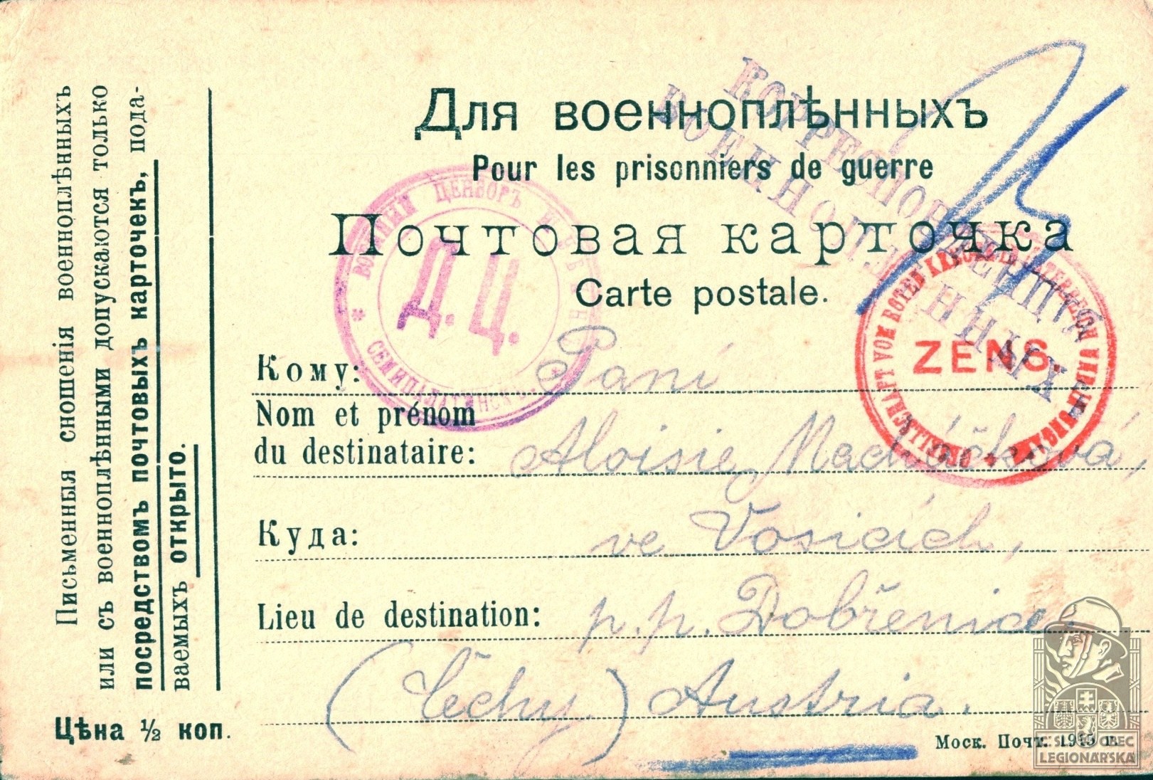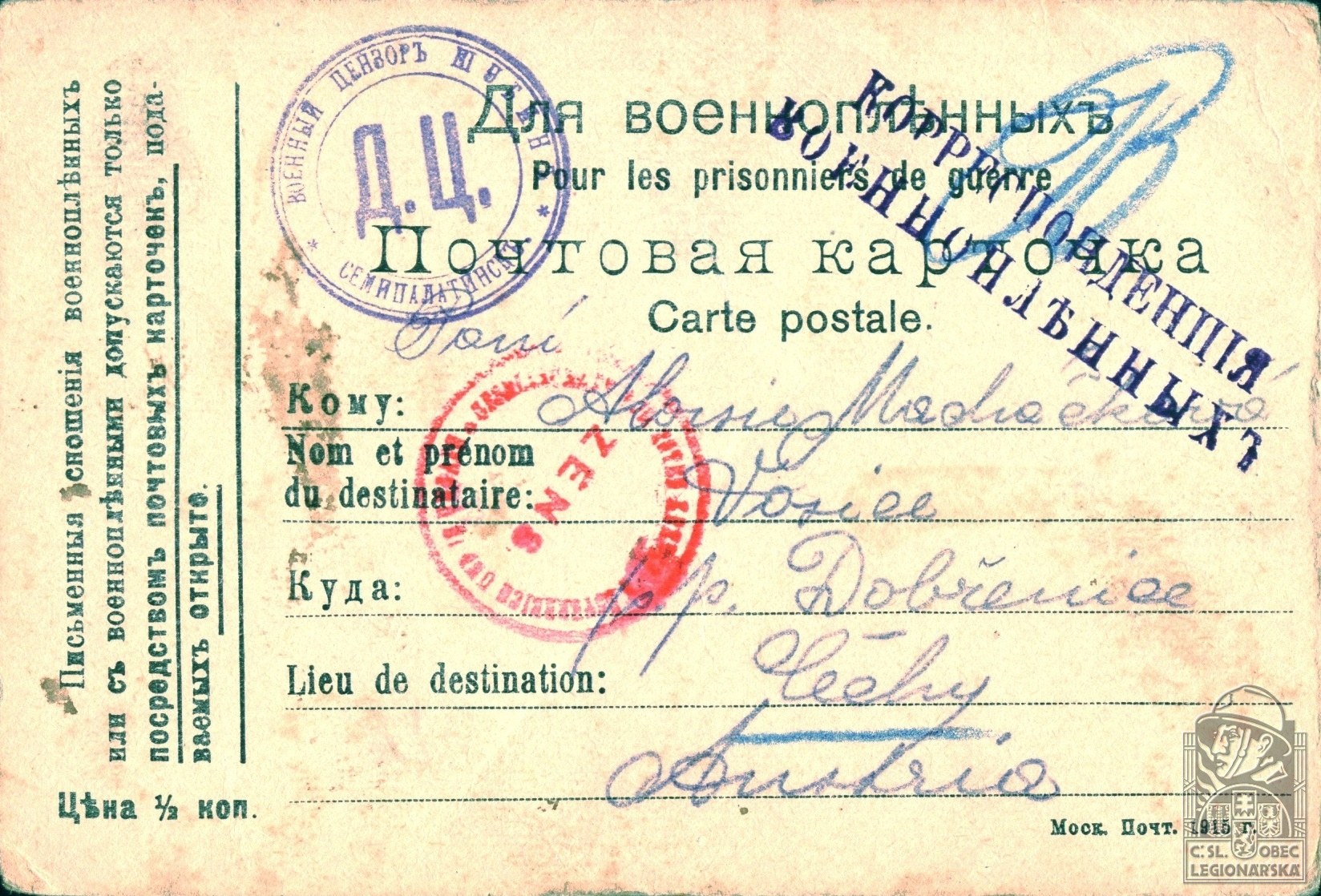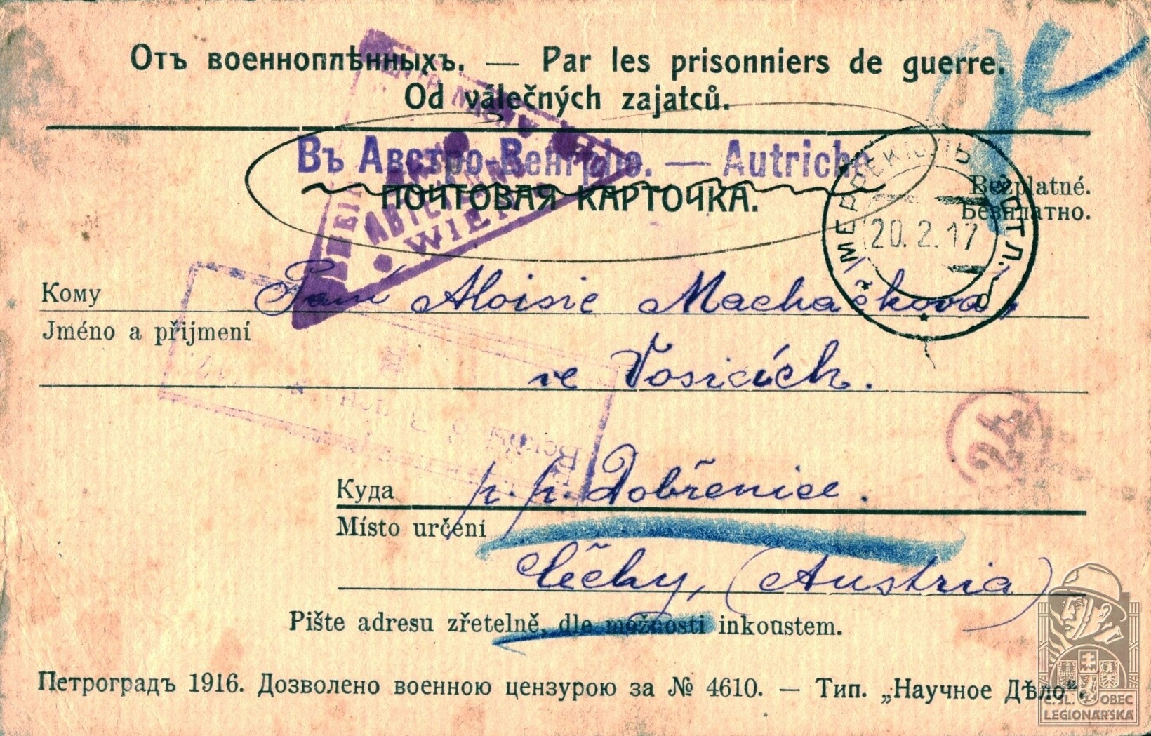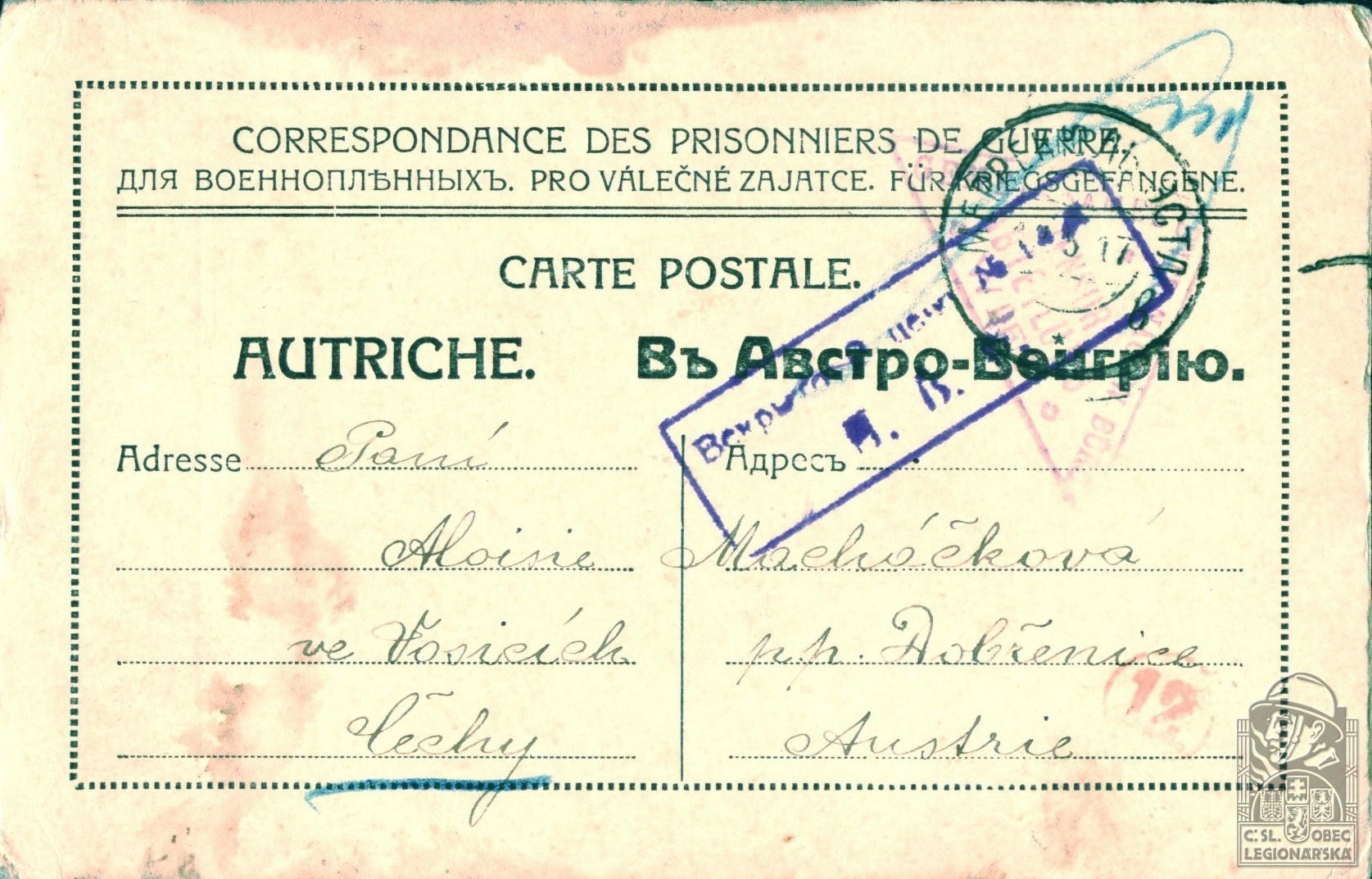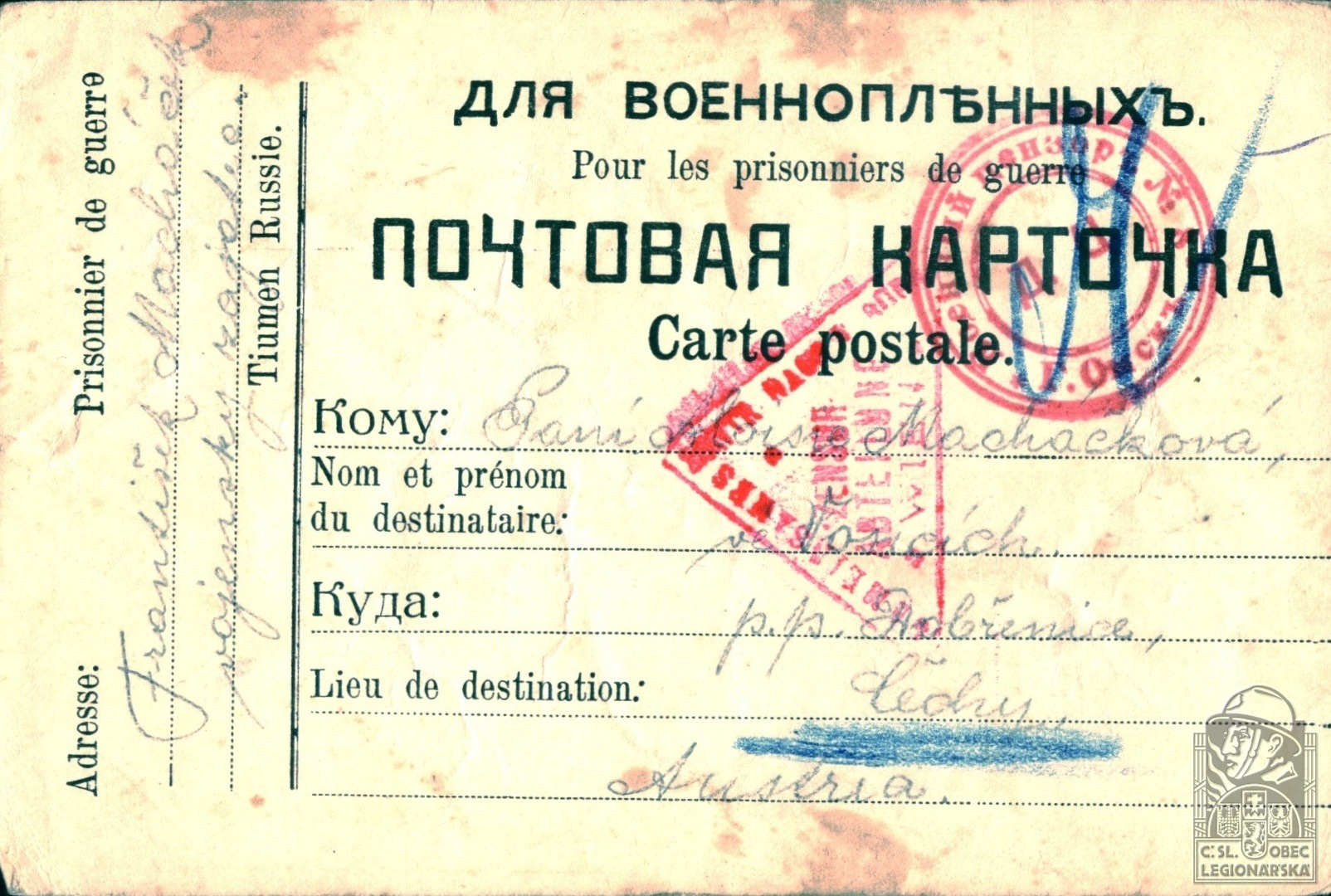 dokumenty spojené s osobou legionáře